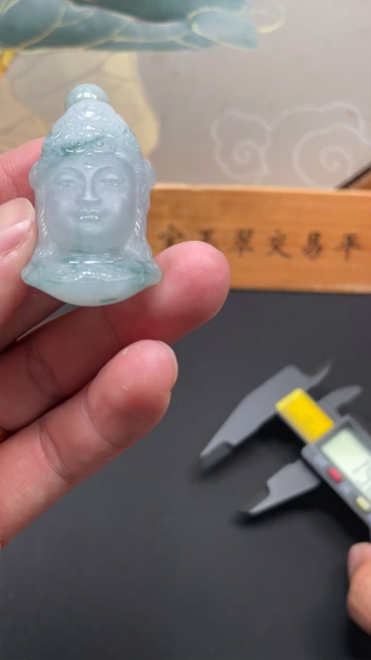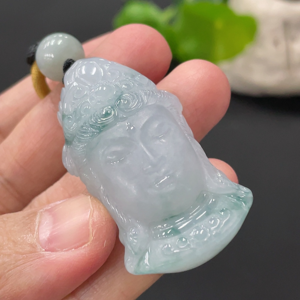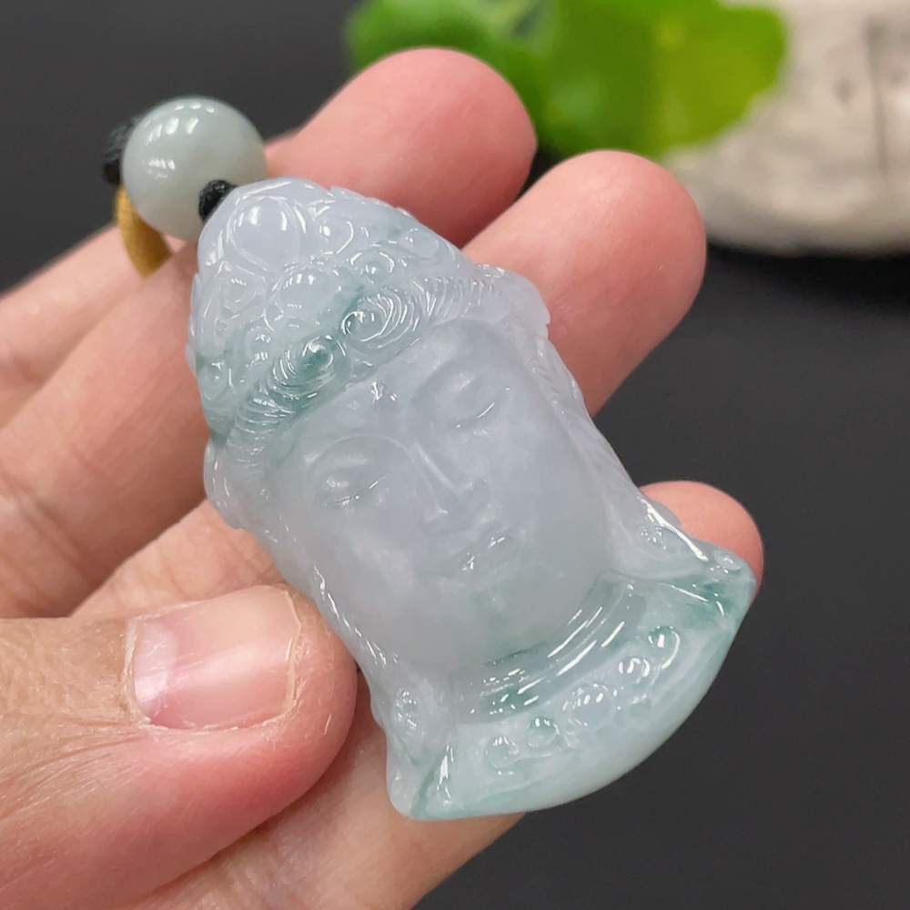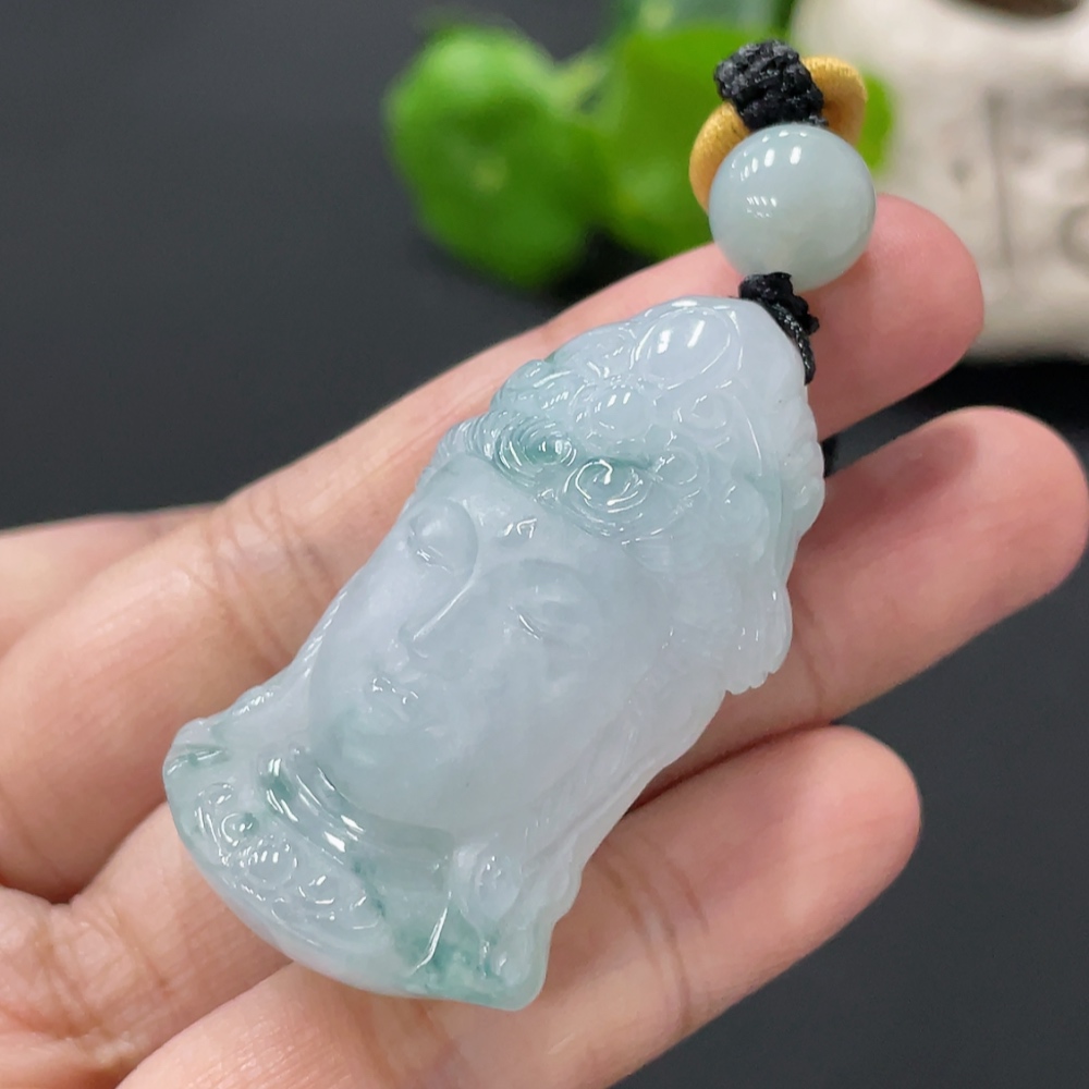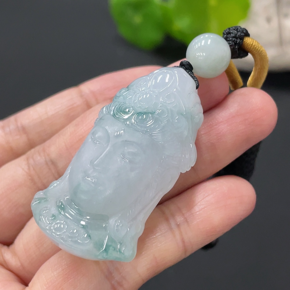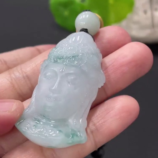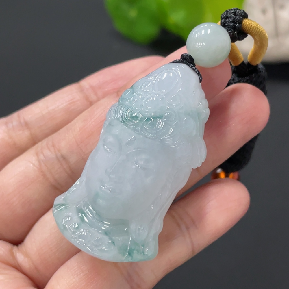 Jadeite Guanyin Pendant, Total Weight Approximately 27.65g