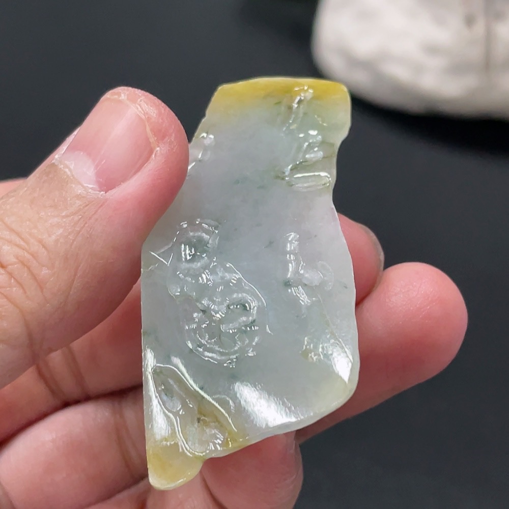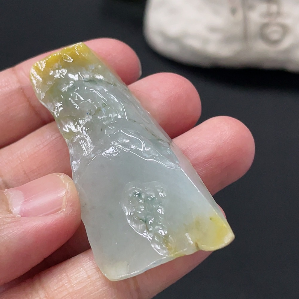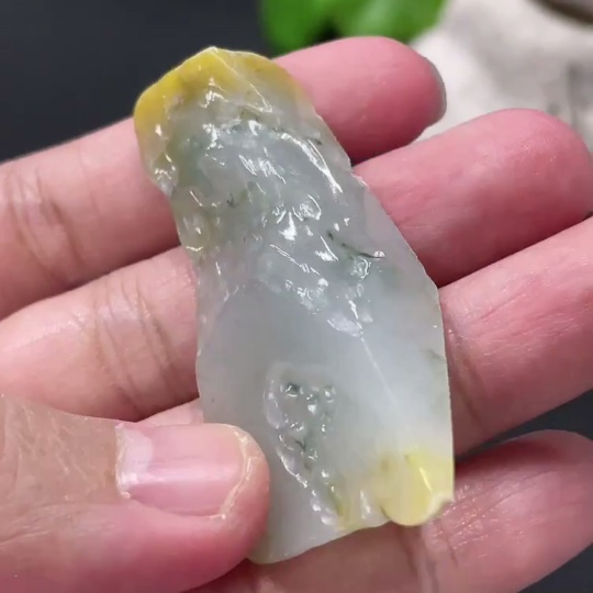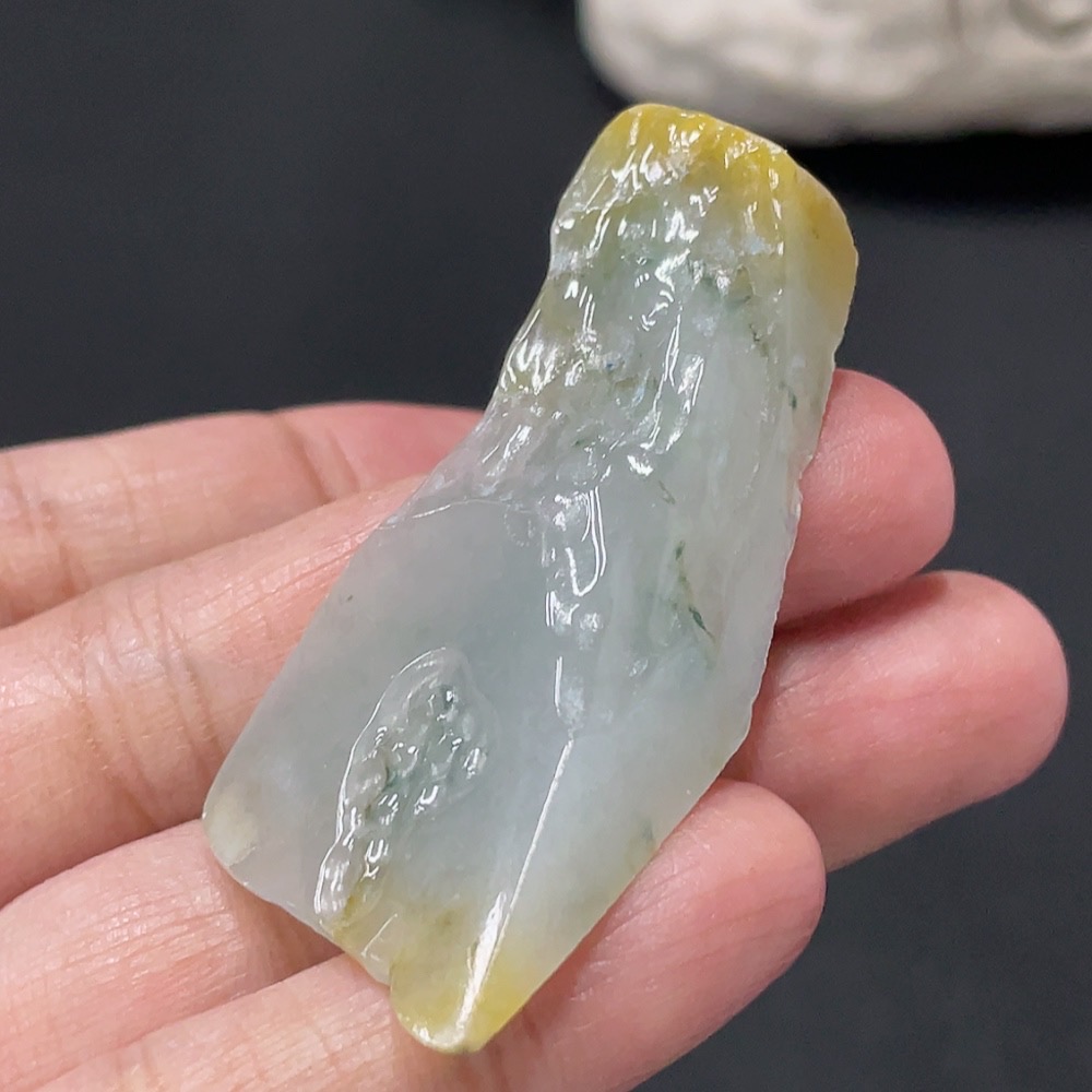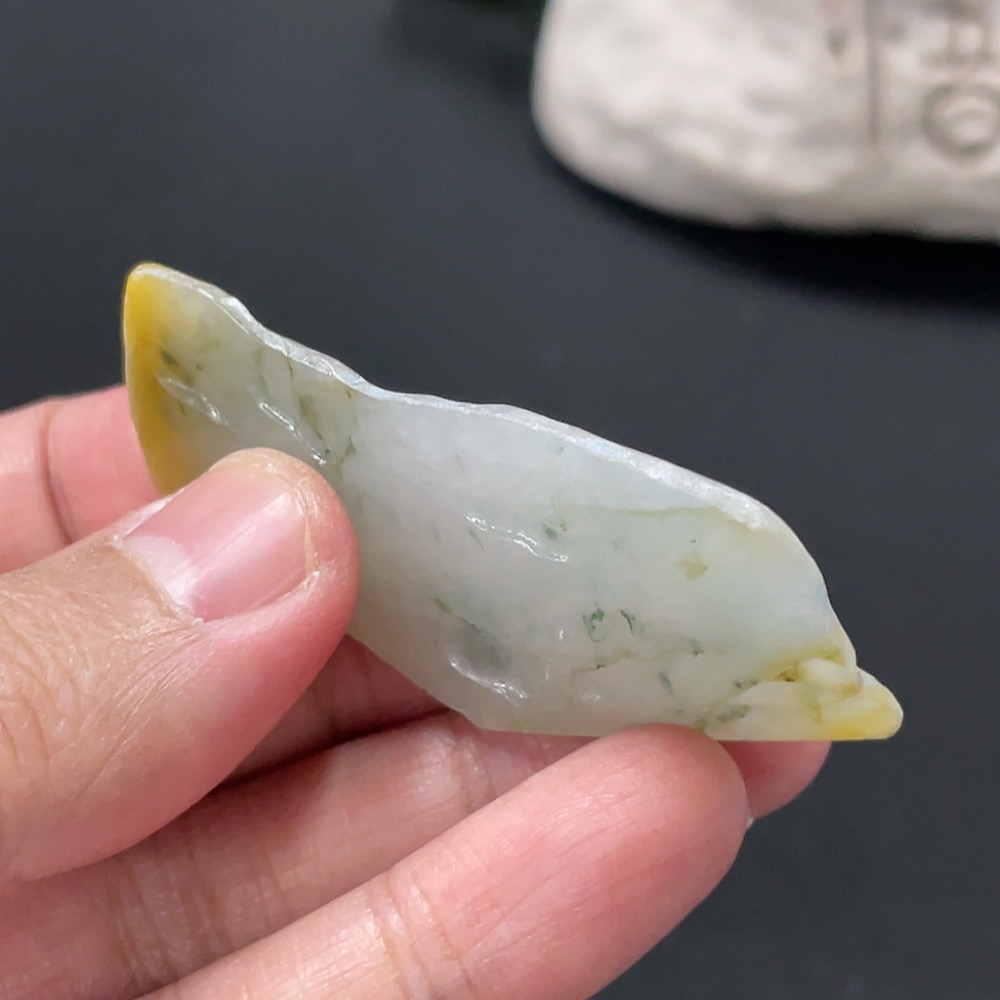 Jadeite freeform pendant, total weight approximately 14.7g, yellow color origin undetermined