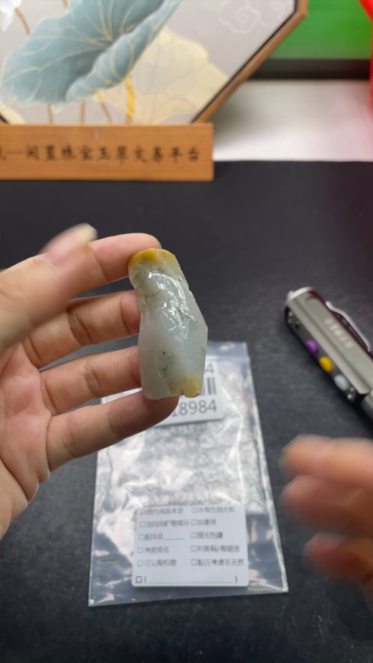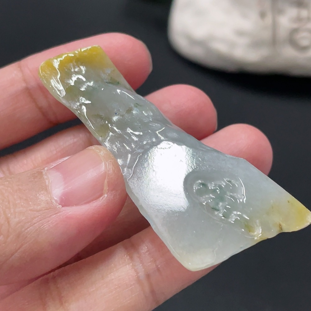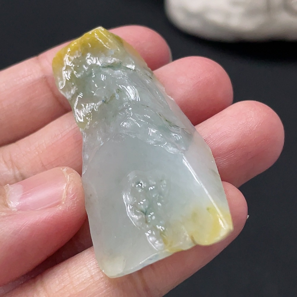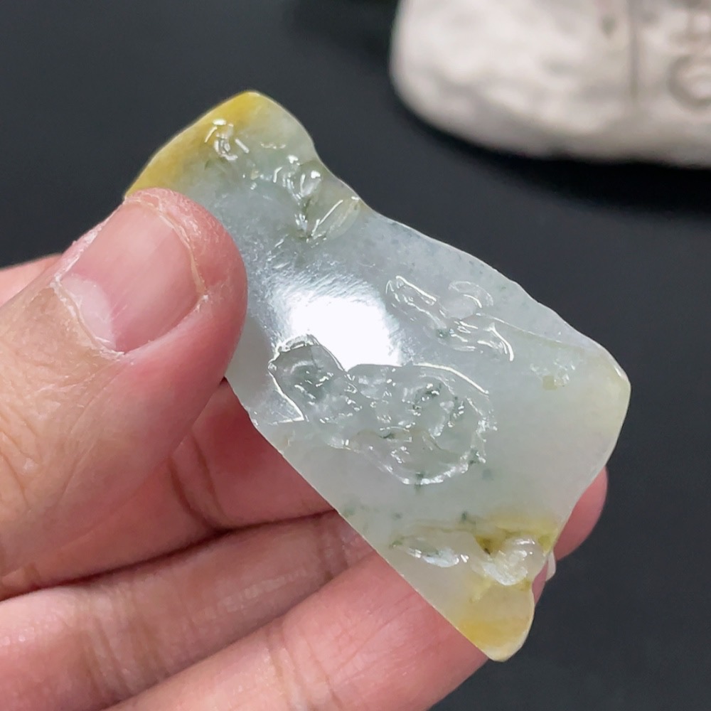 Jadeite freeform pendant, total weight approximately 14.7g, yellow color origin undetermined