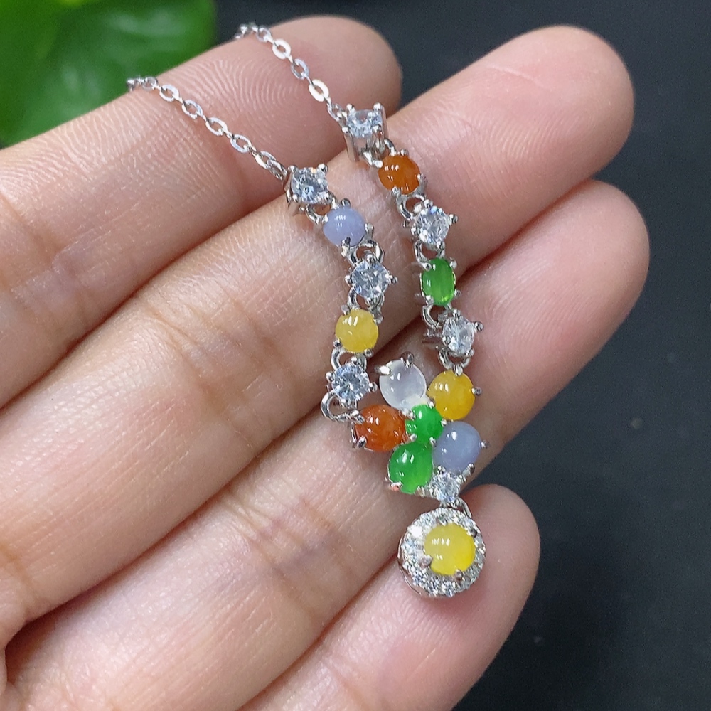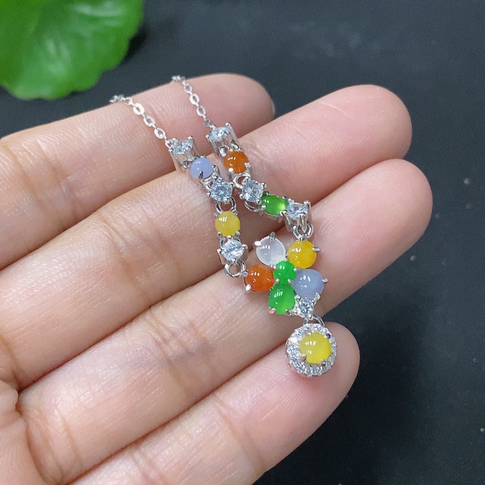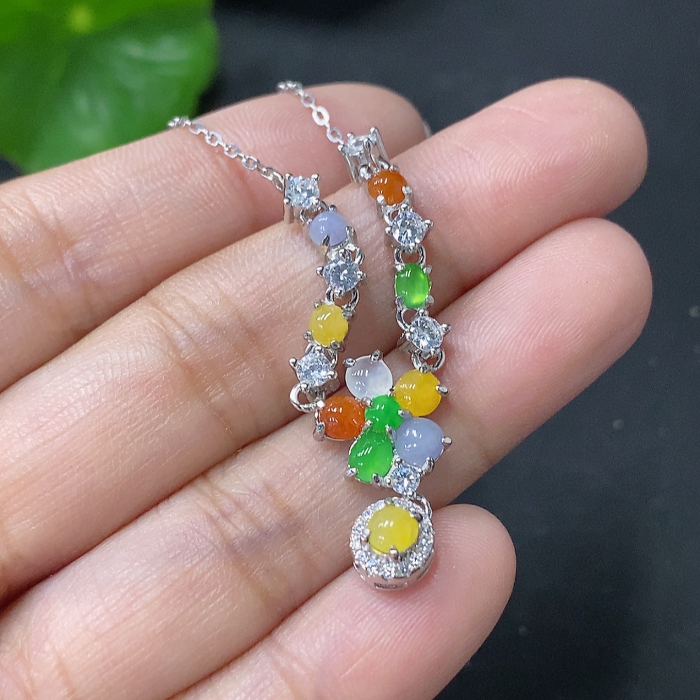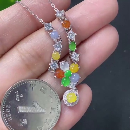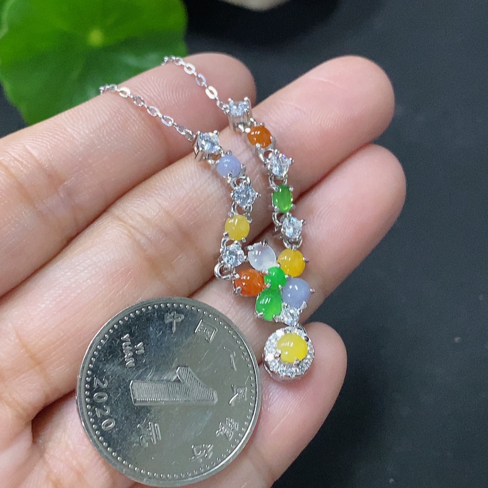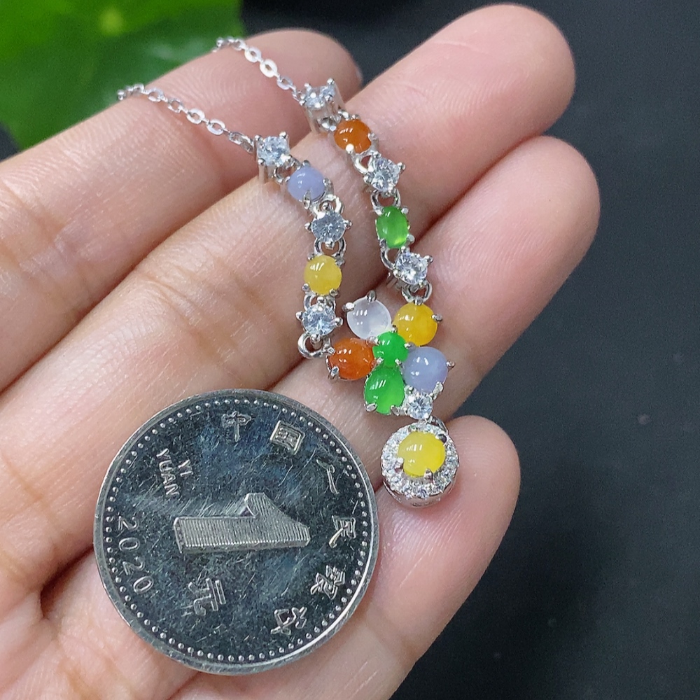 Jadeite Inlaid Pendant Non-Gold Total Weight Approx. 4.55g Including Chain Color Origin Undetermined
