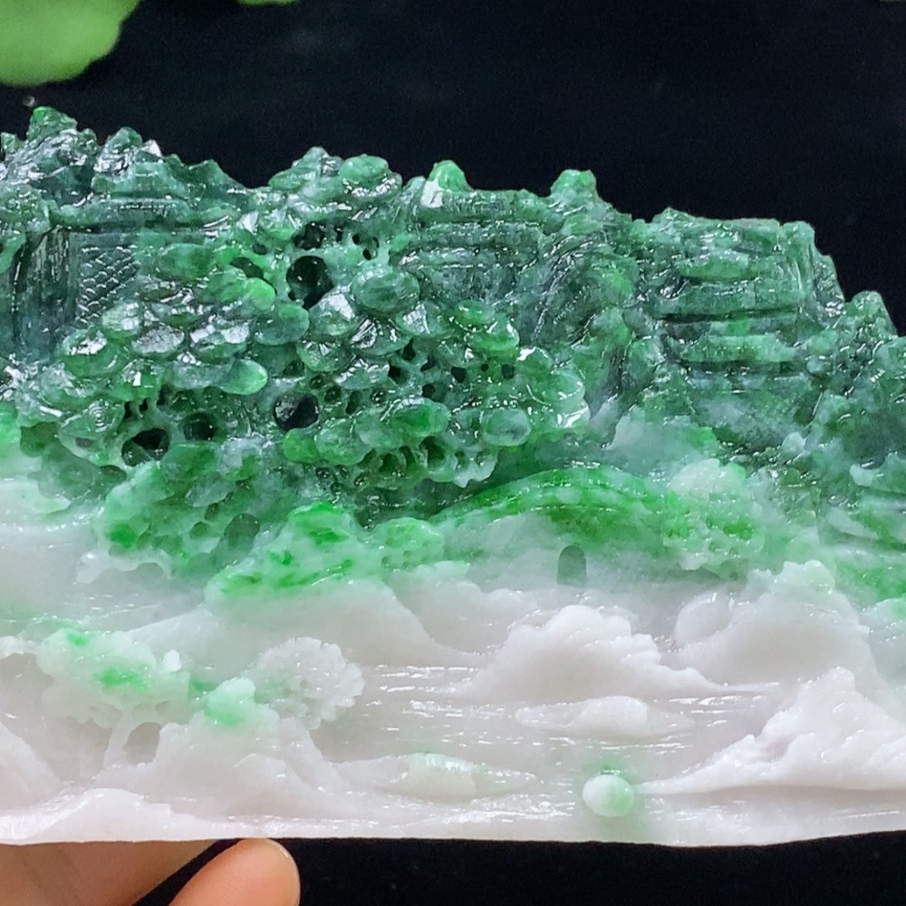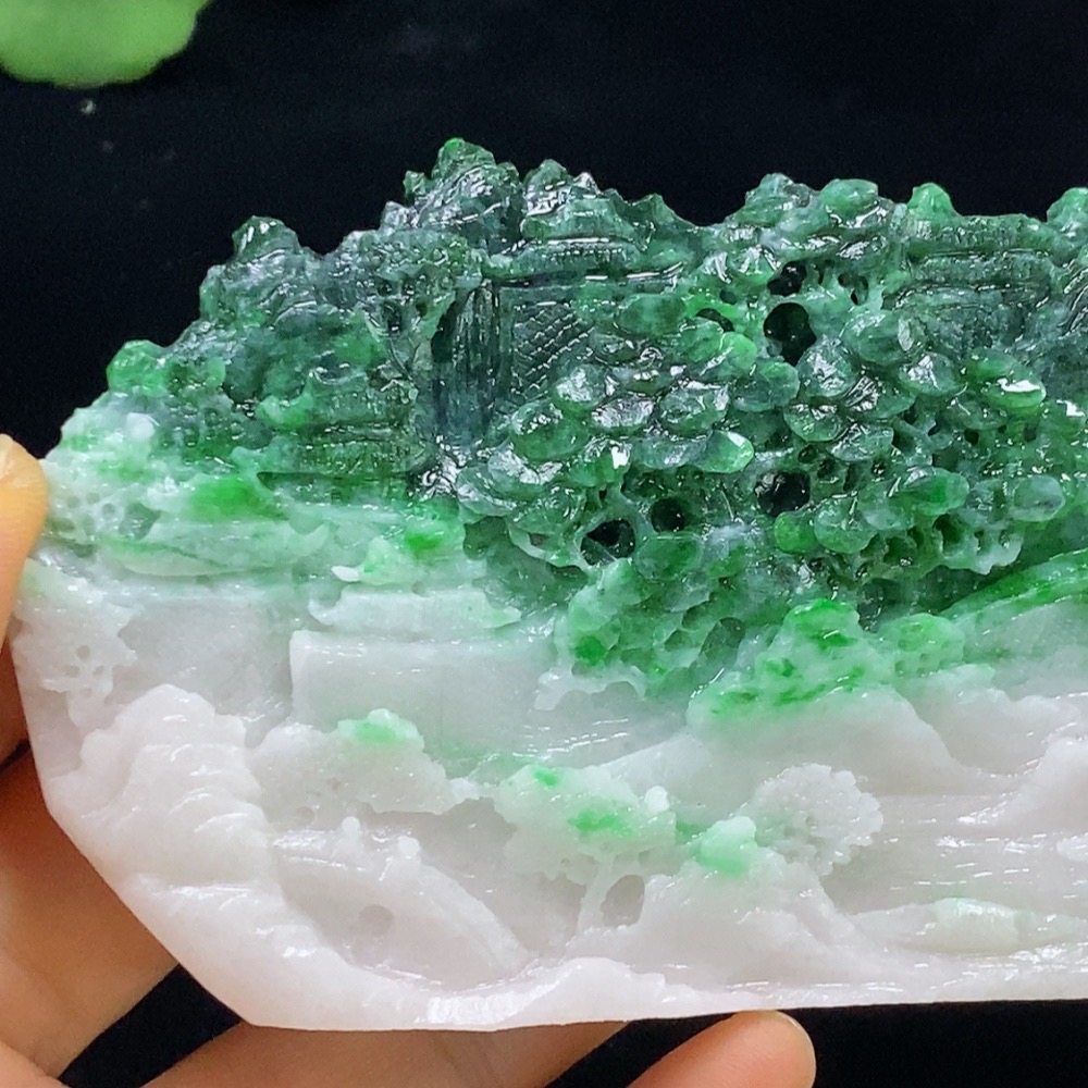 Jadeite Rough Mountain and Water Display Piece, Total Weight Approximately 161.48g, Containing Other Mineral Components