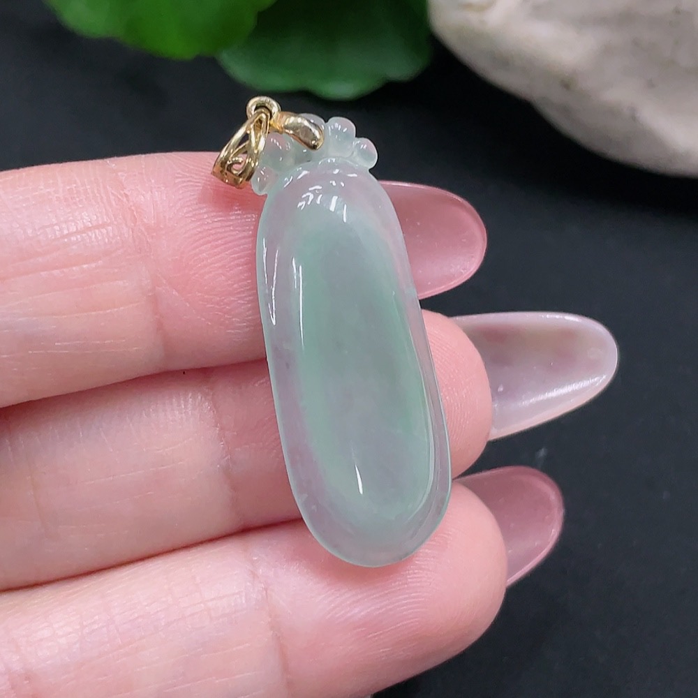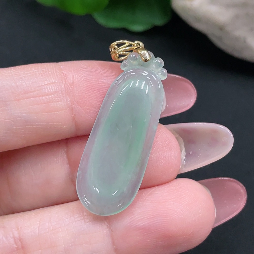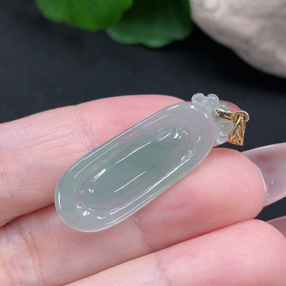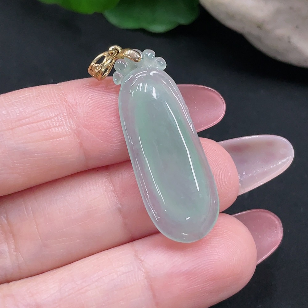 Jadeite Auspicious Gourd Pendant, 18K Gold, Total Weight Approx. 2.9g