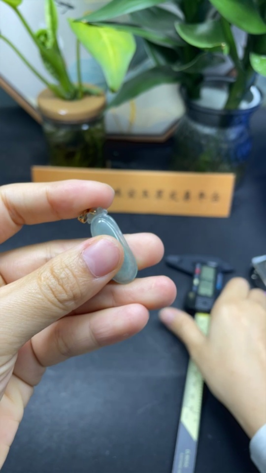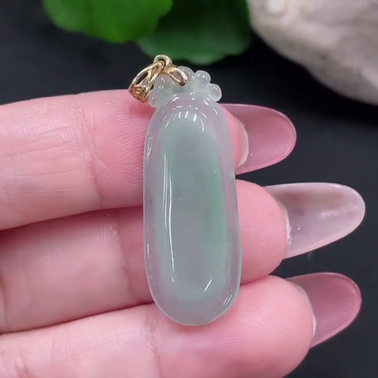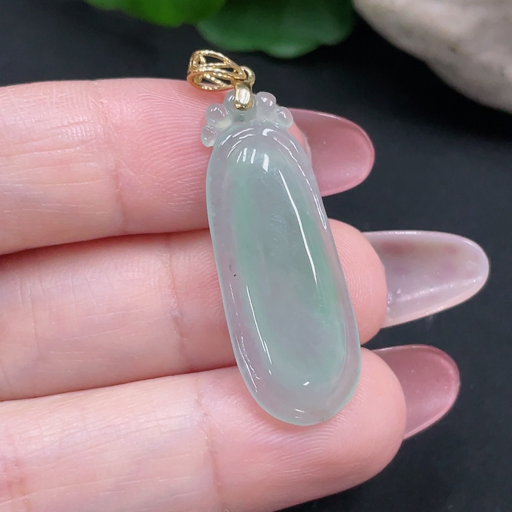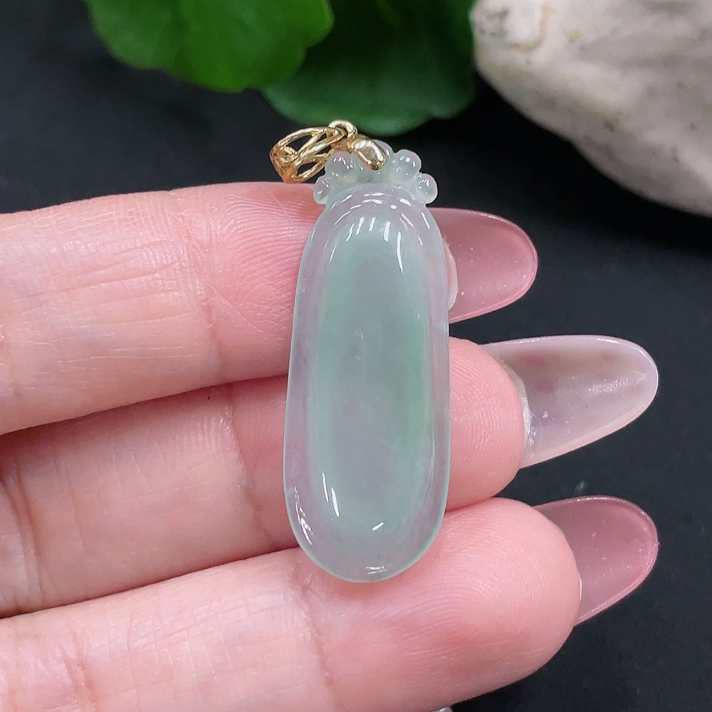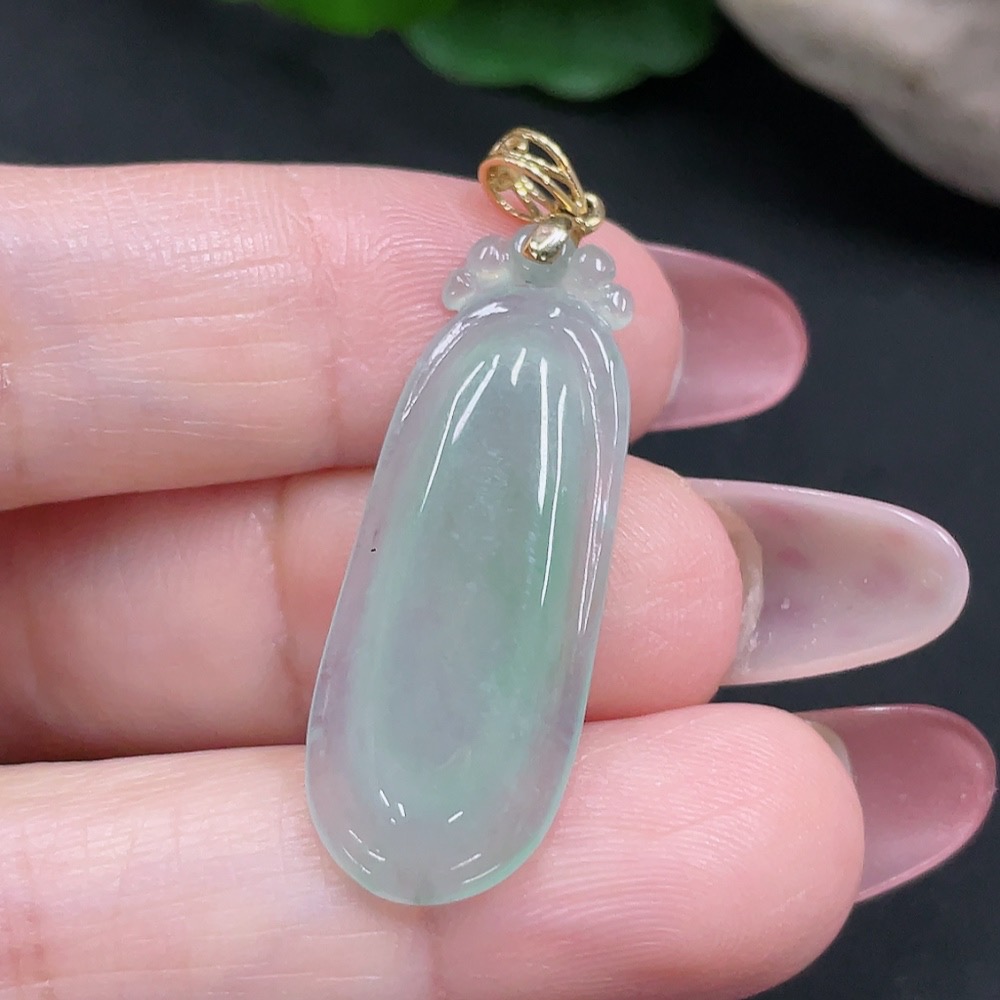 Jadeite Auspicious Gourd Pendant, 18K Gold, Total Weight Approx. 2.9g