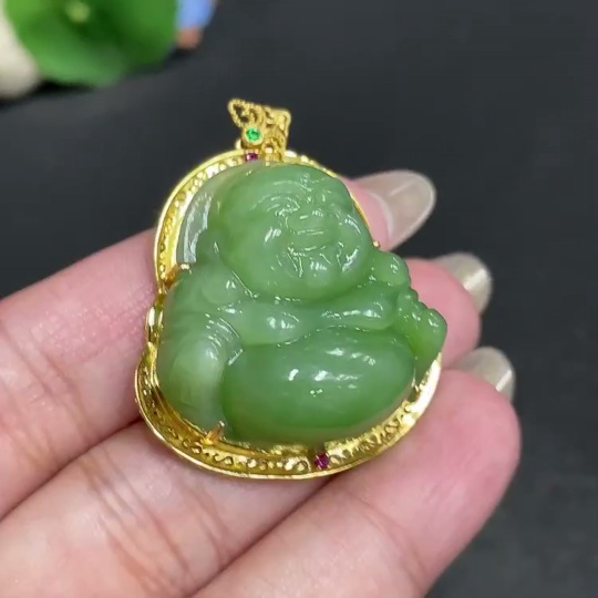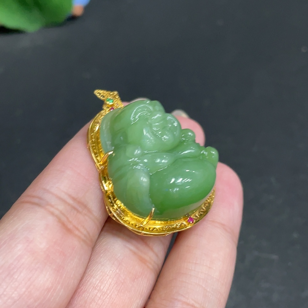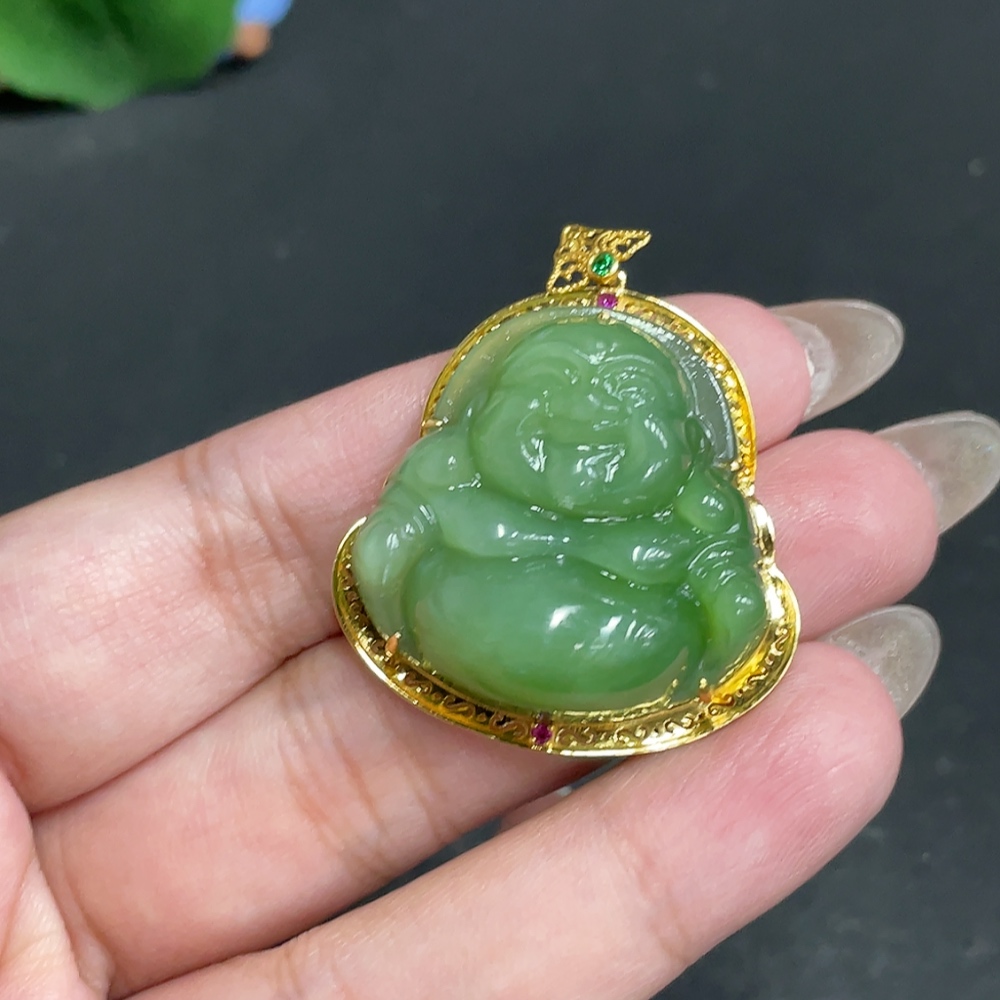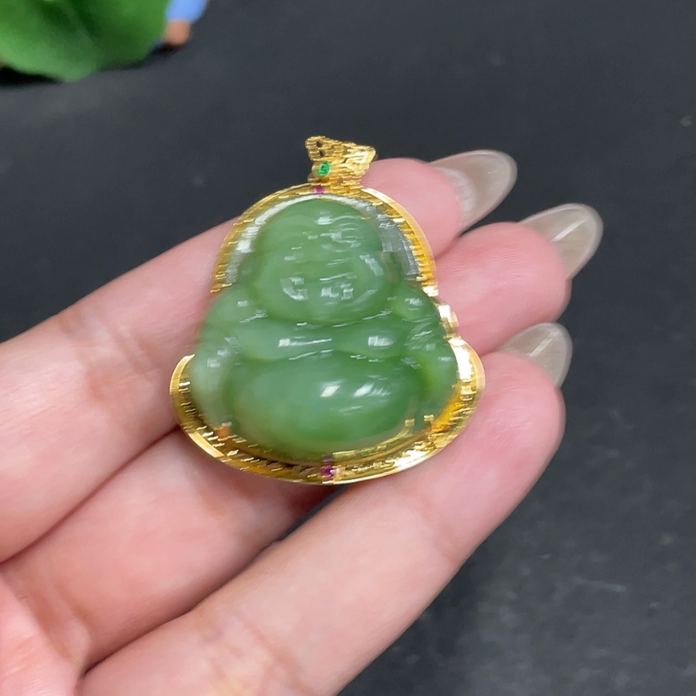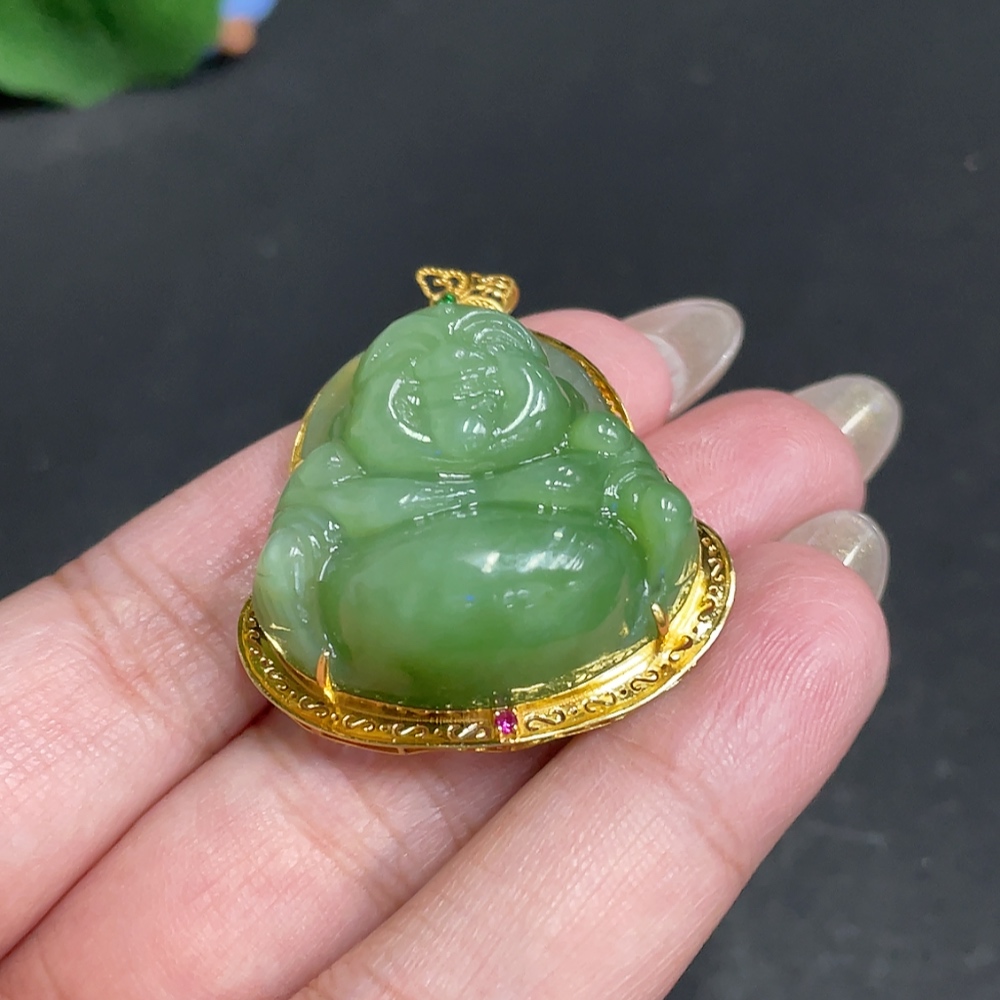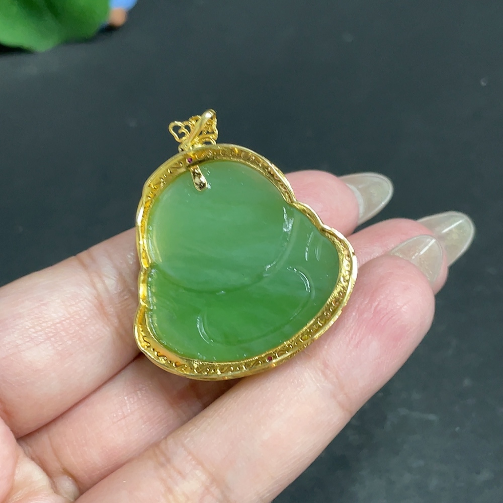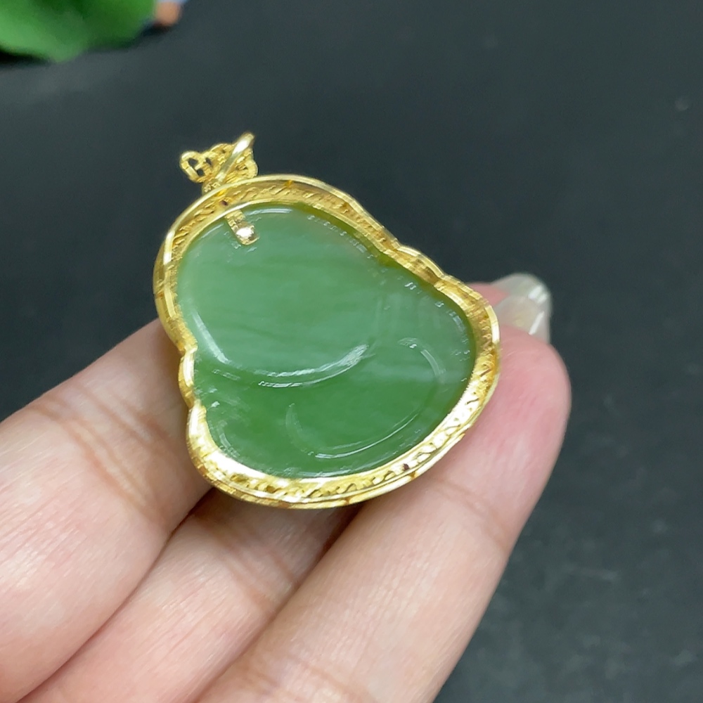 Hetian Jade Inlaid Pendant, Buddha, Total Weight Approx. 16.1g, 18k