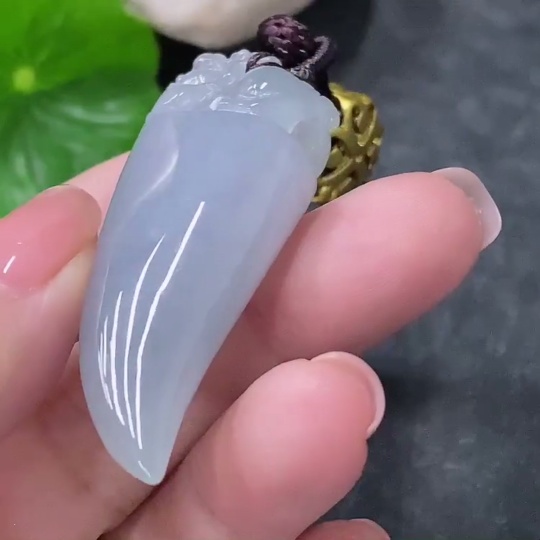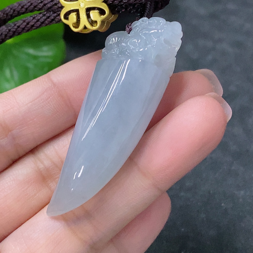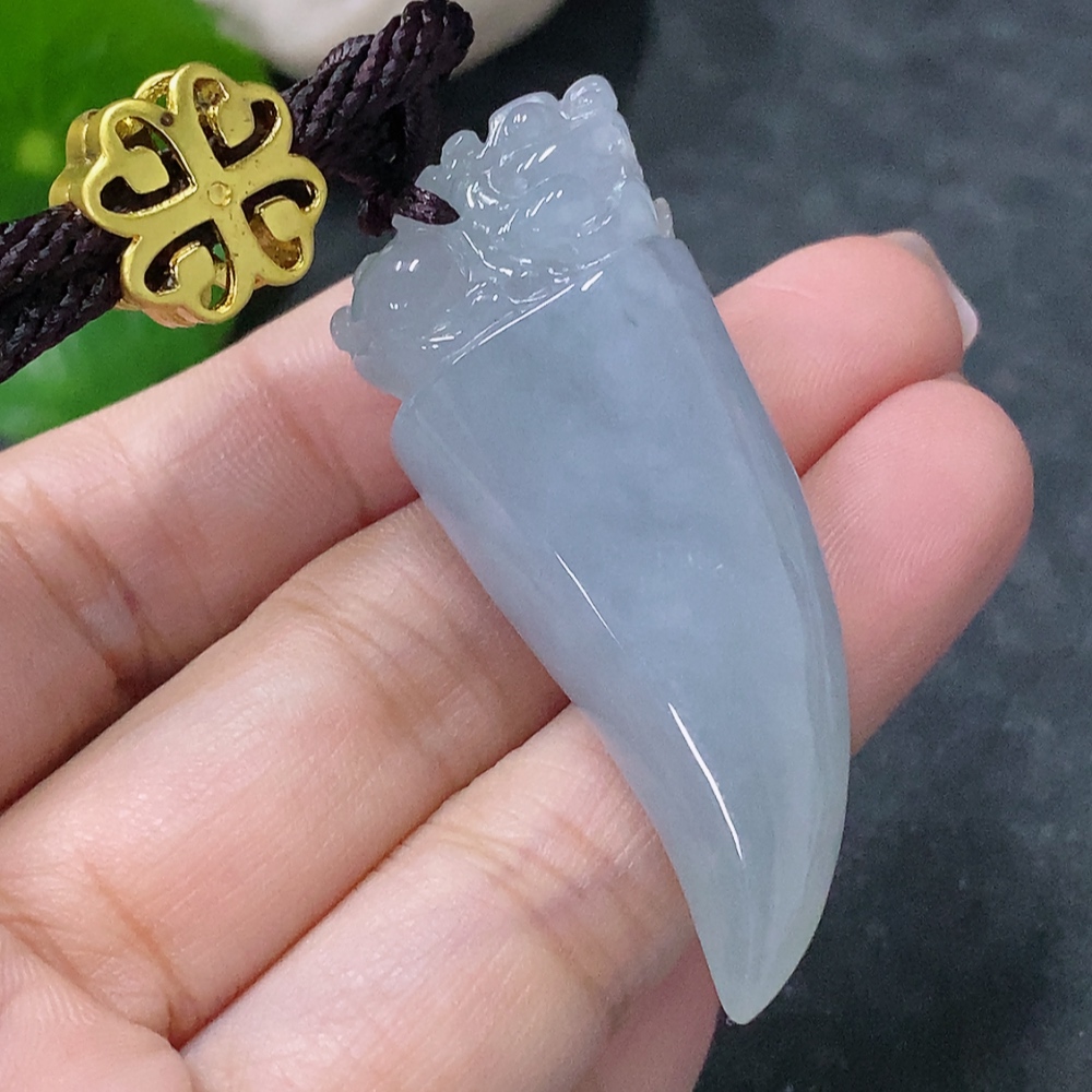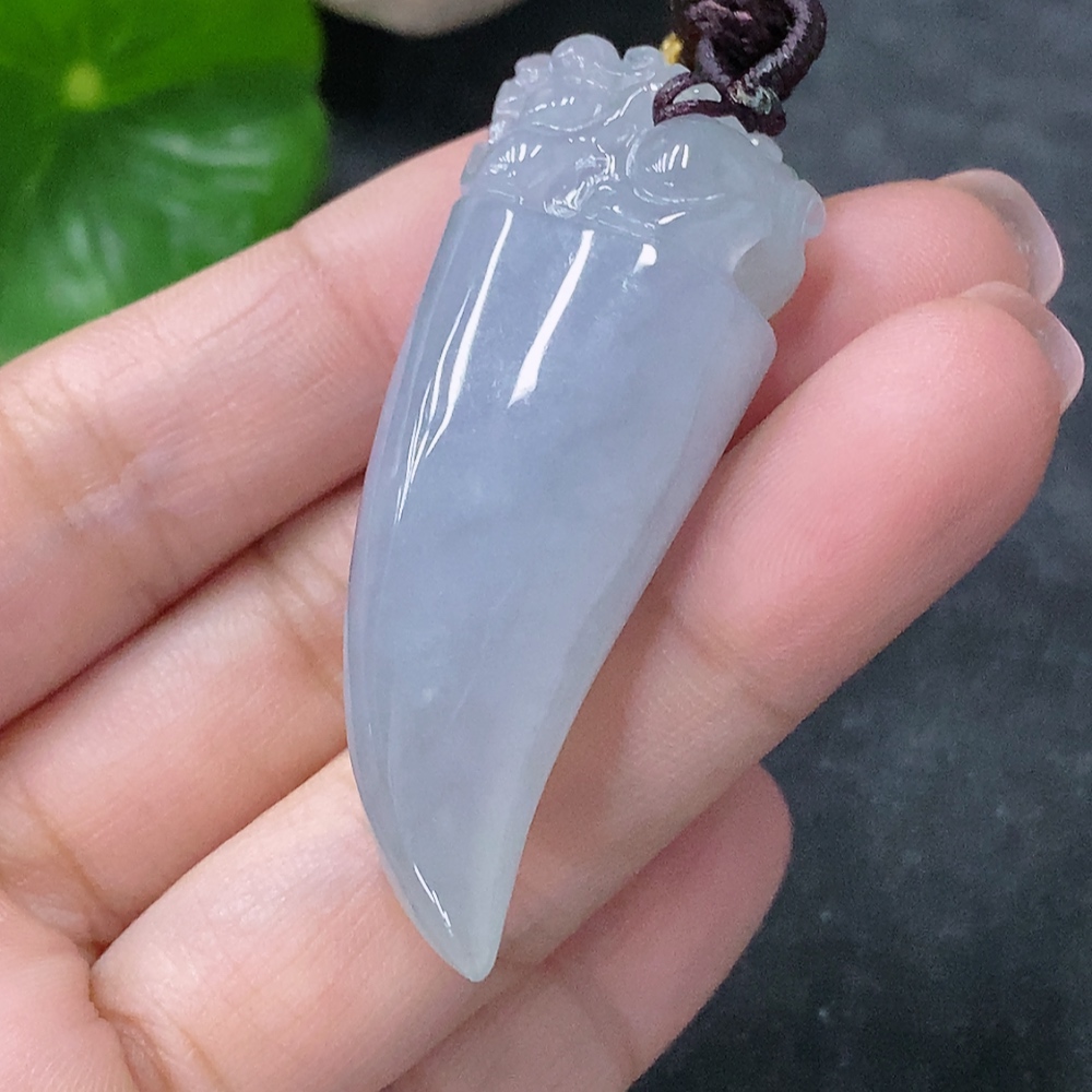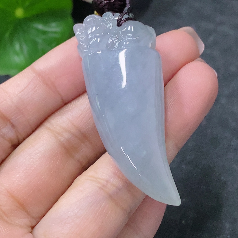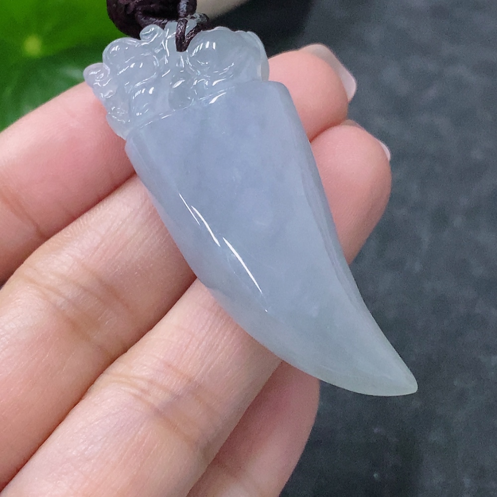 Jadeite Pendant Dragon Tooth Total Weight Including Rope 27.43g