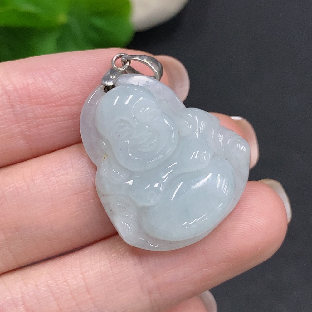 Jadeite Buddha Pendant Non-Gold Inlaid Total Weight Approx. 7g