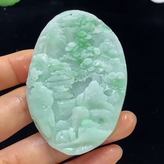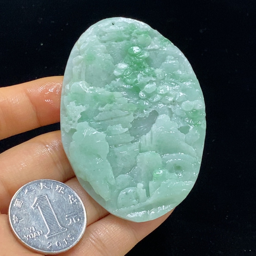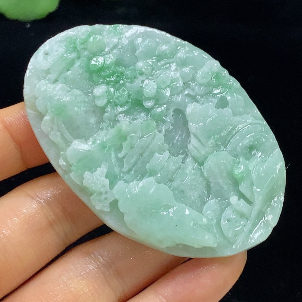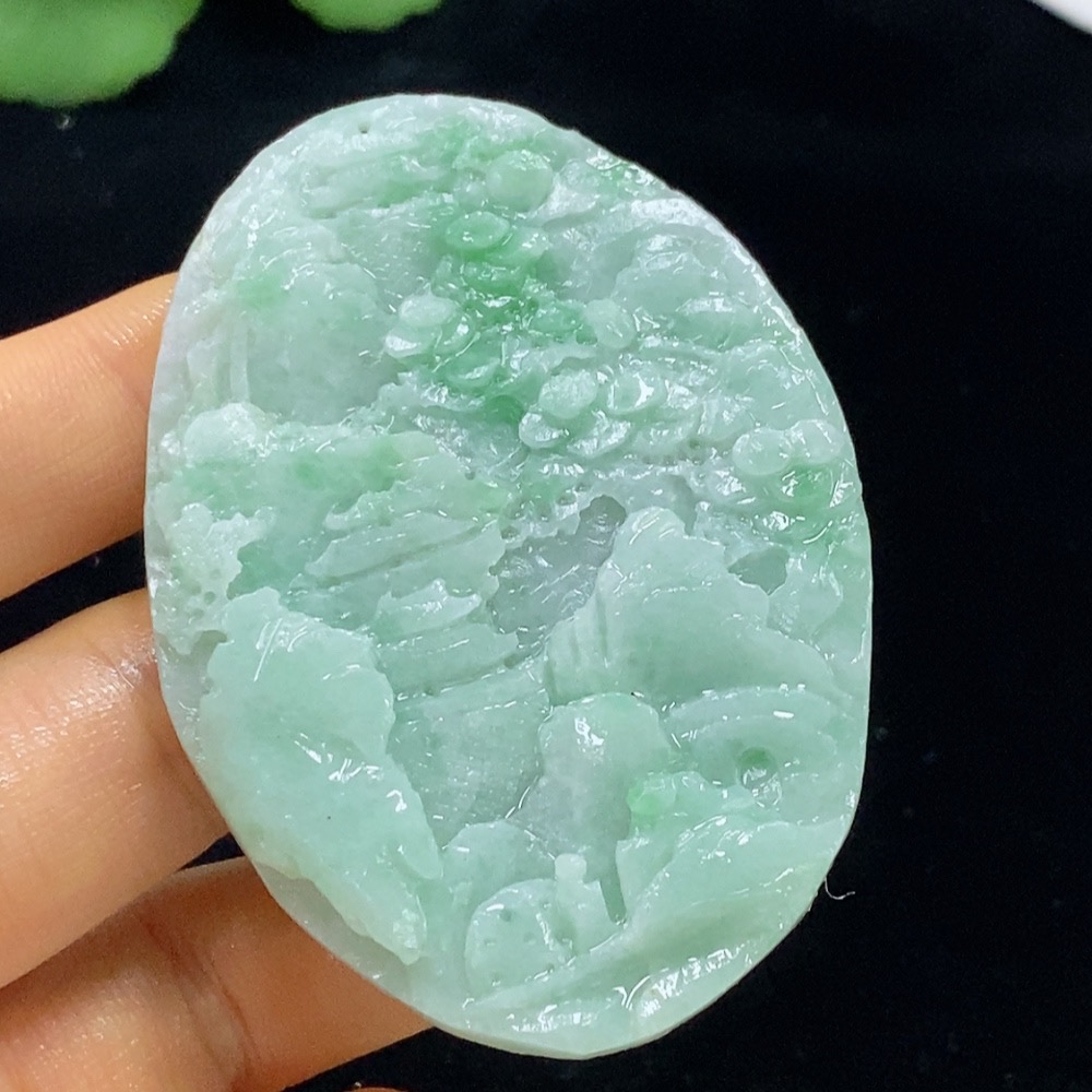 Jadeite Unpolished Landscape Pendant, Total Weight Approximately 33.71g