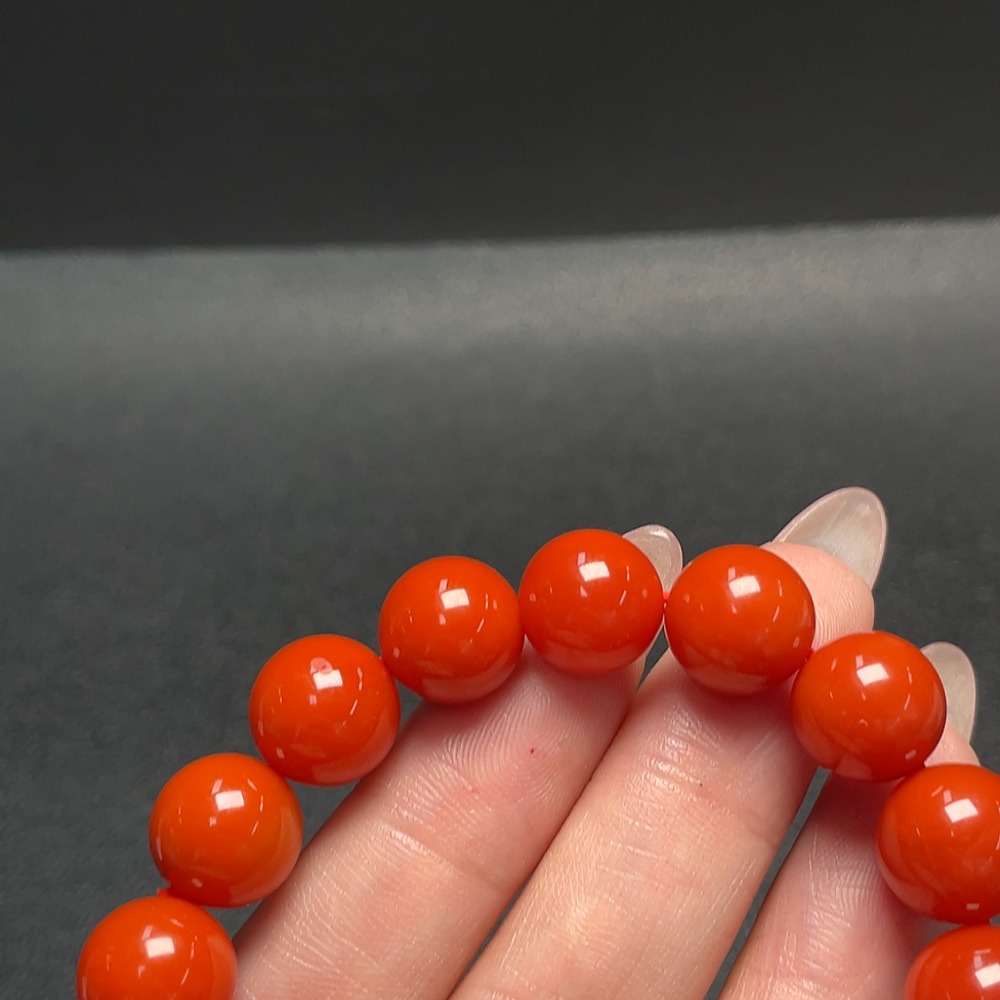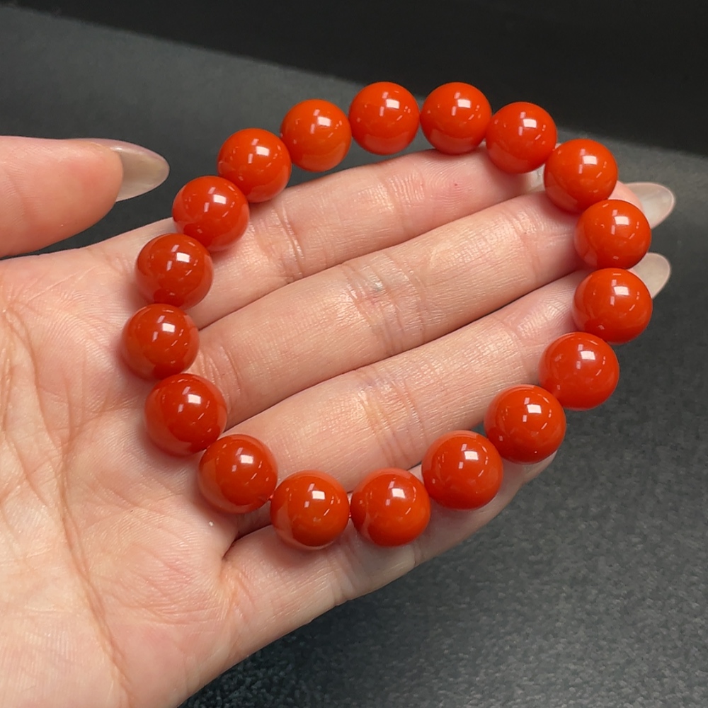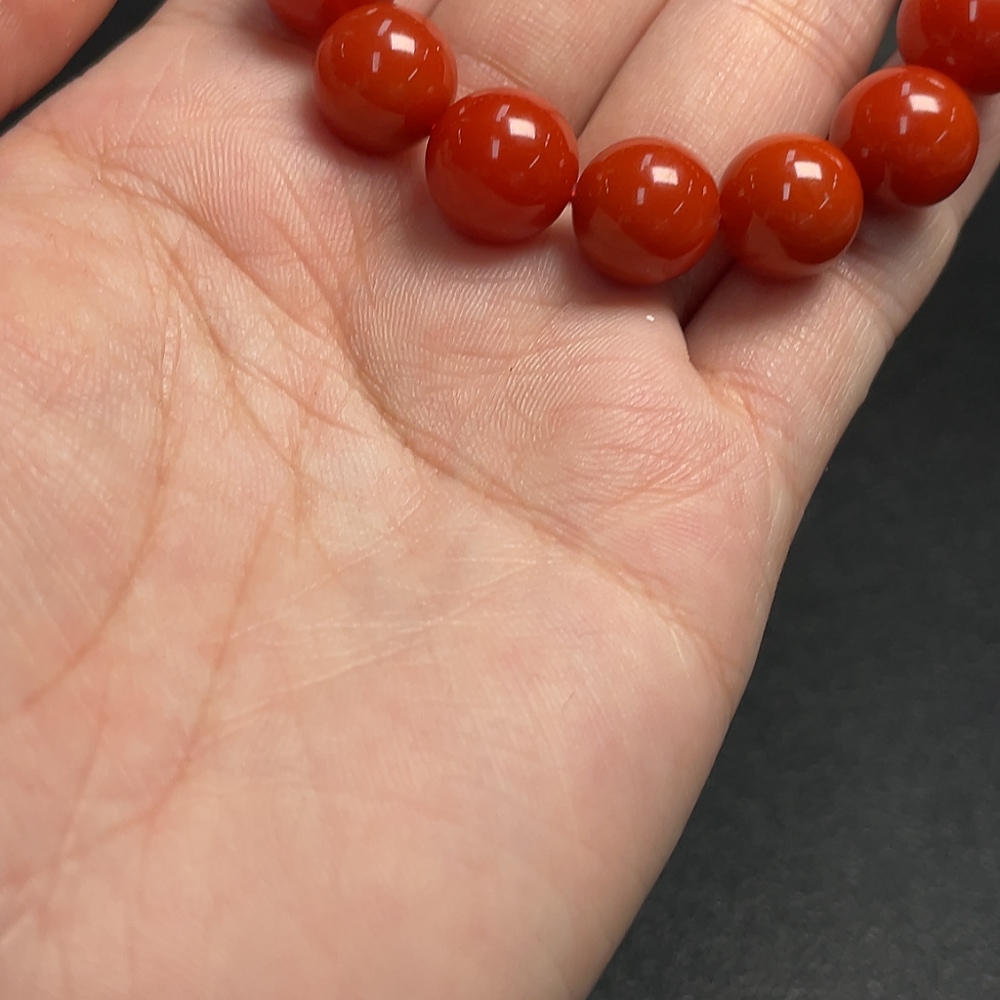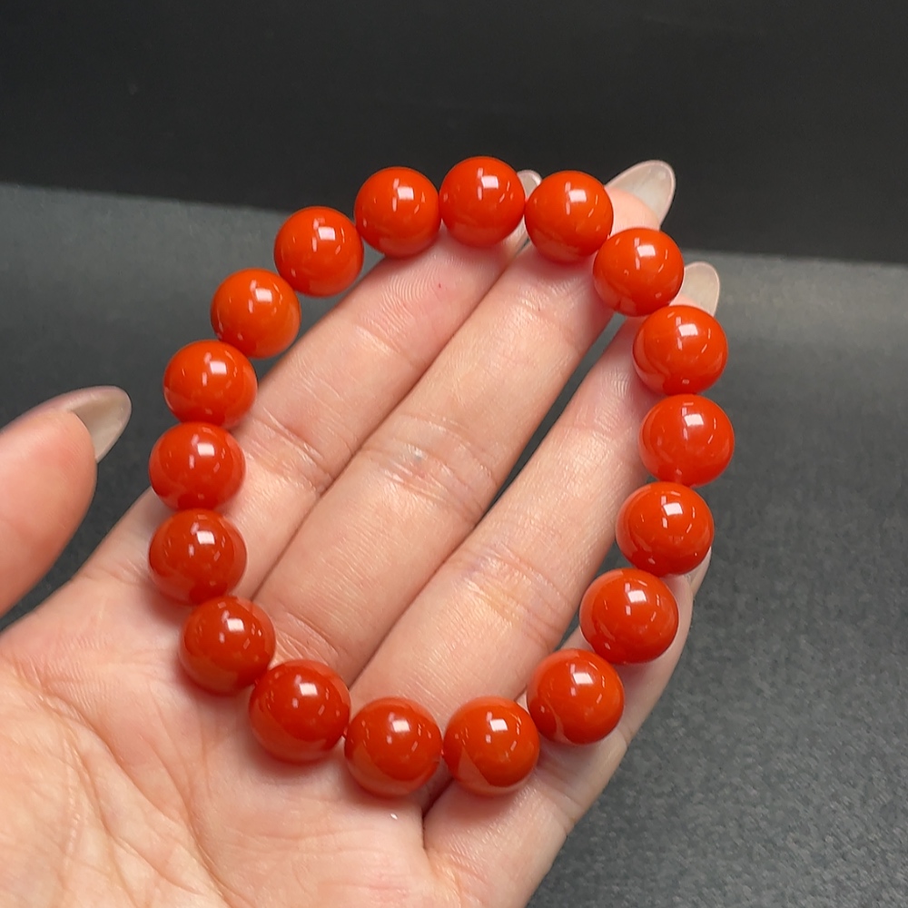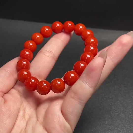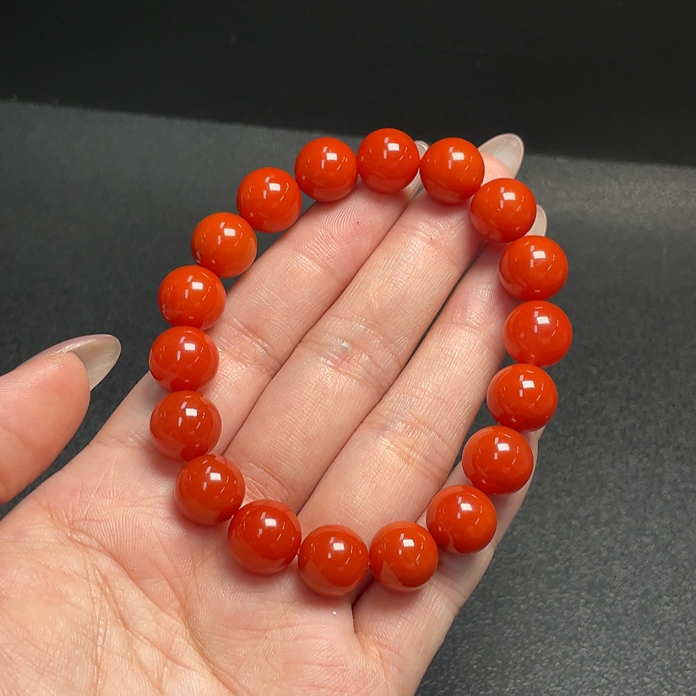 Red Agate Bracelet with Visible Organic Inclusions, Total Weight Approximately 34.96g, Size About 11mm