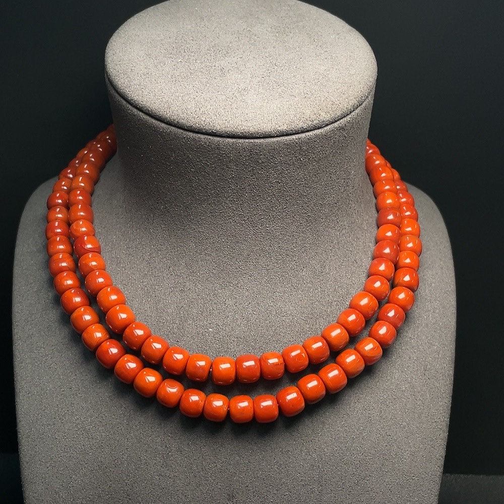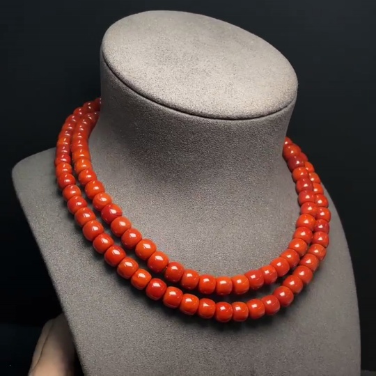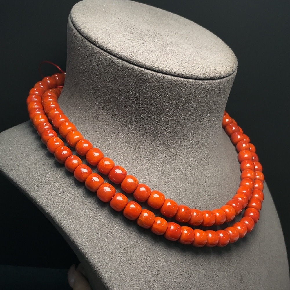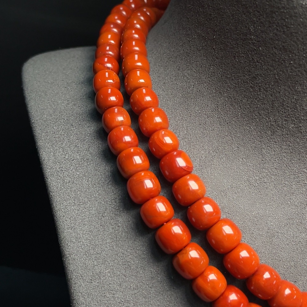 Red Agate Bead Necklace with Visible Organic Matter, Total Weight Approximately 120.67g, Approximately 9.3mm in Diameter