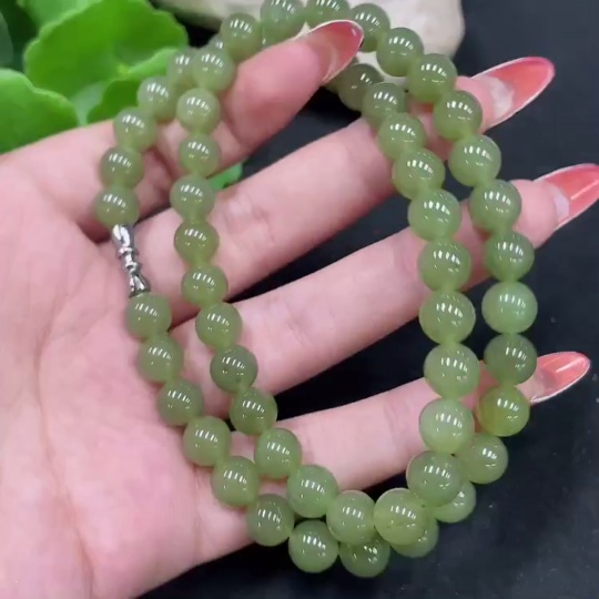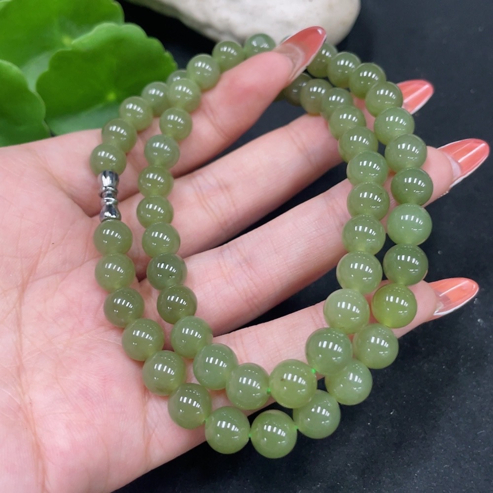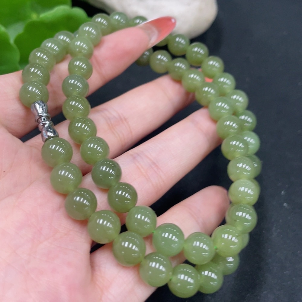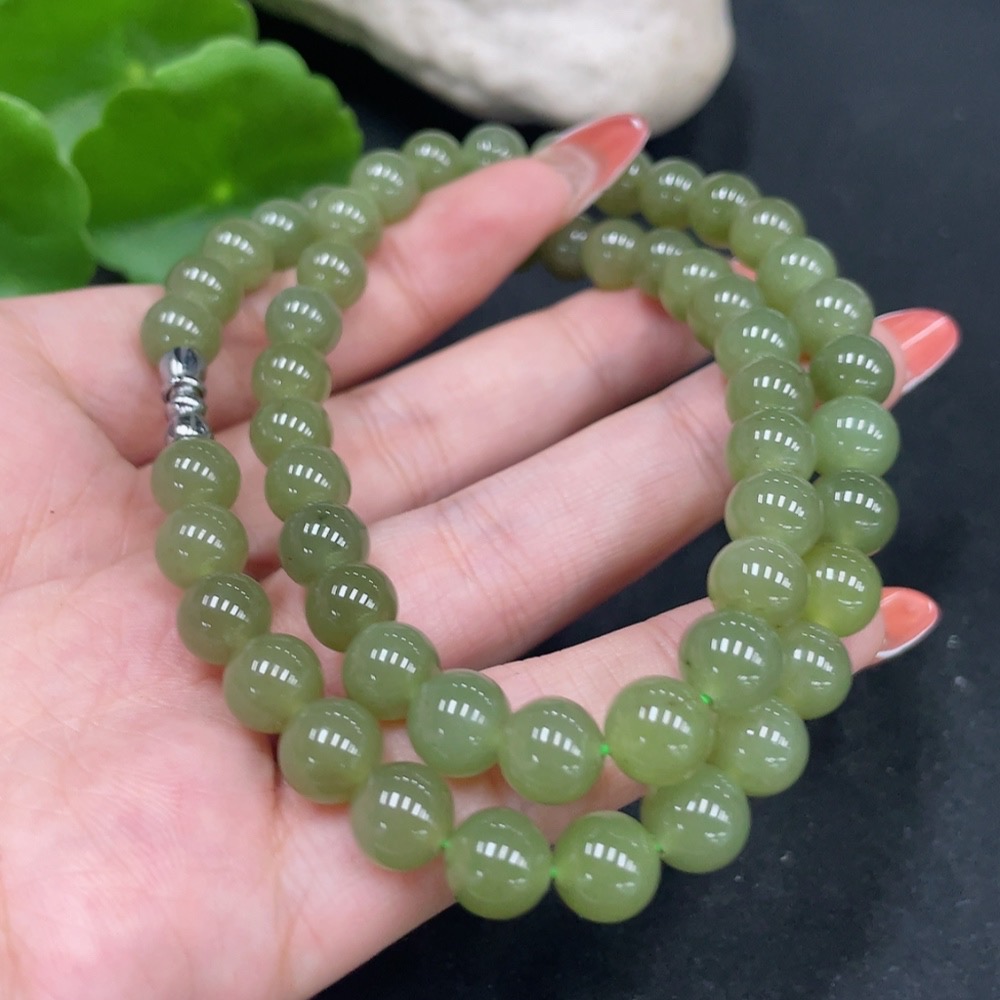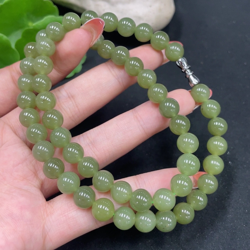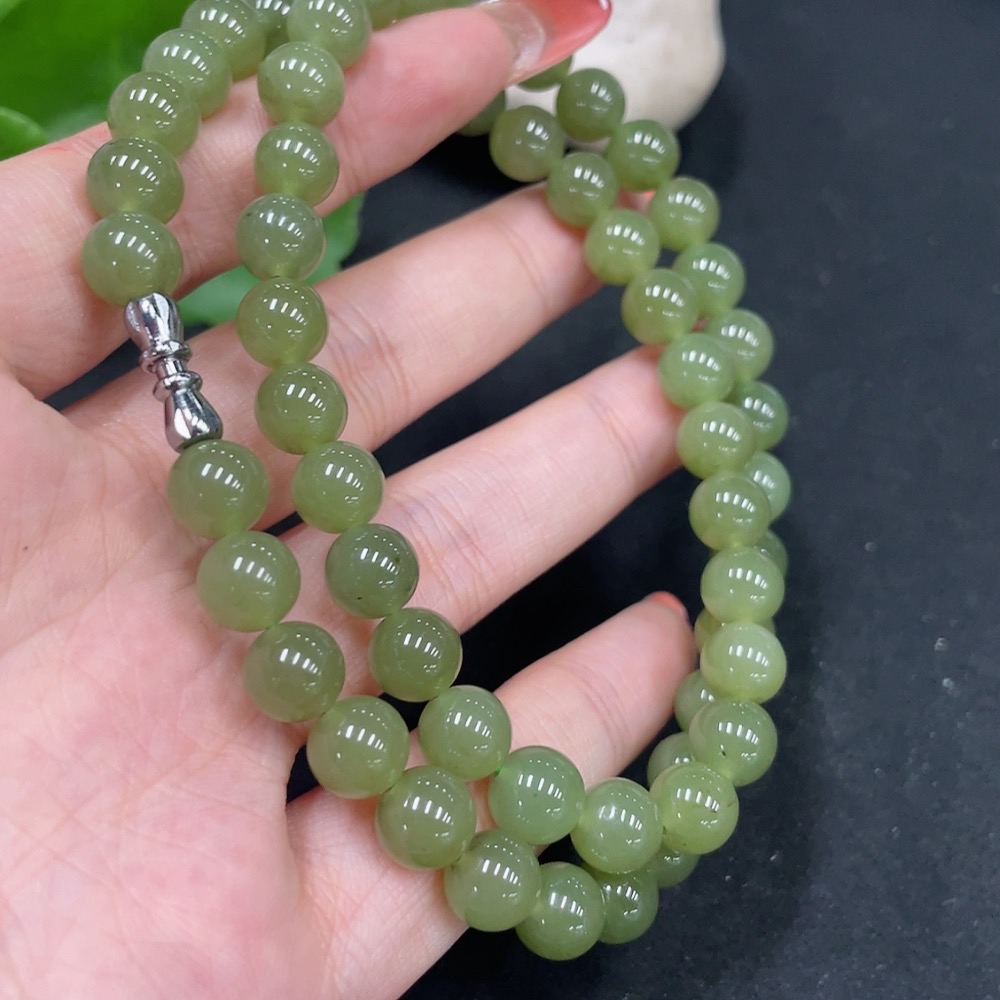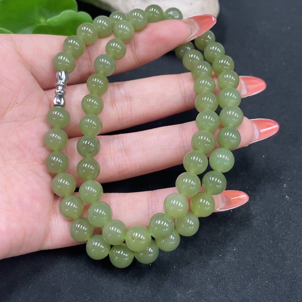 Hetian Jade Bead Necklace, Approx. 7.8mm, Non-Gold, Total Weight Approx. 44.4g