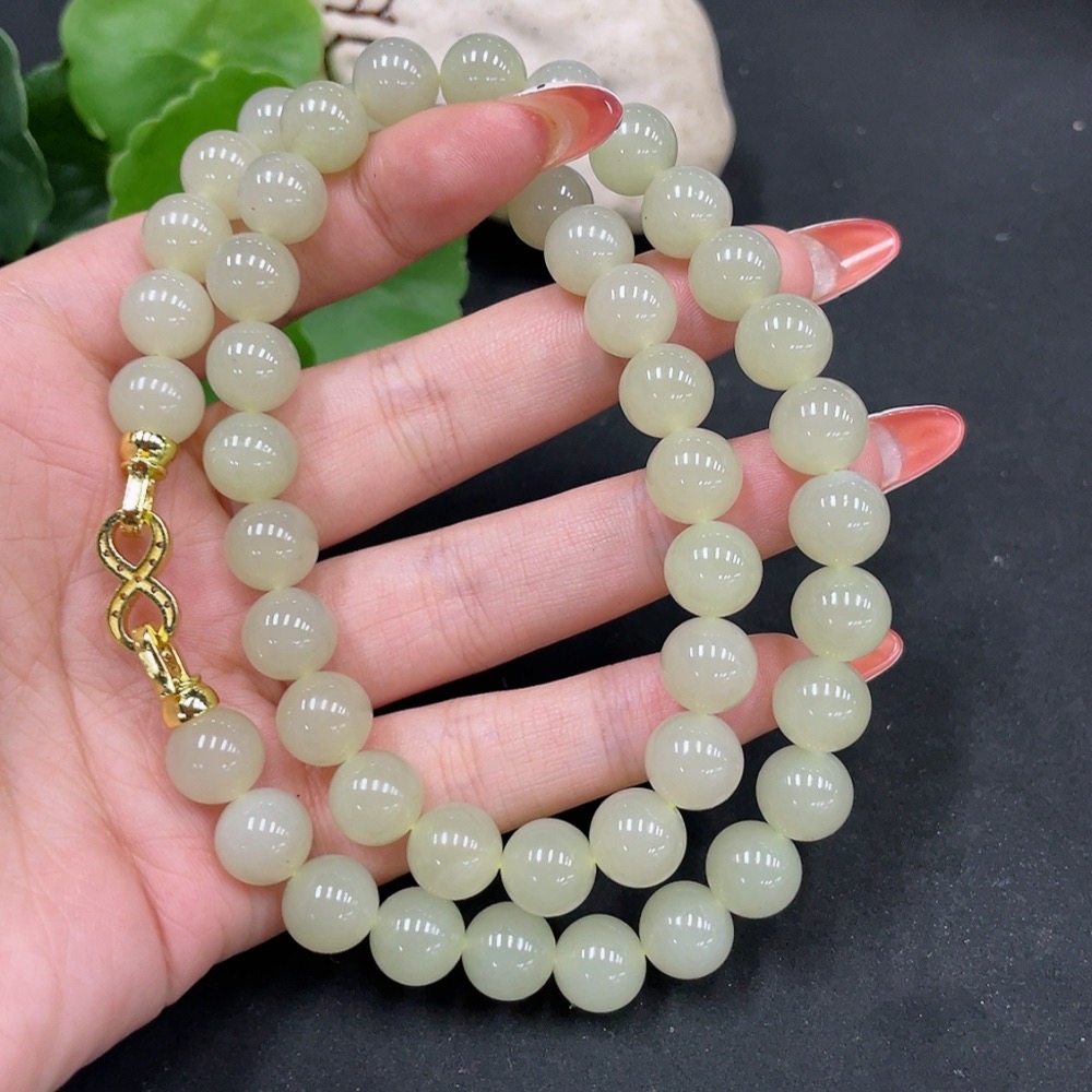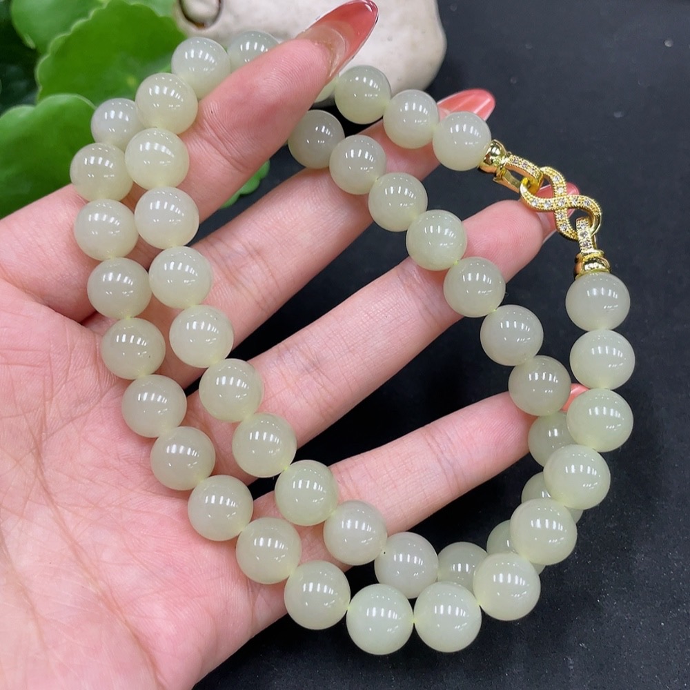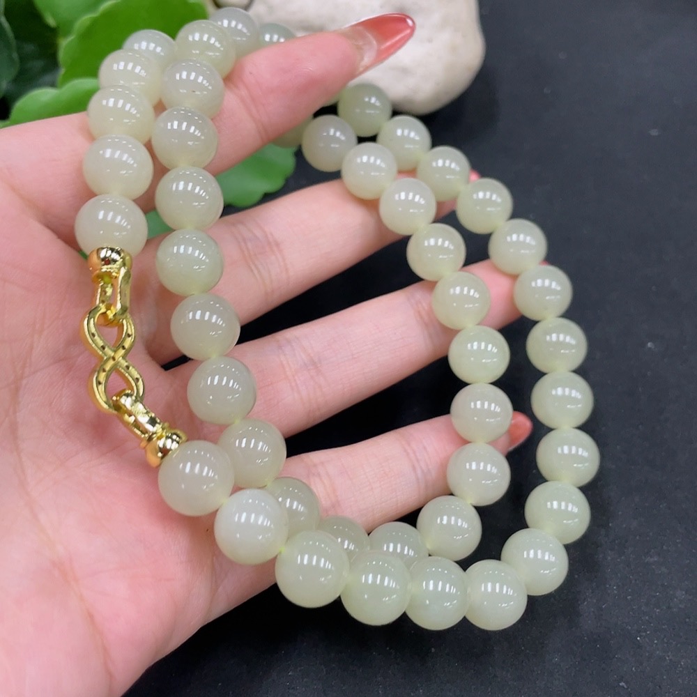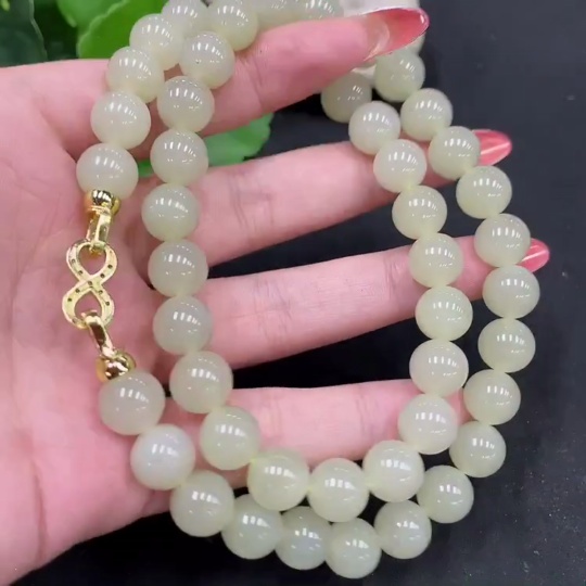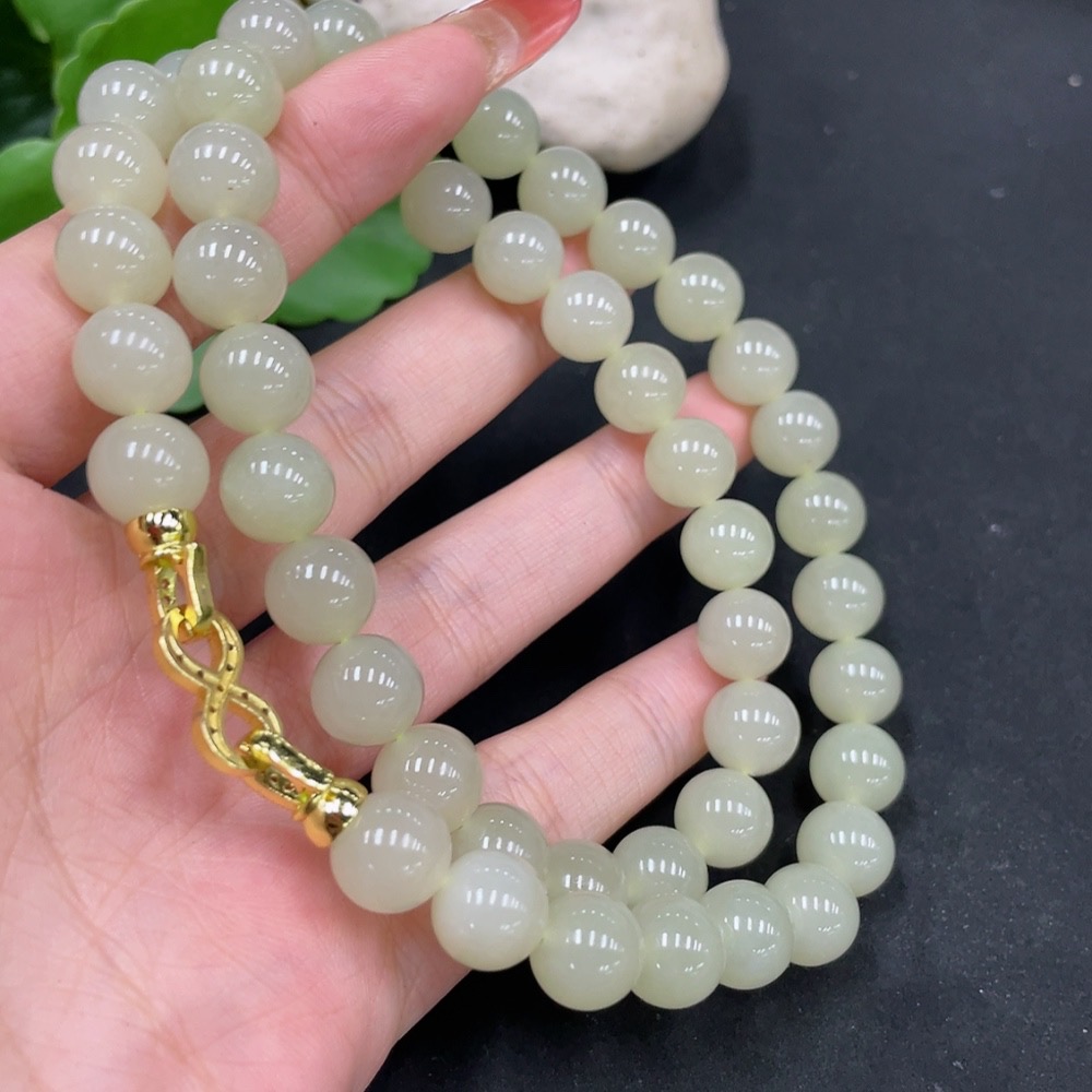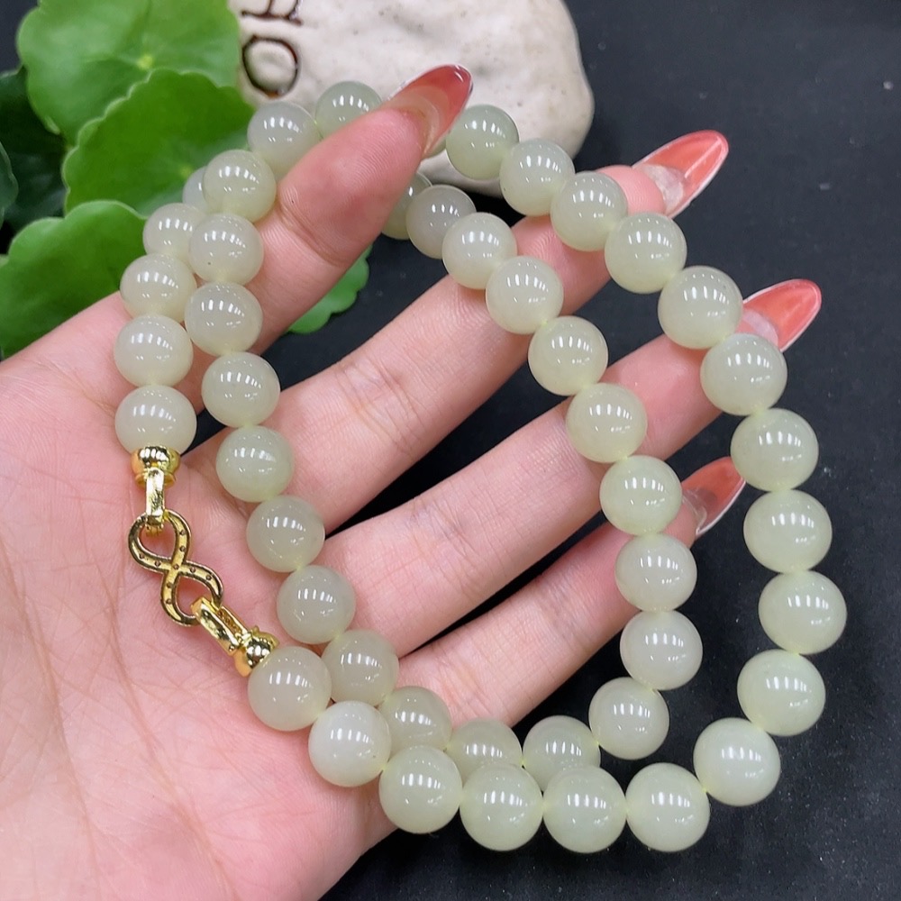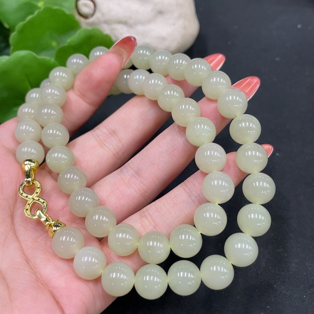 Hetian Jade Bead Chain Approx. 9.5mm Non-Gold Total Weight Approx. 73.1g
