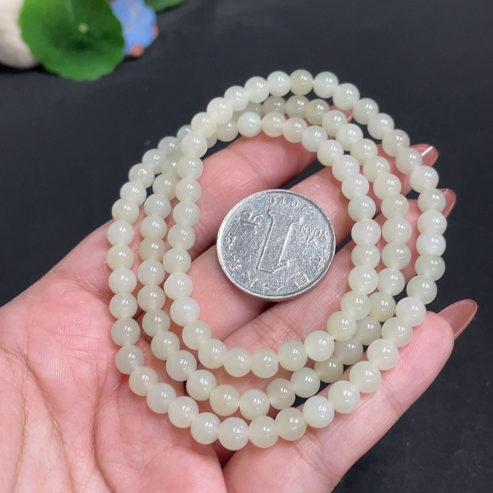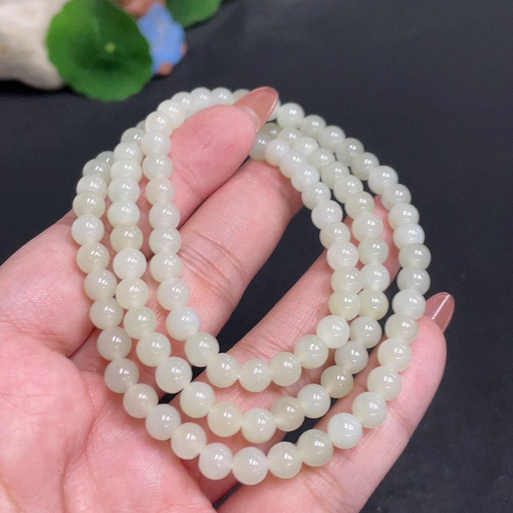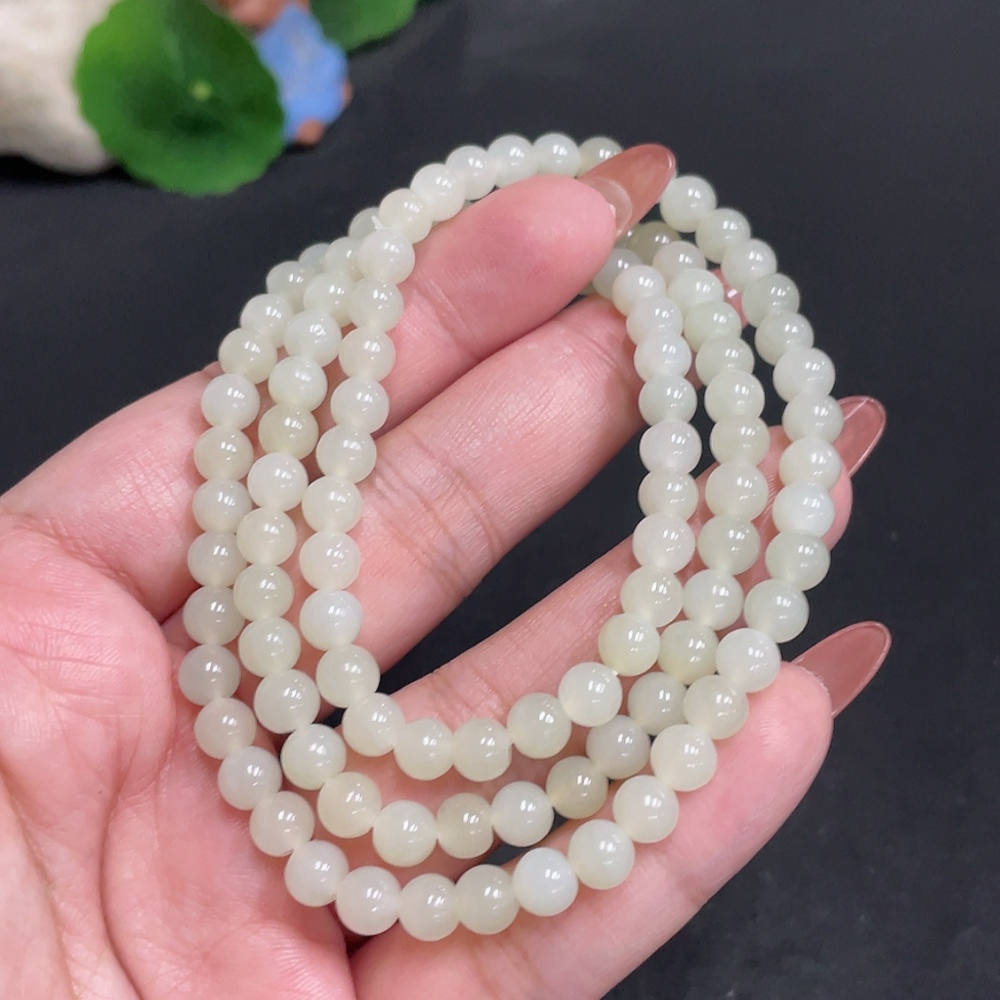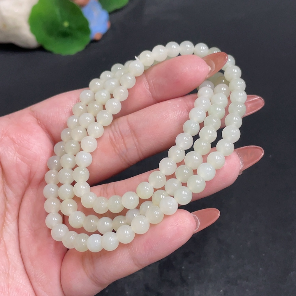 Hetian Jade Bead Necklace, approx. 5.7mm, total weight approx. 32.1g