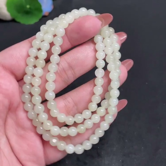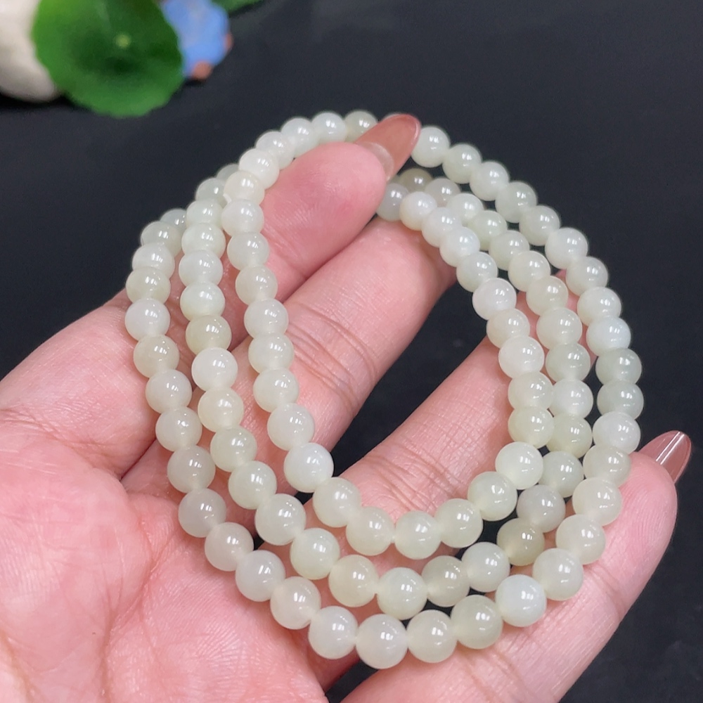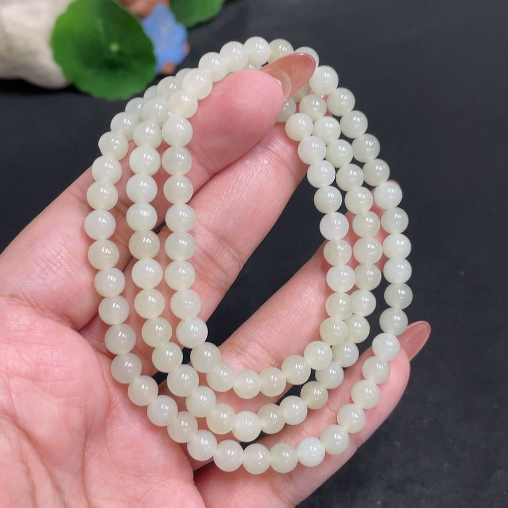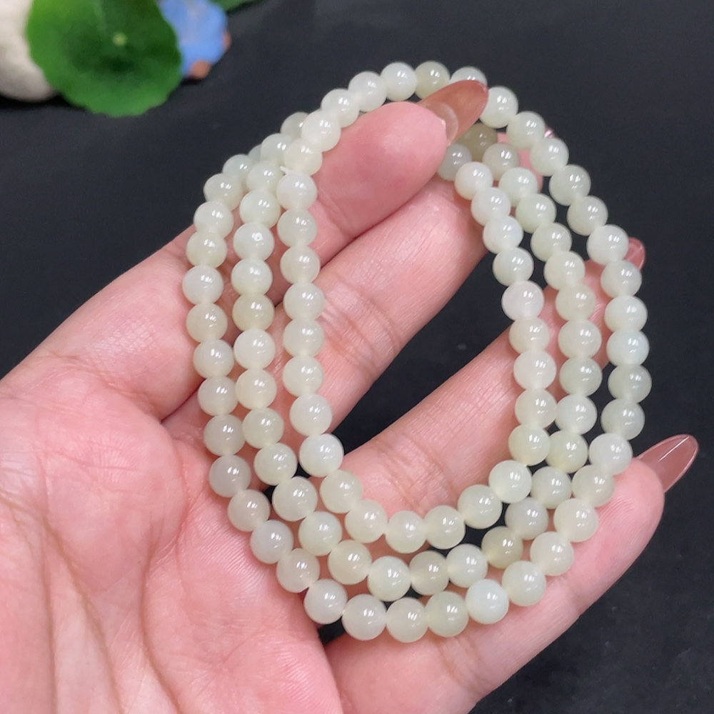 Hetian Jade Bead Necklace, approx. 5.7mm, total weight approx. 32.1g