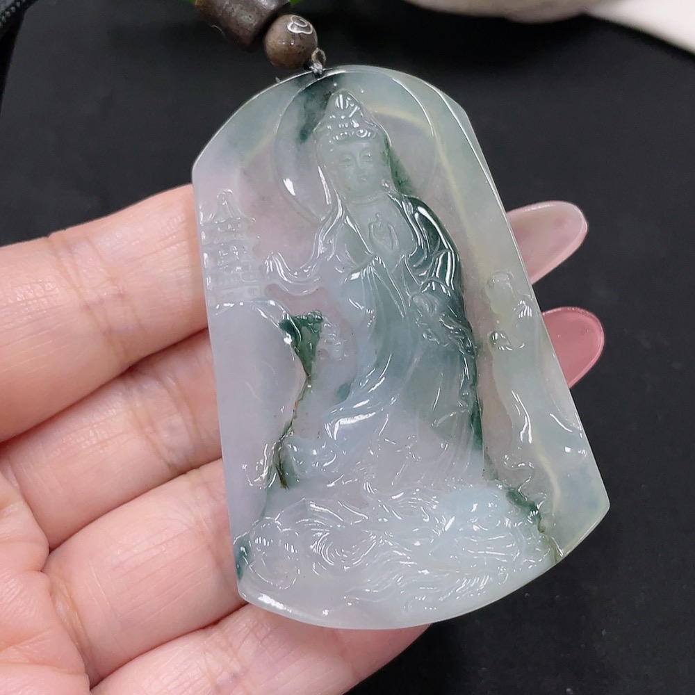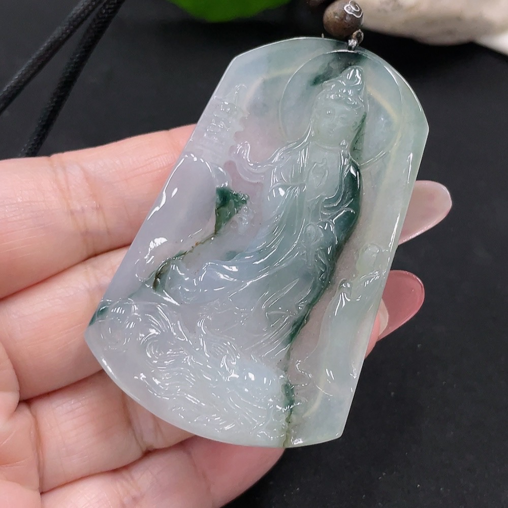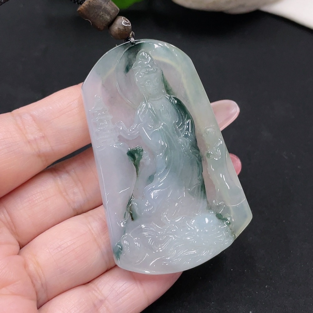 Jadeite Guanyin Pendant Total Weight Approx. 29.2g (including rope weight)