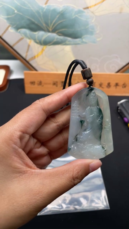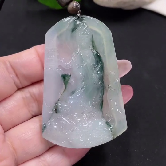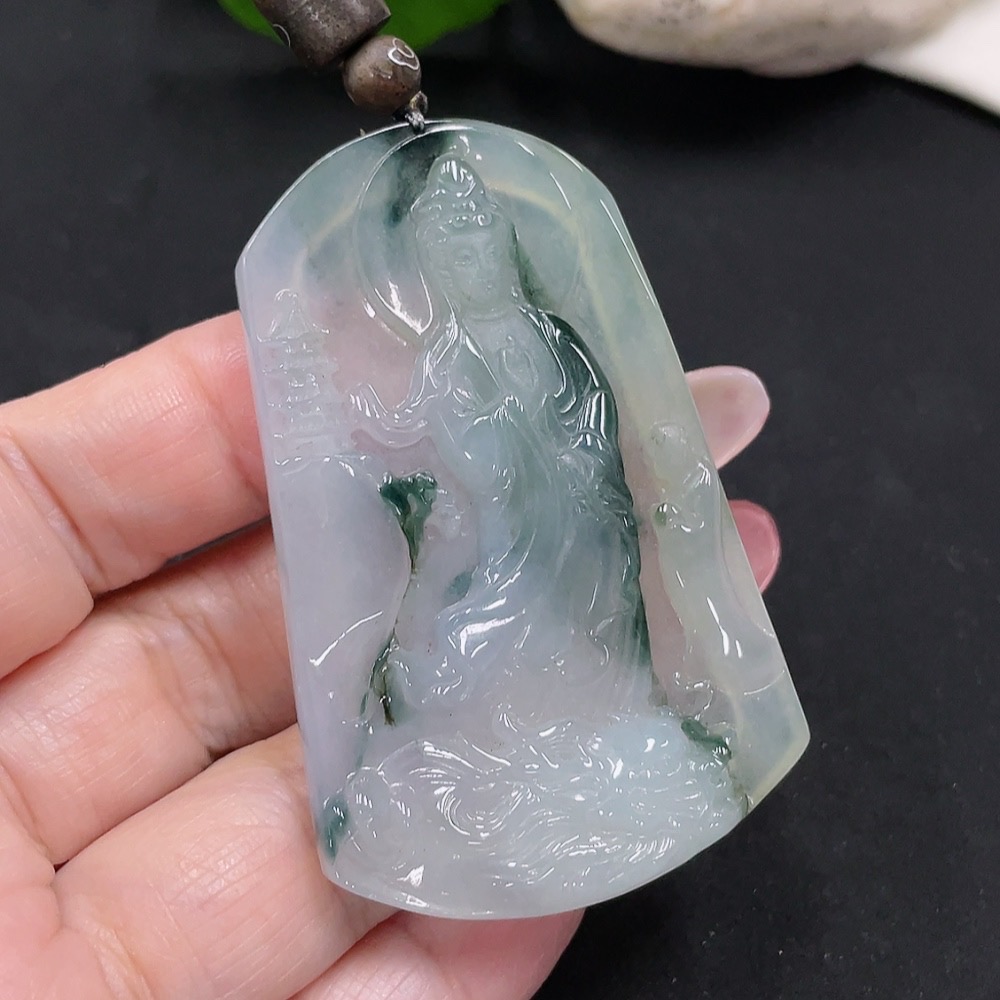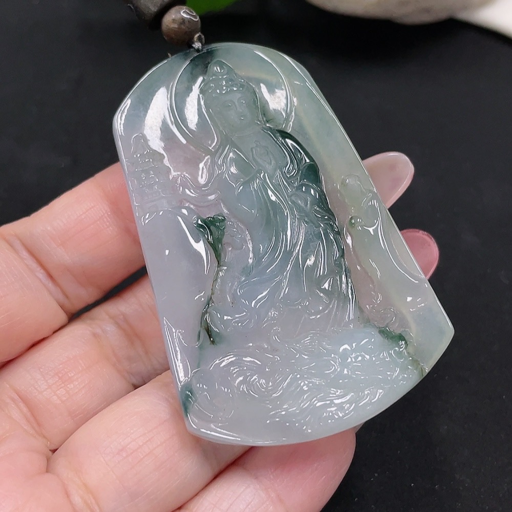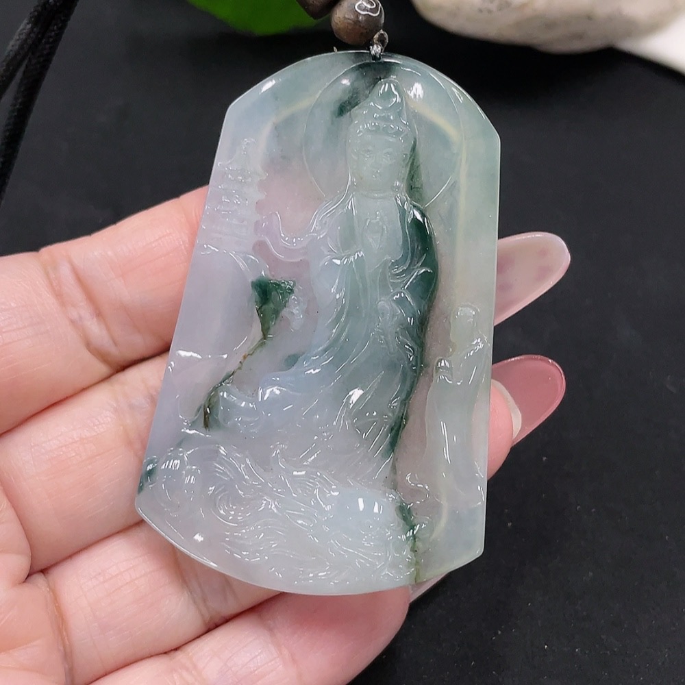 Jadeite Guanyin Pendant Total Weight Approx. 29.2g (including rope weight)