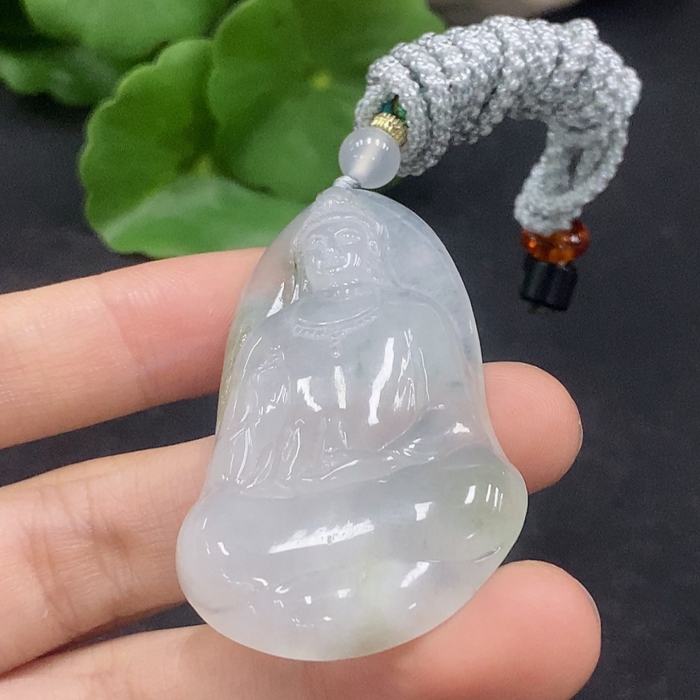 Jadeite Guanyin Pendant Total Weight Approx. 16.9g (Including Rope Weight) (Matching Beads Non-Grade A)