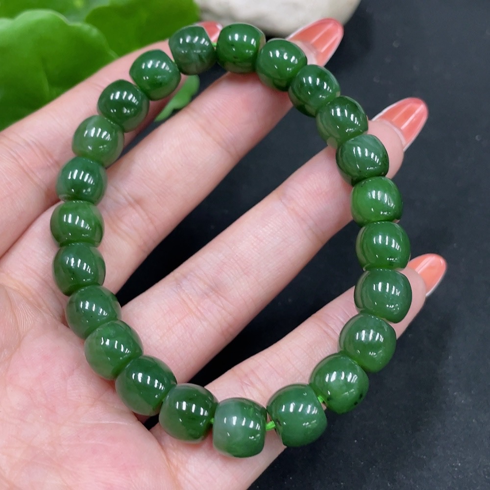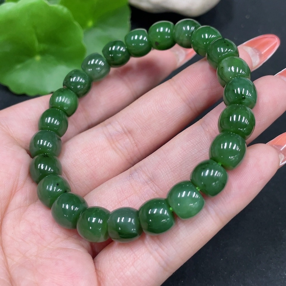 Hetian Jade Jasper Bead Bracelet Approx. 9mm Total Weight About 27.8g