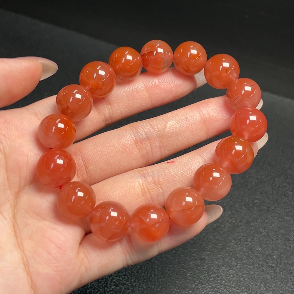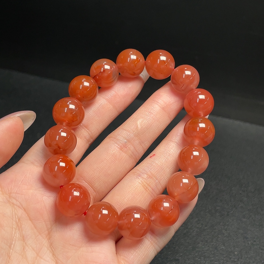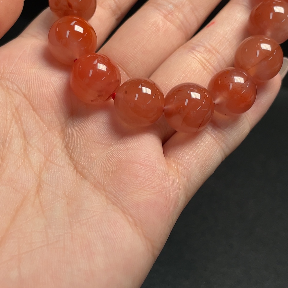 South Red Agate Bracelet with Visible Organic Matter, Total Weight Approx. 51.83g, Size About 13.3mm
