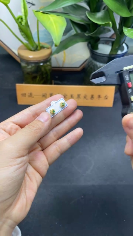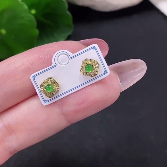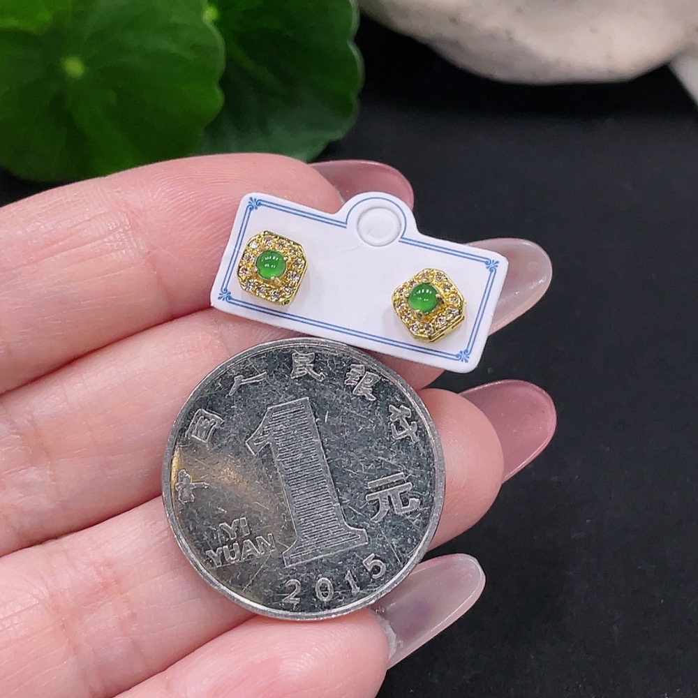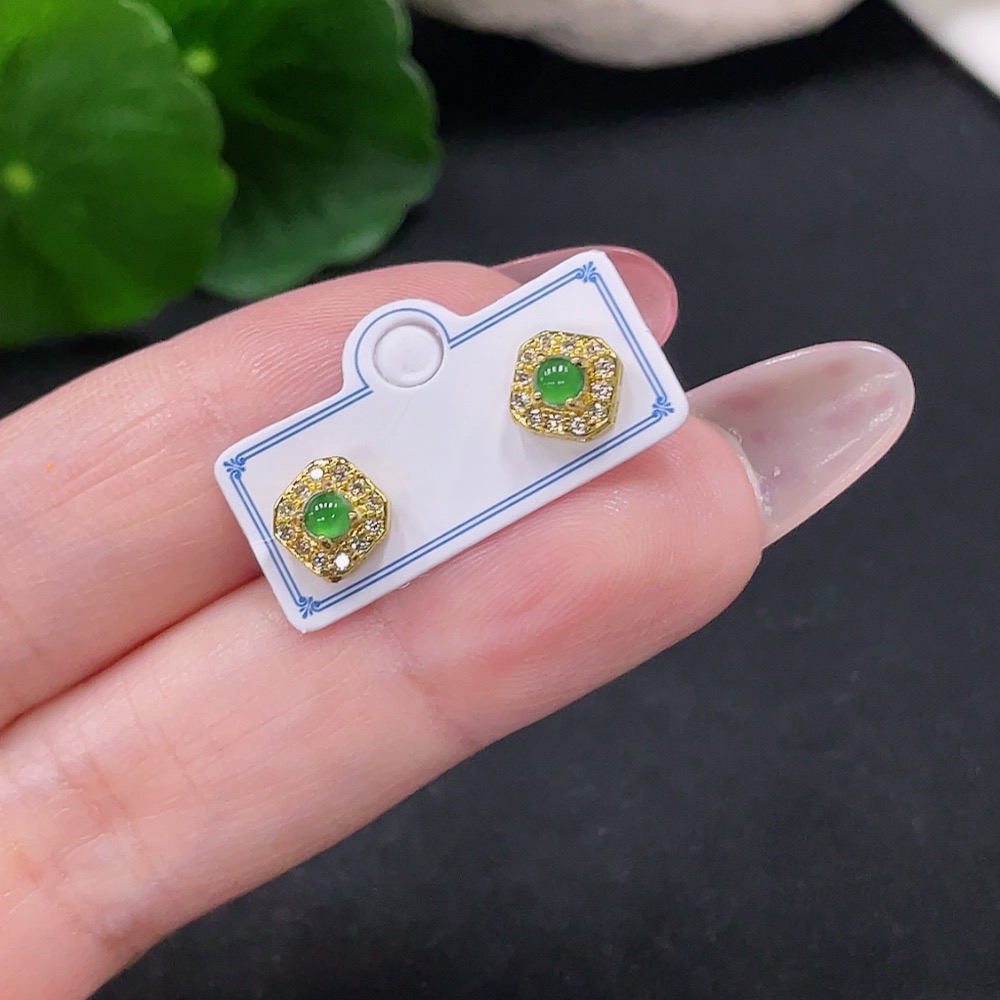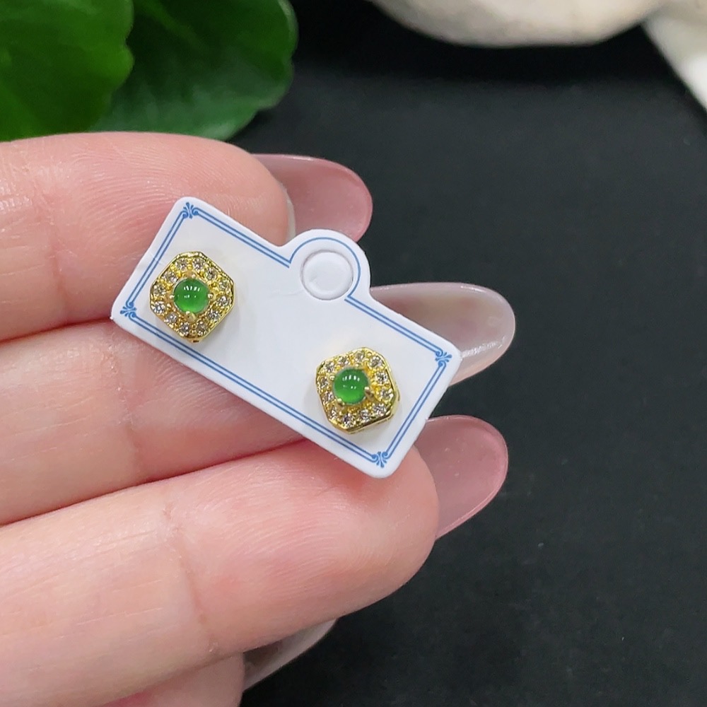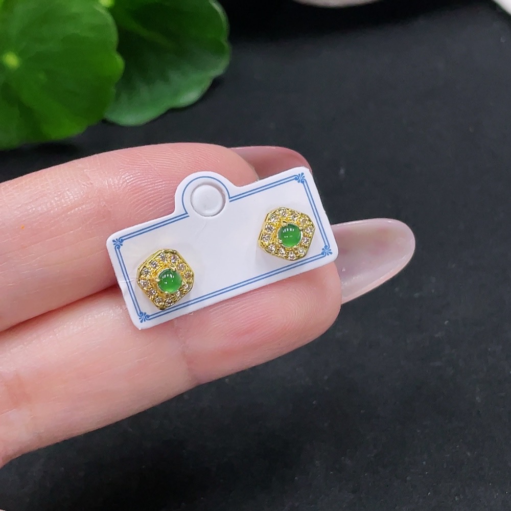 A pair of Jadeite inlaid earrings with a total product weight of approximately 0.8g (non-gold inlaid)