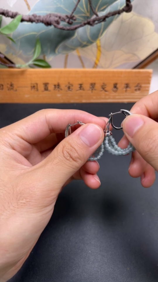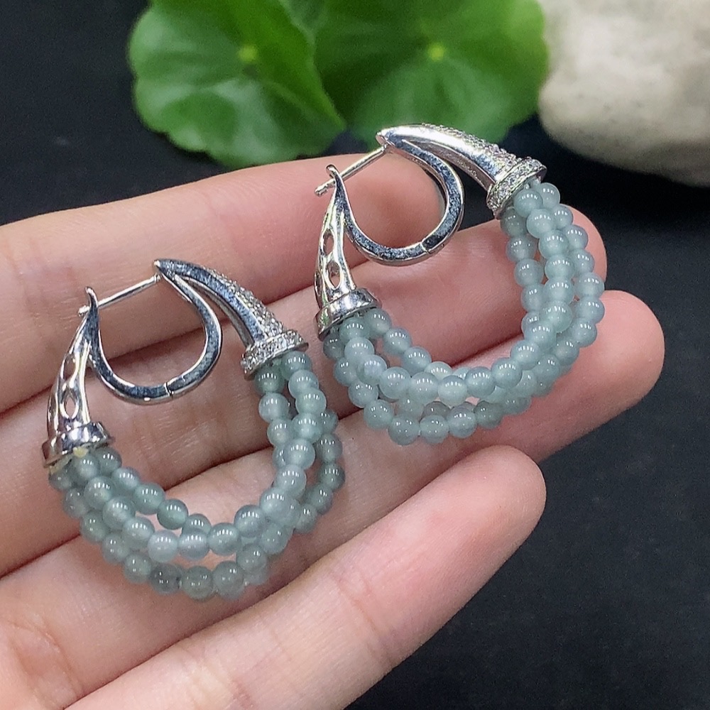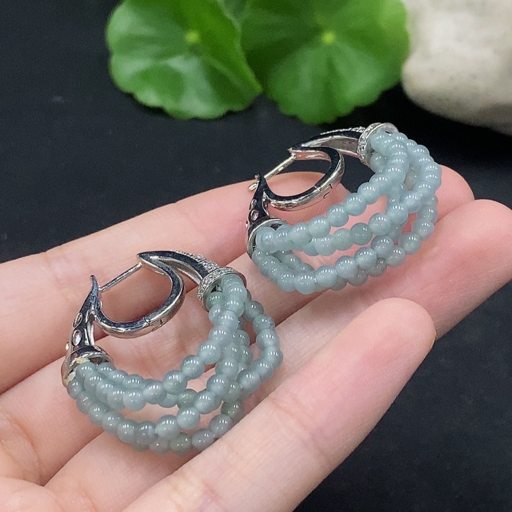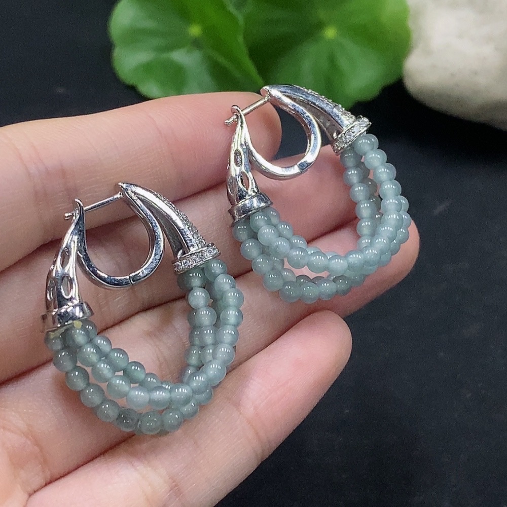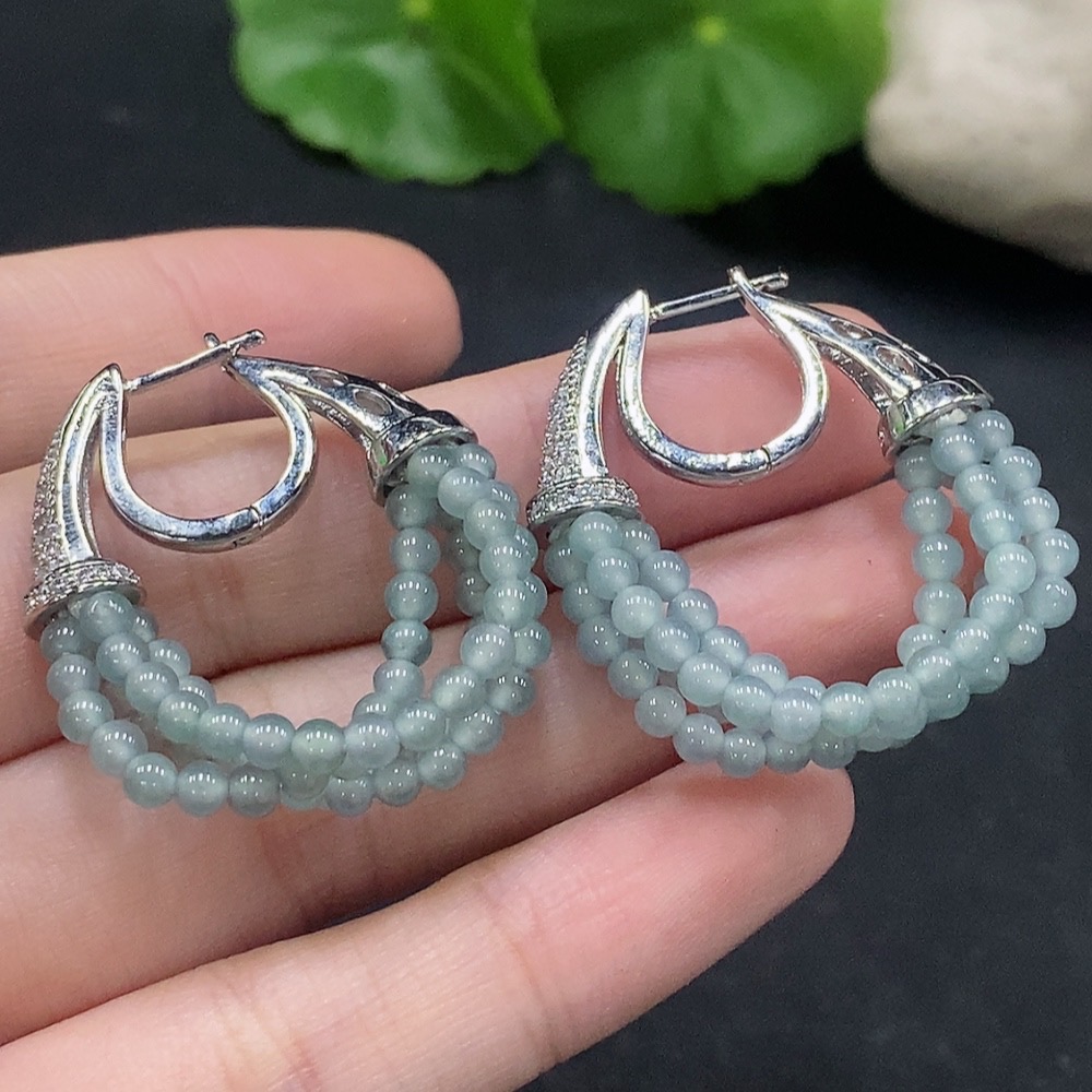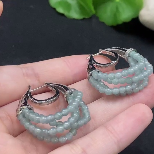Jadeite Inlaid Earrings Non-Gold Inlaid Total Weight About 10.2g