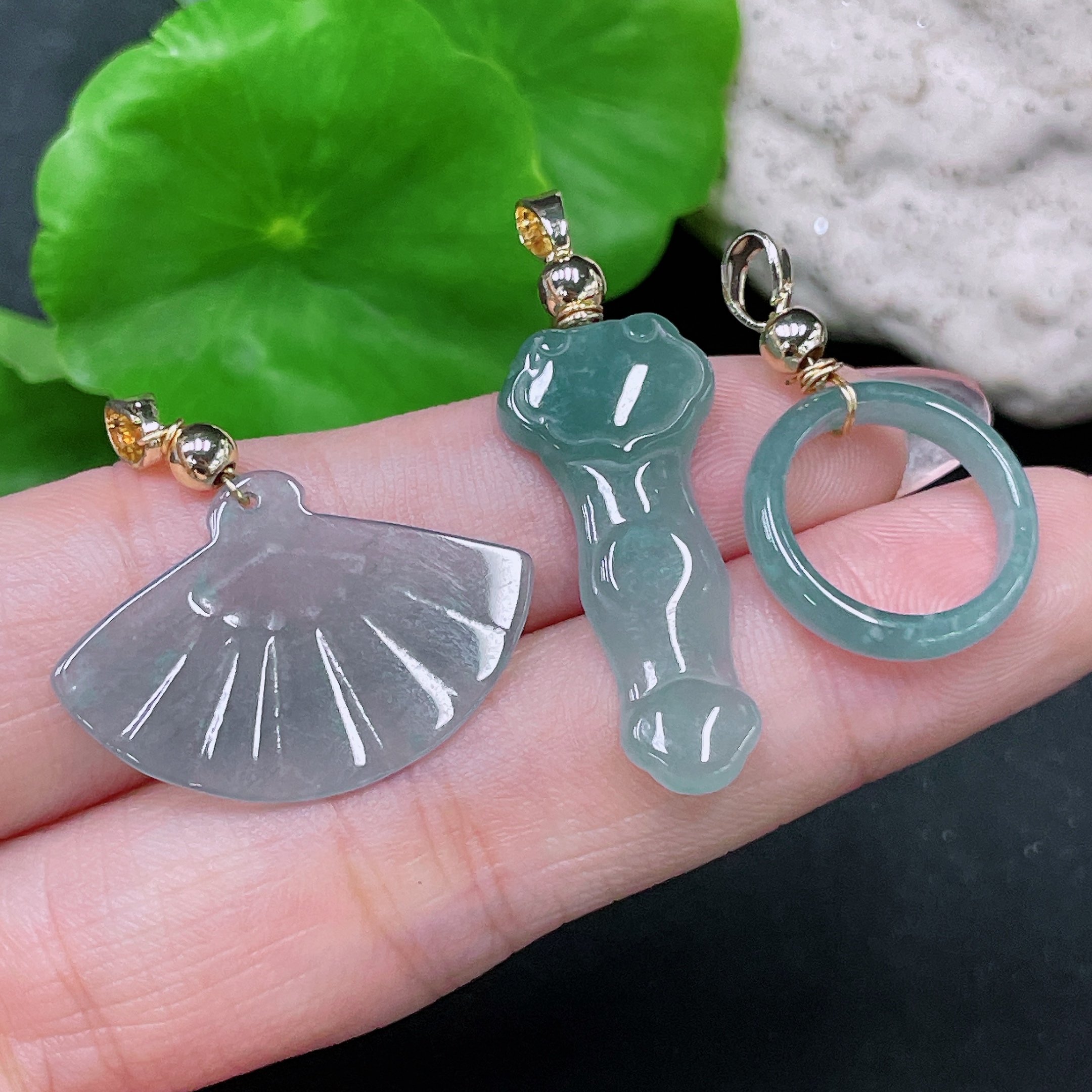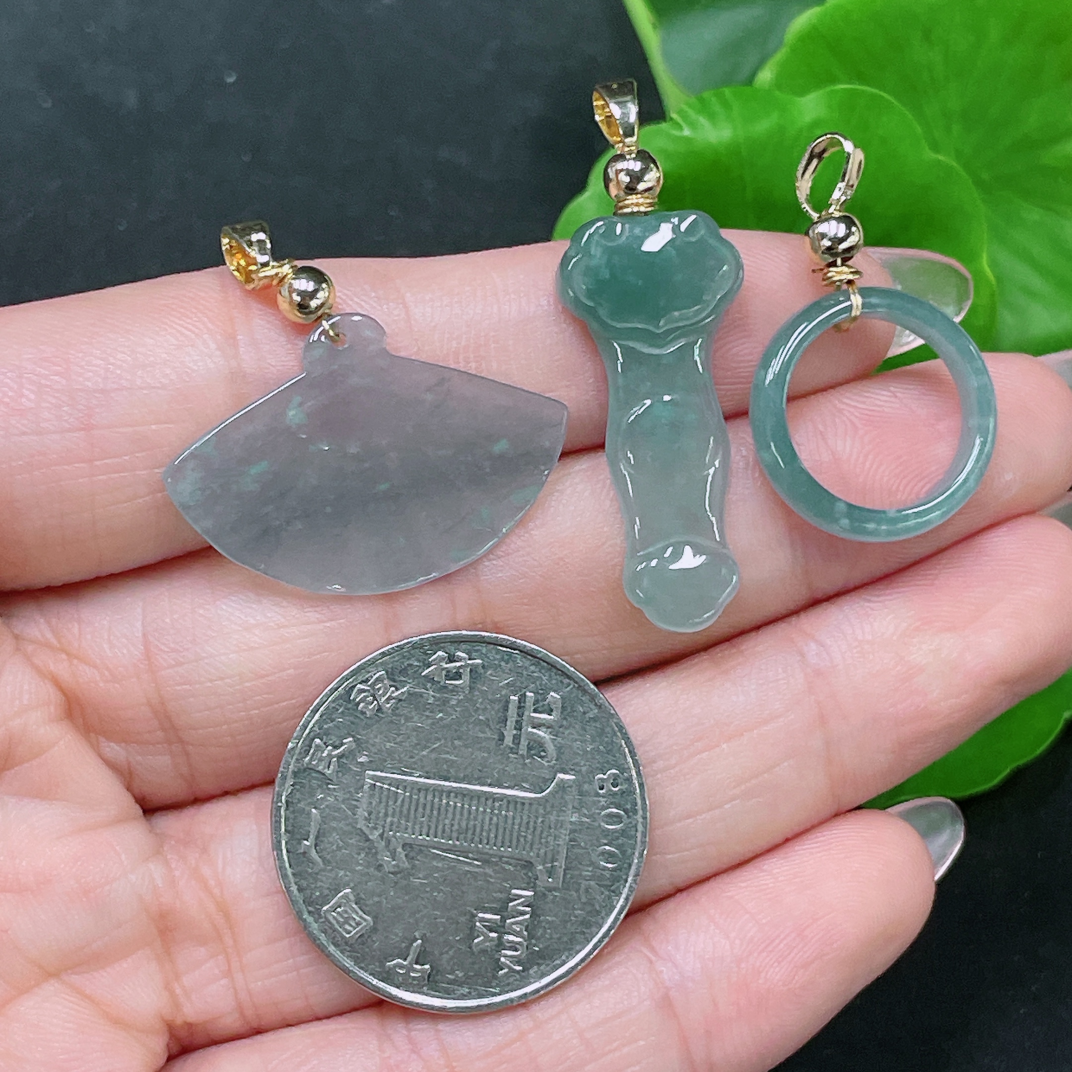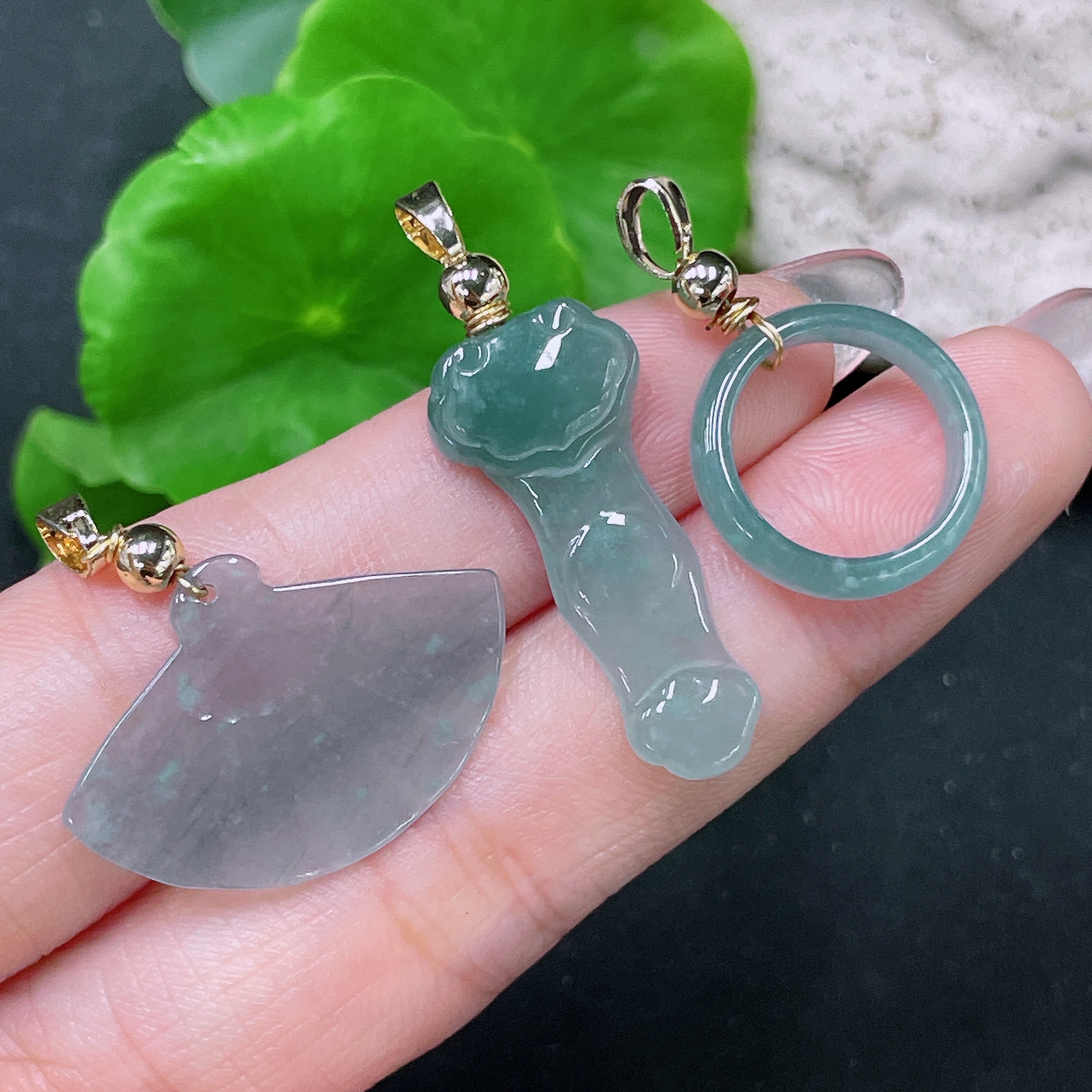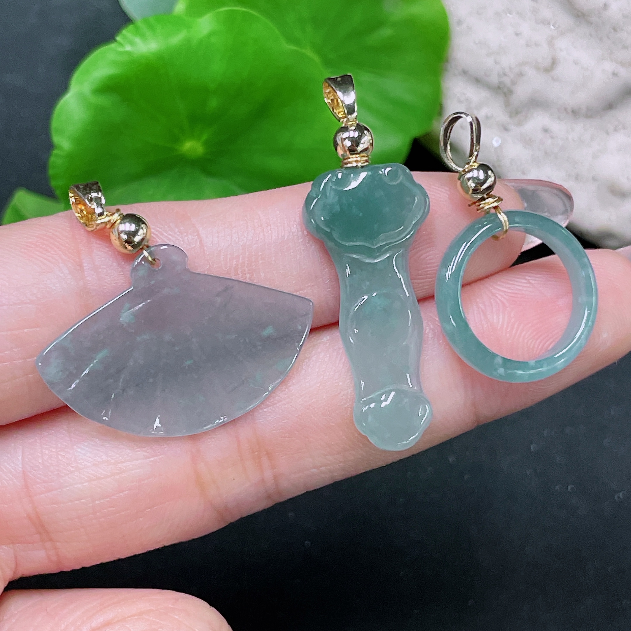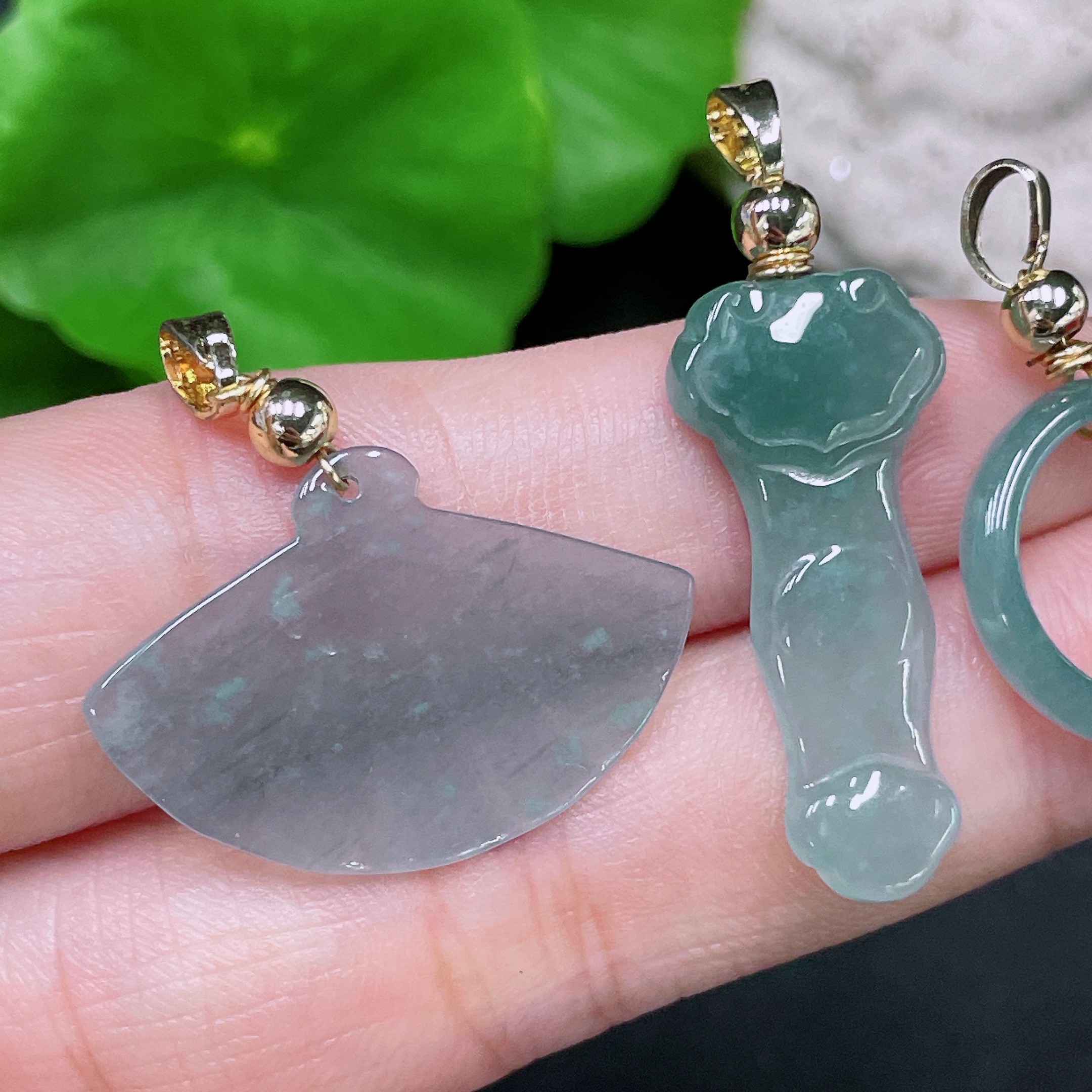 Jadeite Pendant Sell as a Lot Non-Gold Inlaid
