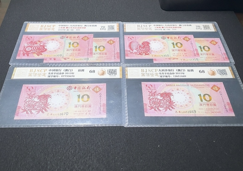 Macau Issued Zodiac Commemorative Banknotes Set Graded Paper Money