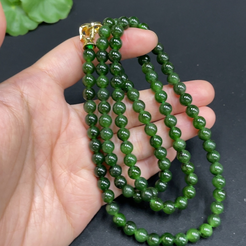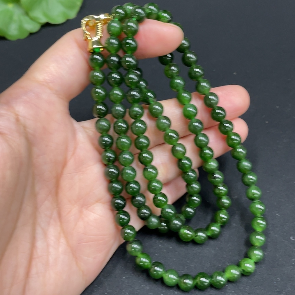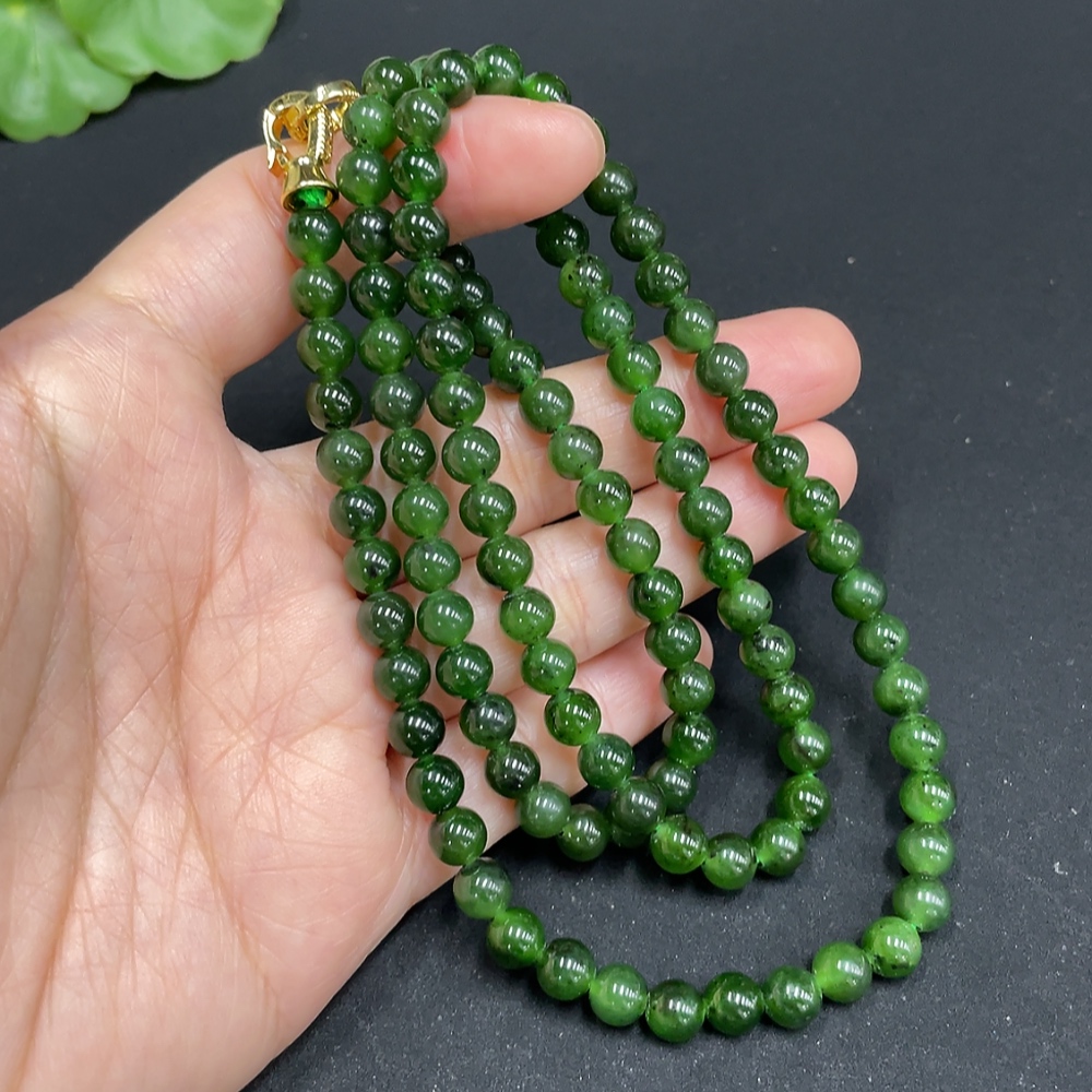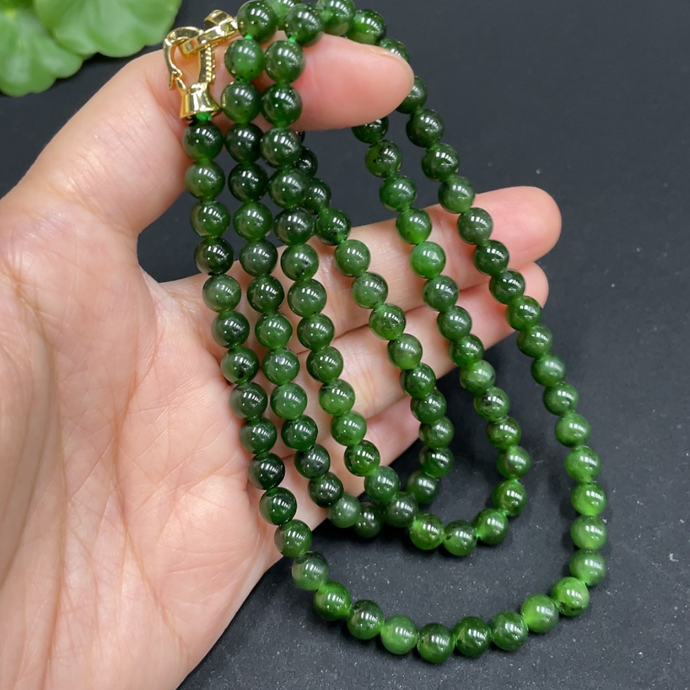 Hetian Jade Beaded Necklace, Approx. 5.8mm, Non-Gold-Inlaid, Total Weight Approx. 35.4g