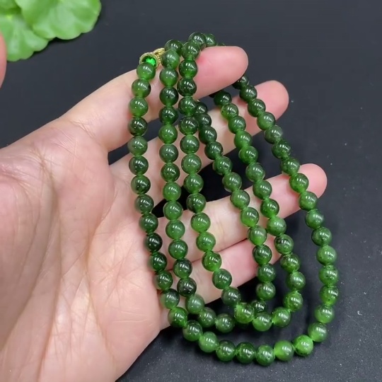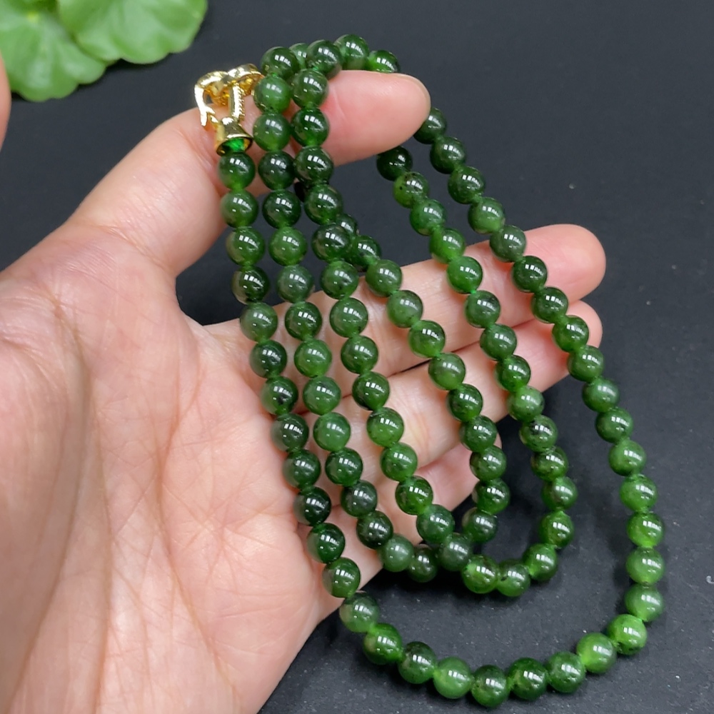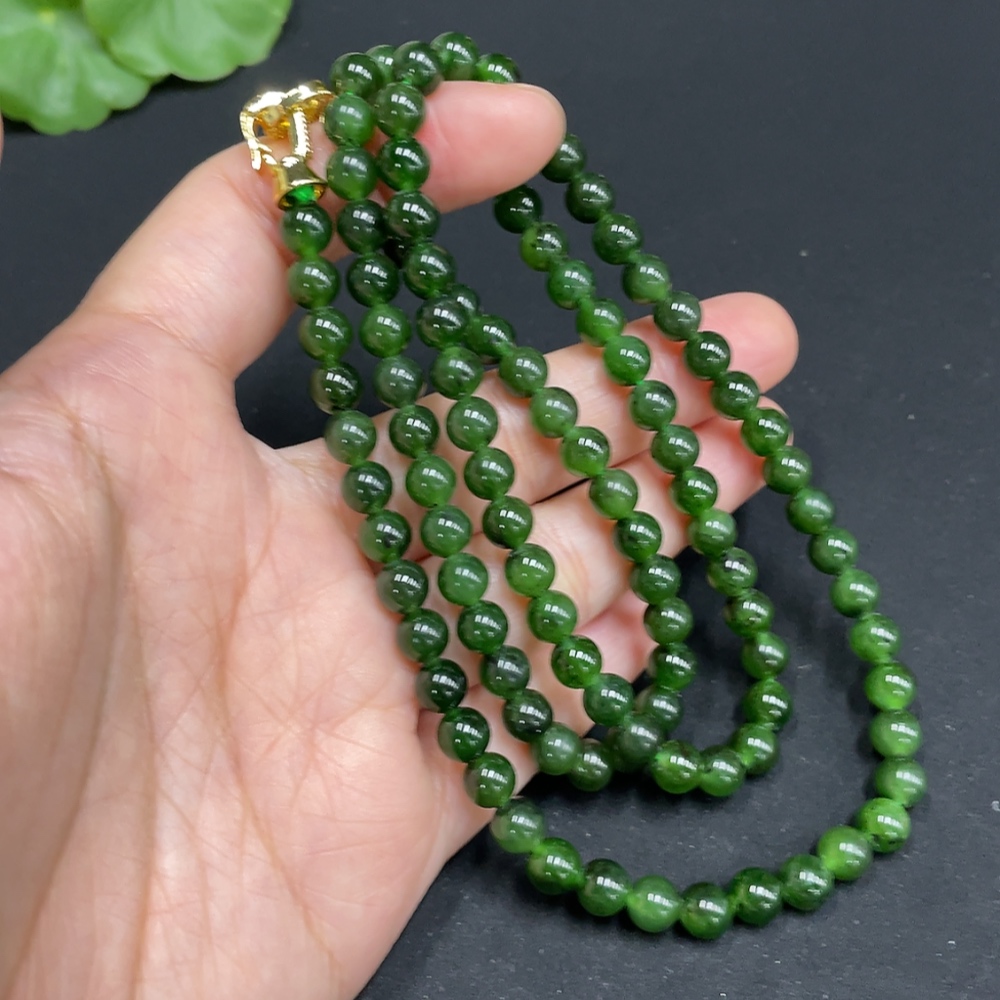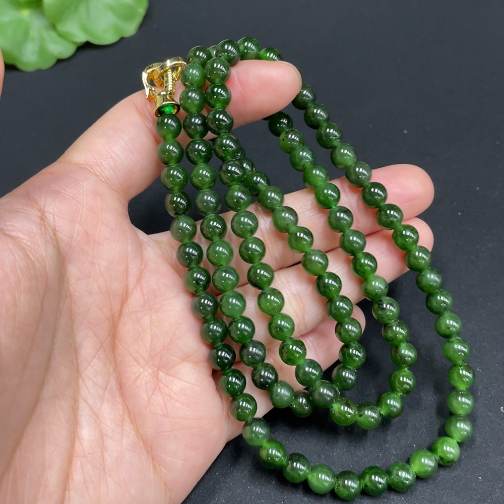 Hetian Jade Beaded Necklace, Approx. 5.8mm, Non-Gold-Inlaid, Total Weight Approx. 35.4g