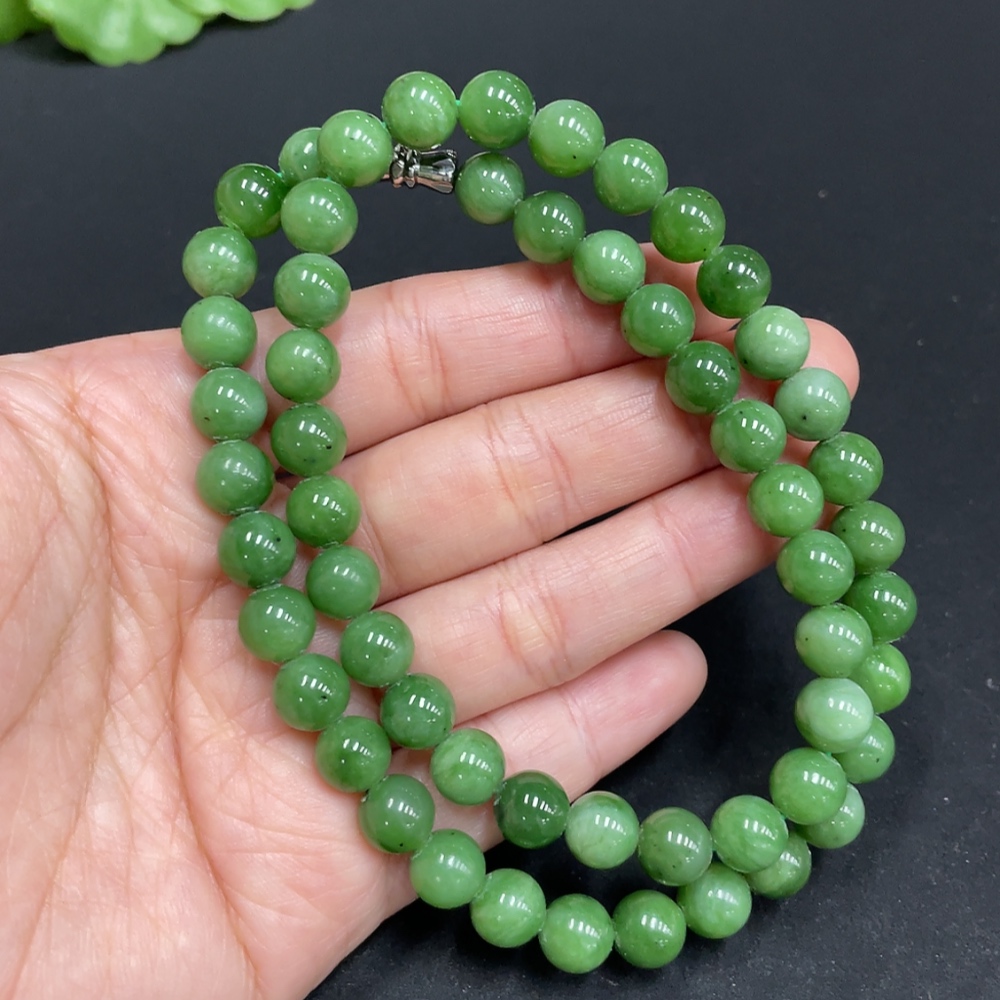 Hetian Jade Bead Necklace, approx. 7.5mm, total weight approx. 42.2g