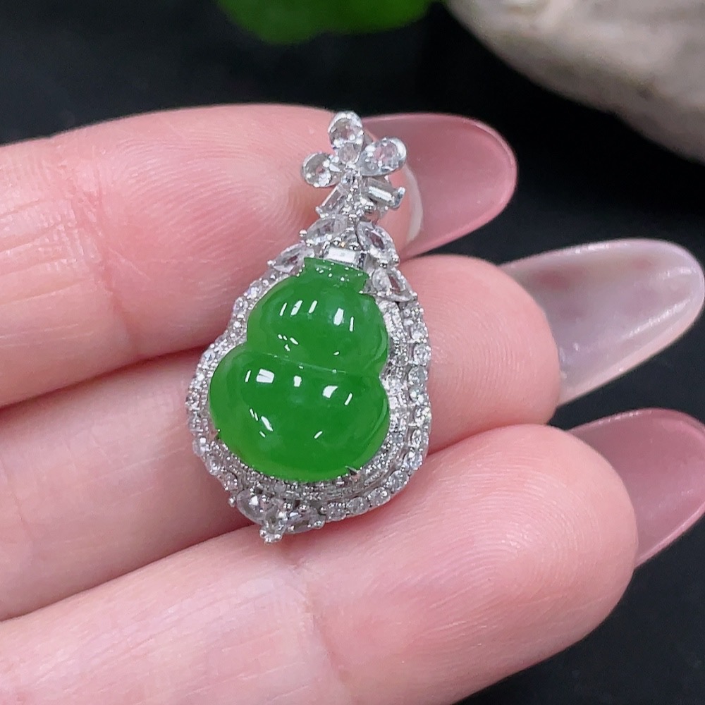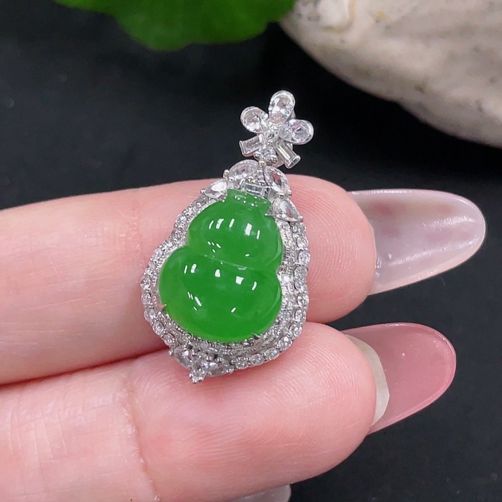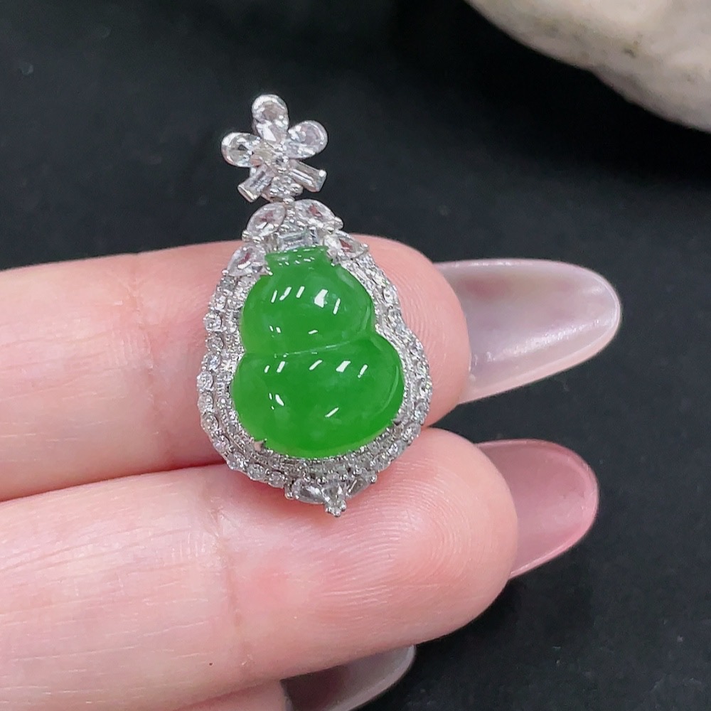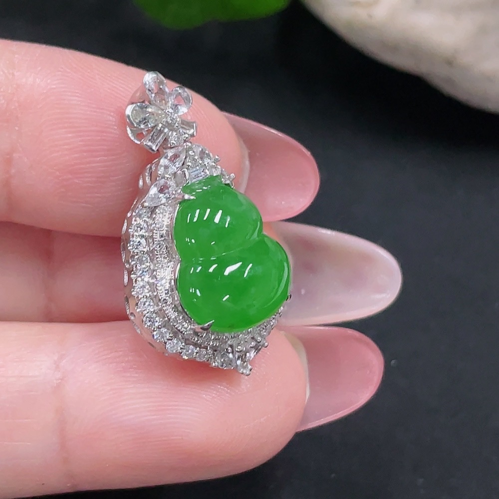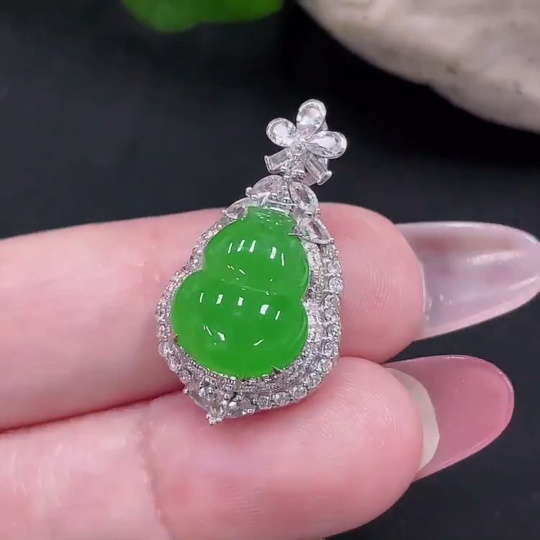 Jadeite gourd inlaid pendant 18k set with diamonds (only round diamonds on both sides of the main body) total weight approx. 4.07g