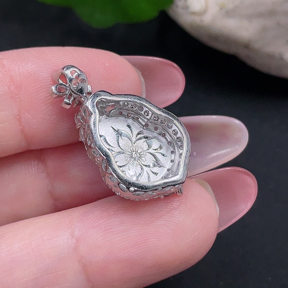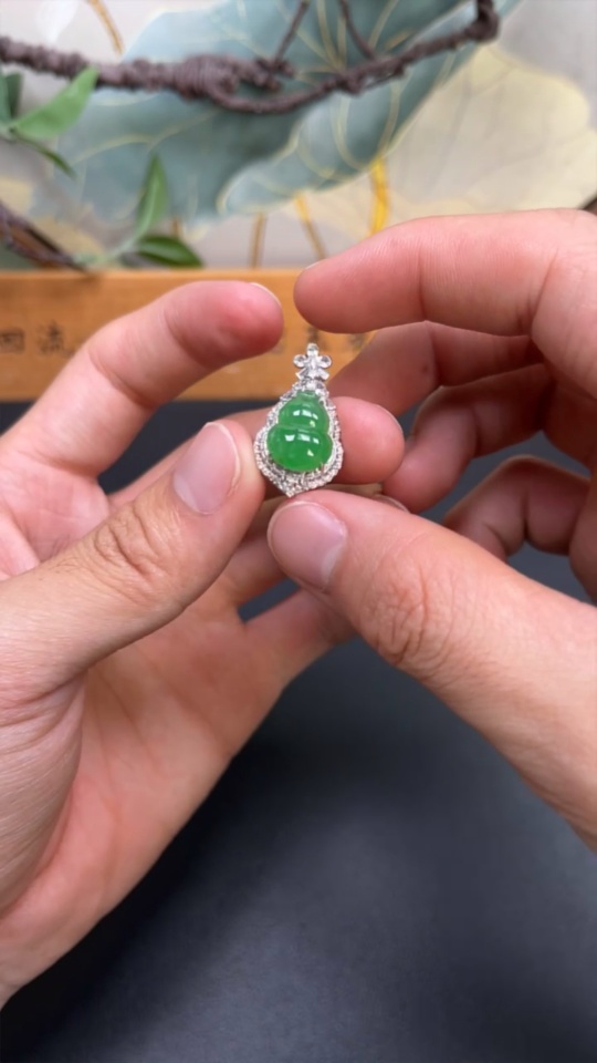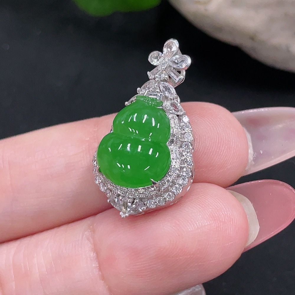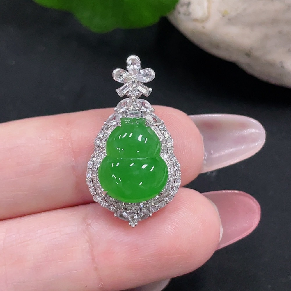 Jadeite gourd inlaid pendant 18k set with diamonds (only round diamonds on both sides of the main body) total weight approx. 4.07g