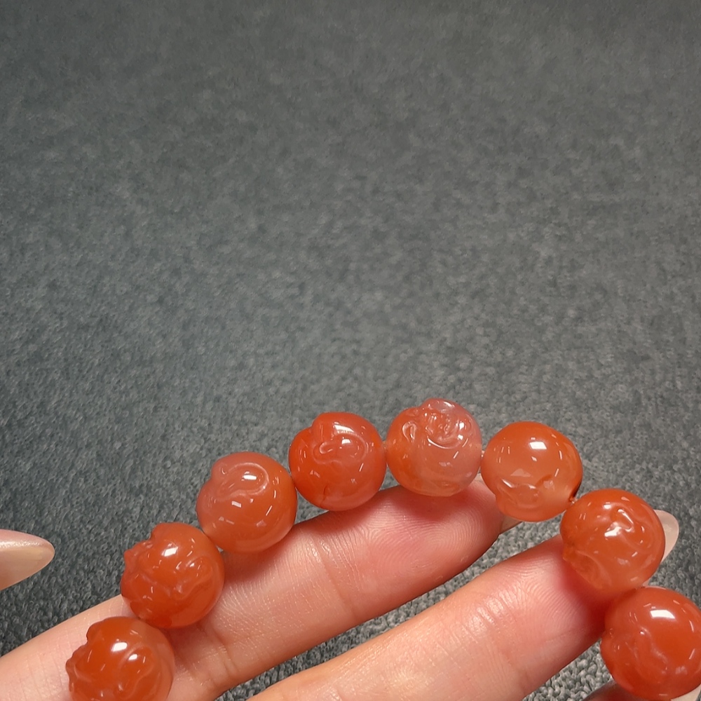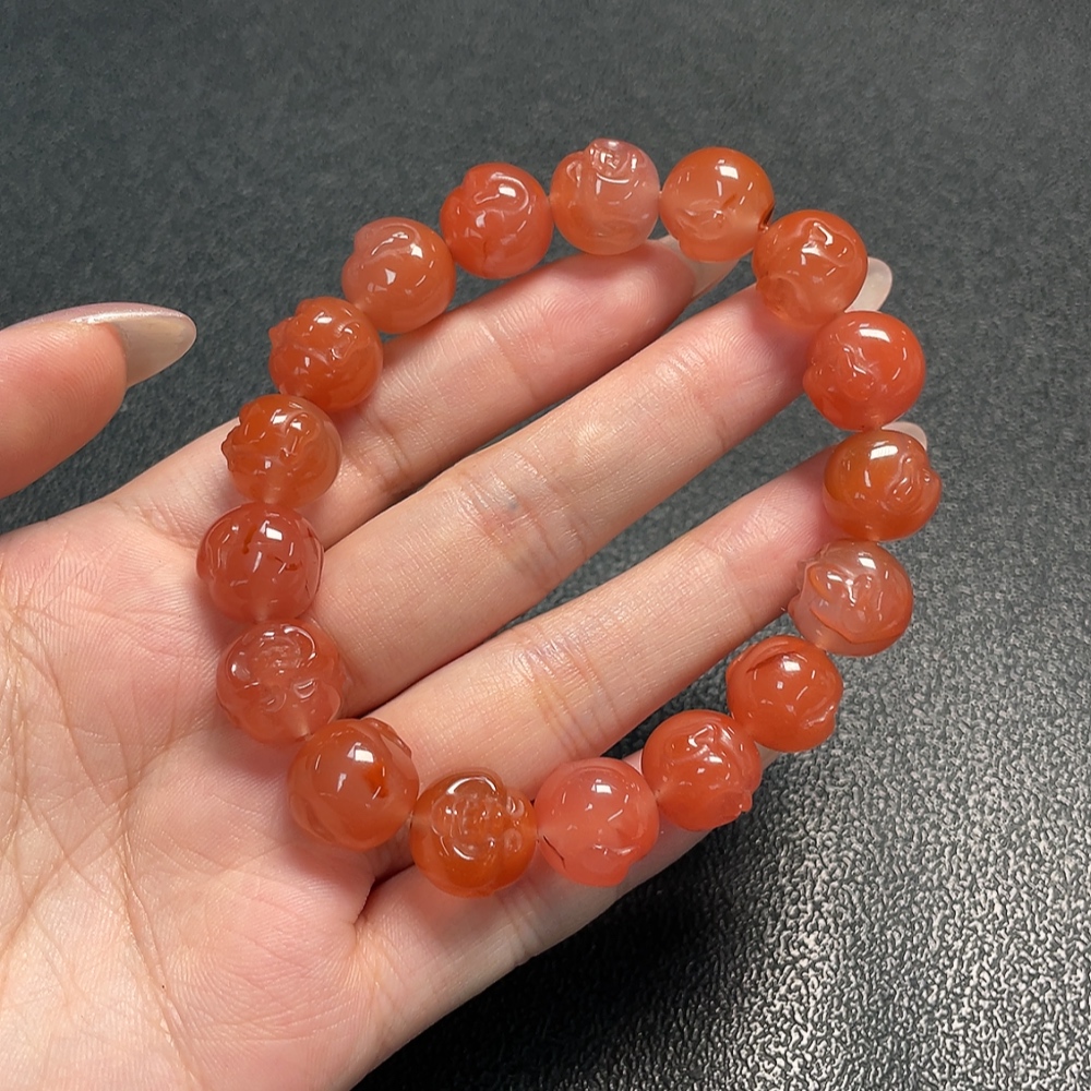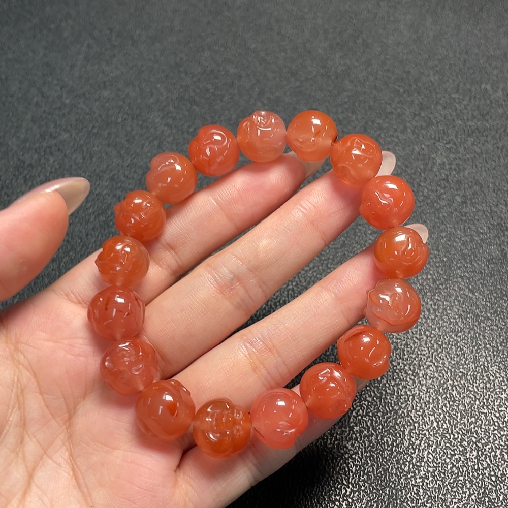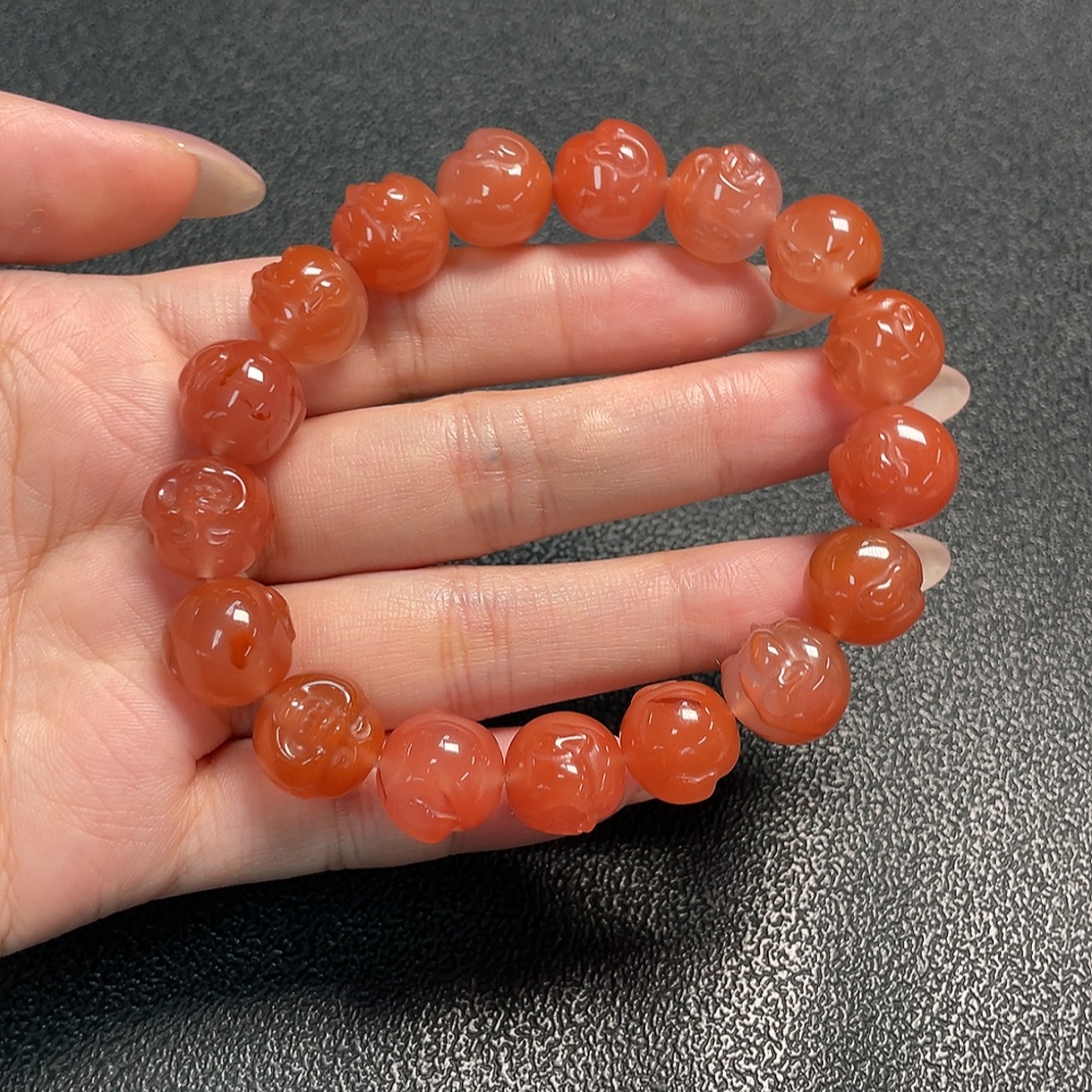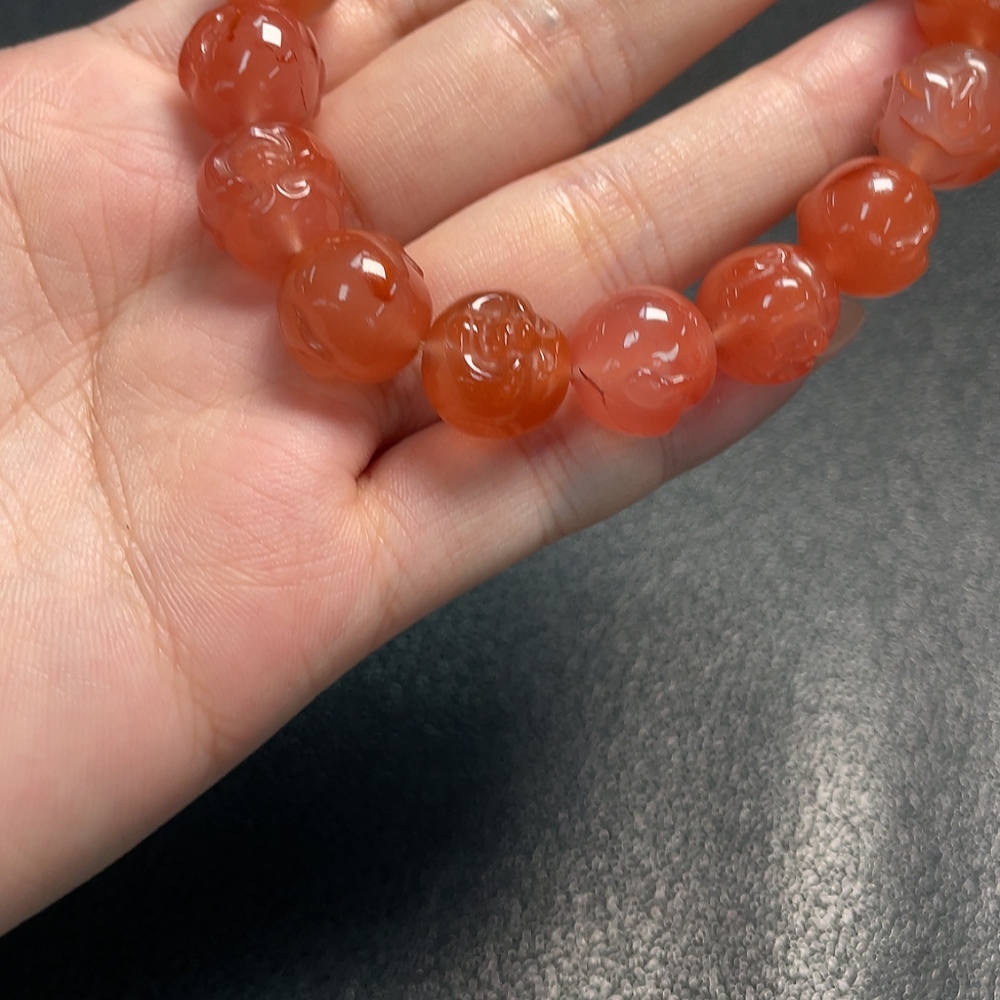 Red Agate Bracelet with Visible Organic Matter, Total Weight Approximately 45.65g, Size About 12.8mm