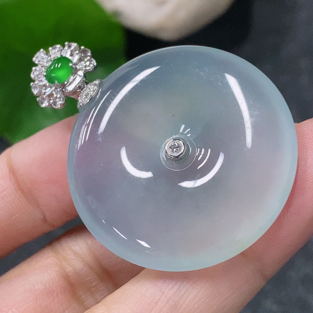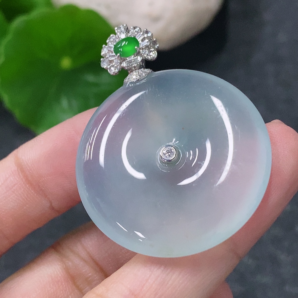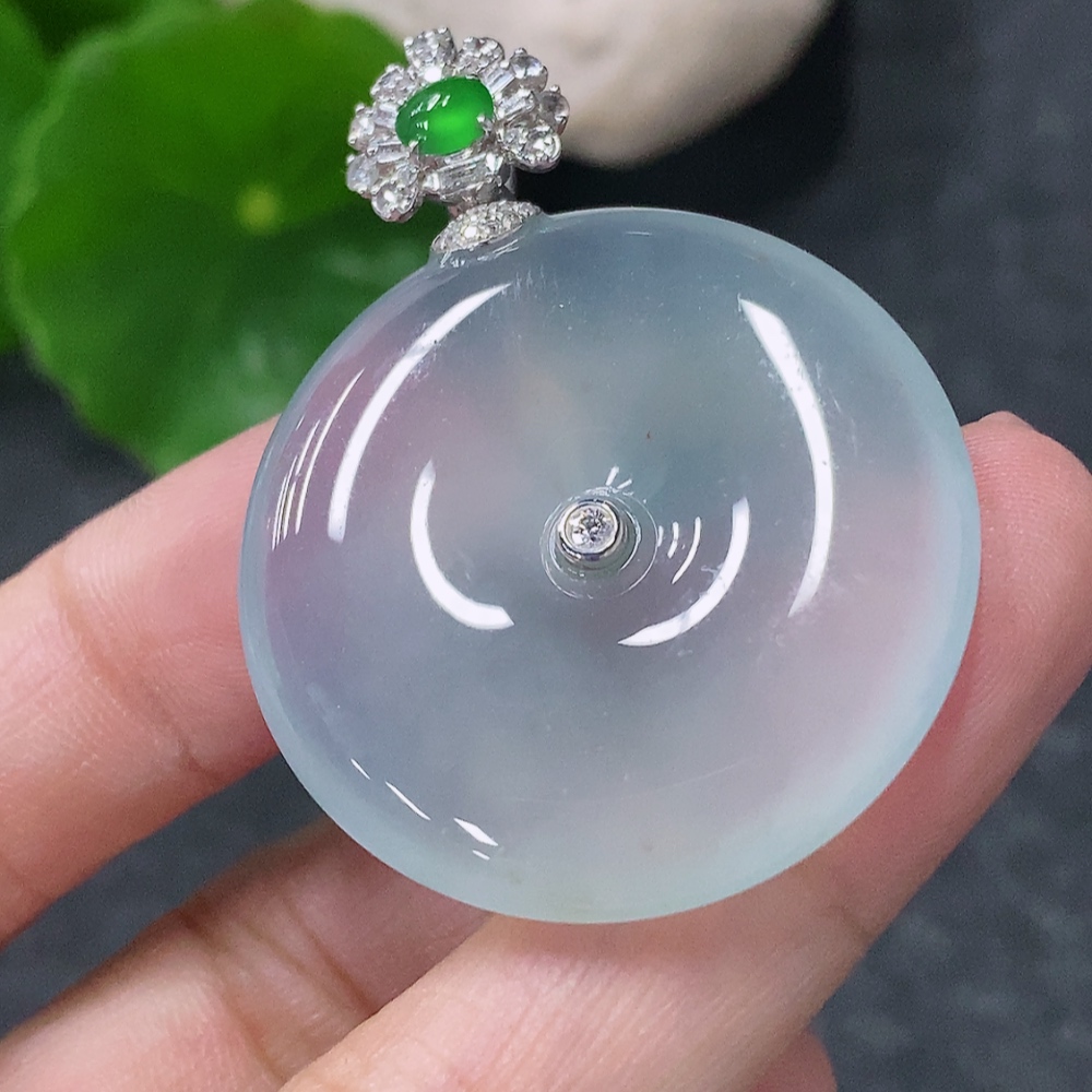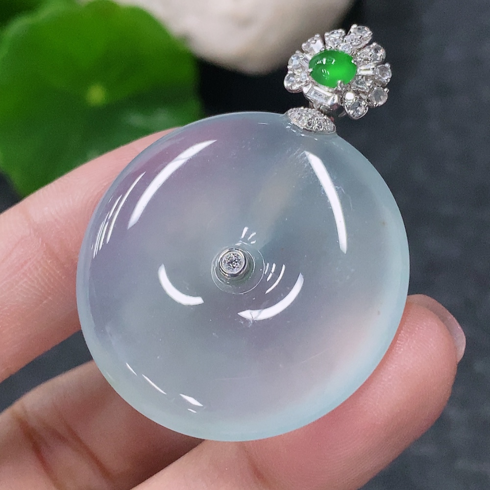 Jadeite Pendant Peace Buckle 18k with Diamond Accents Total Weight Approximately 12.86g