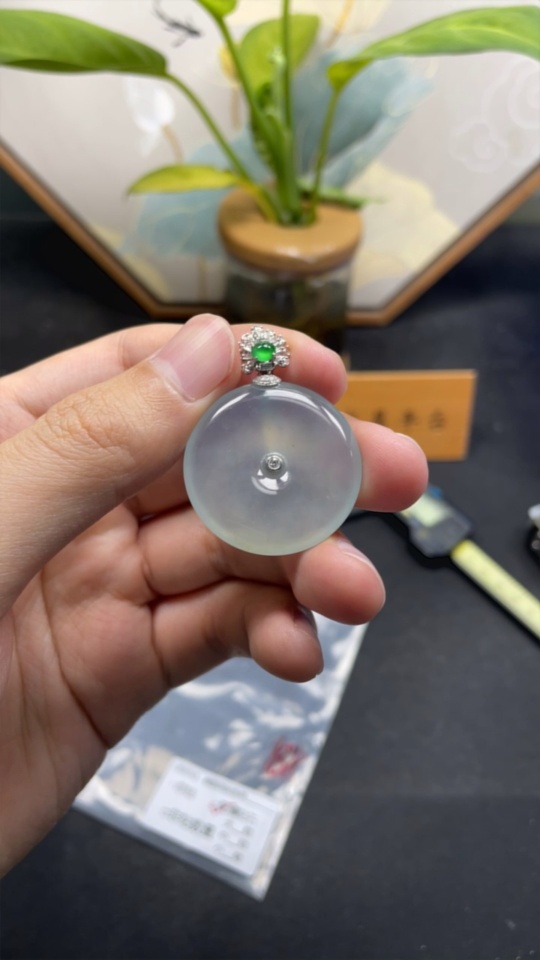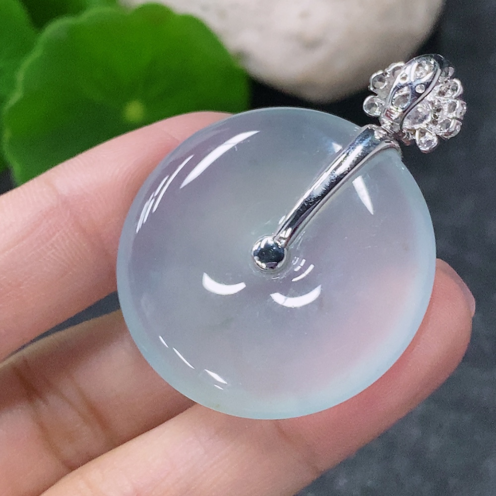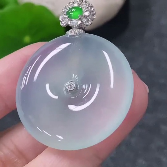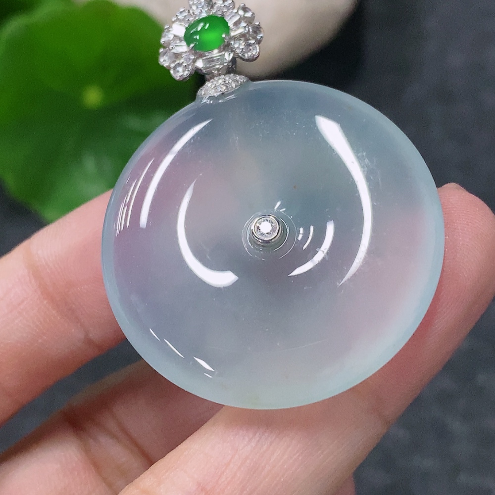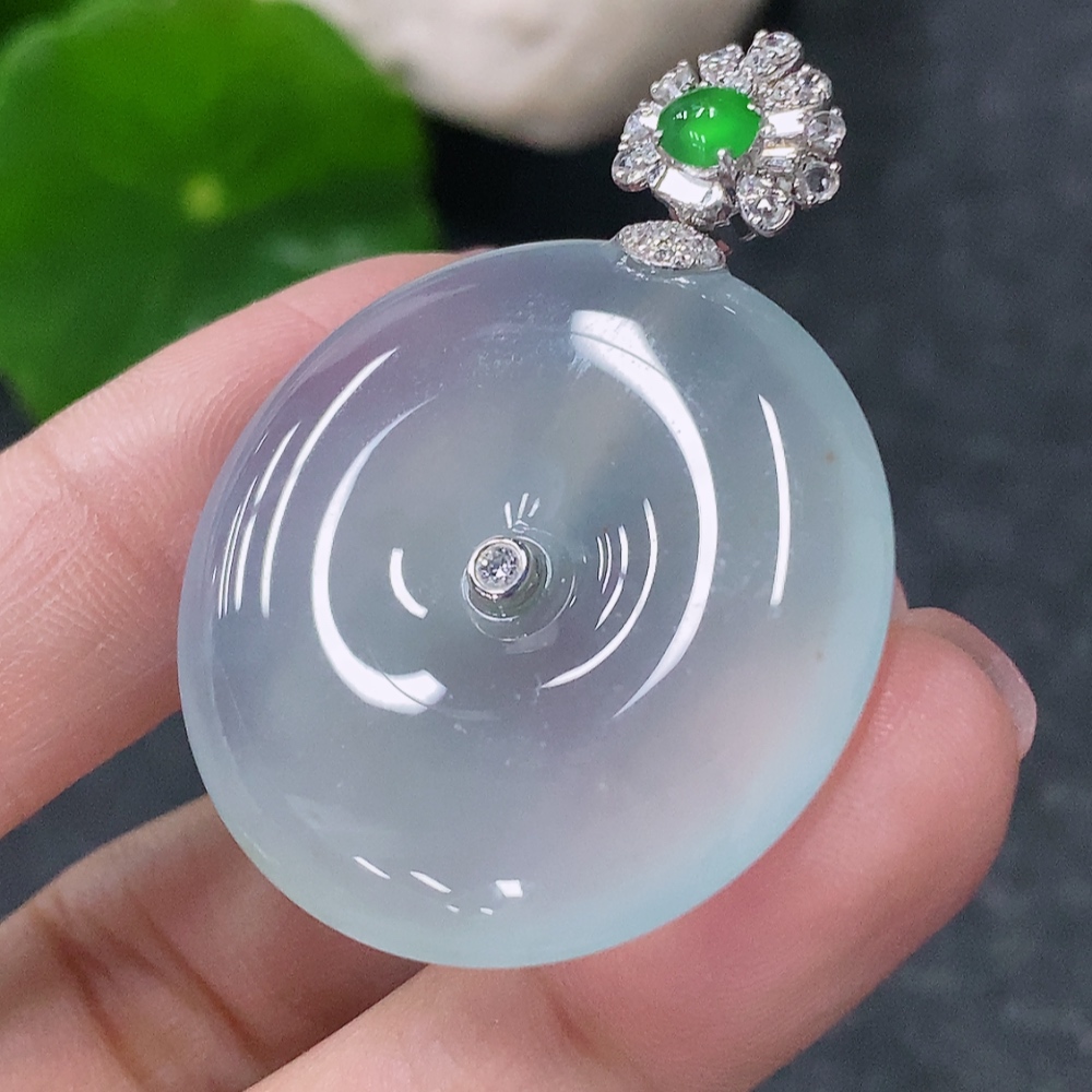 Jadeite Pendant Peace Buckle 18k with Diamond Accents Total Weight Approximately 12.86g