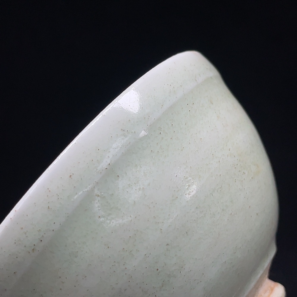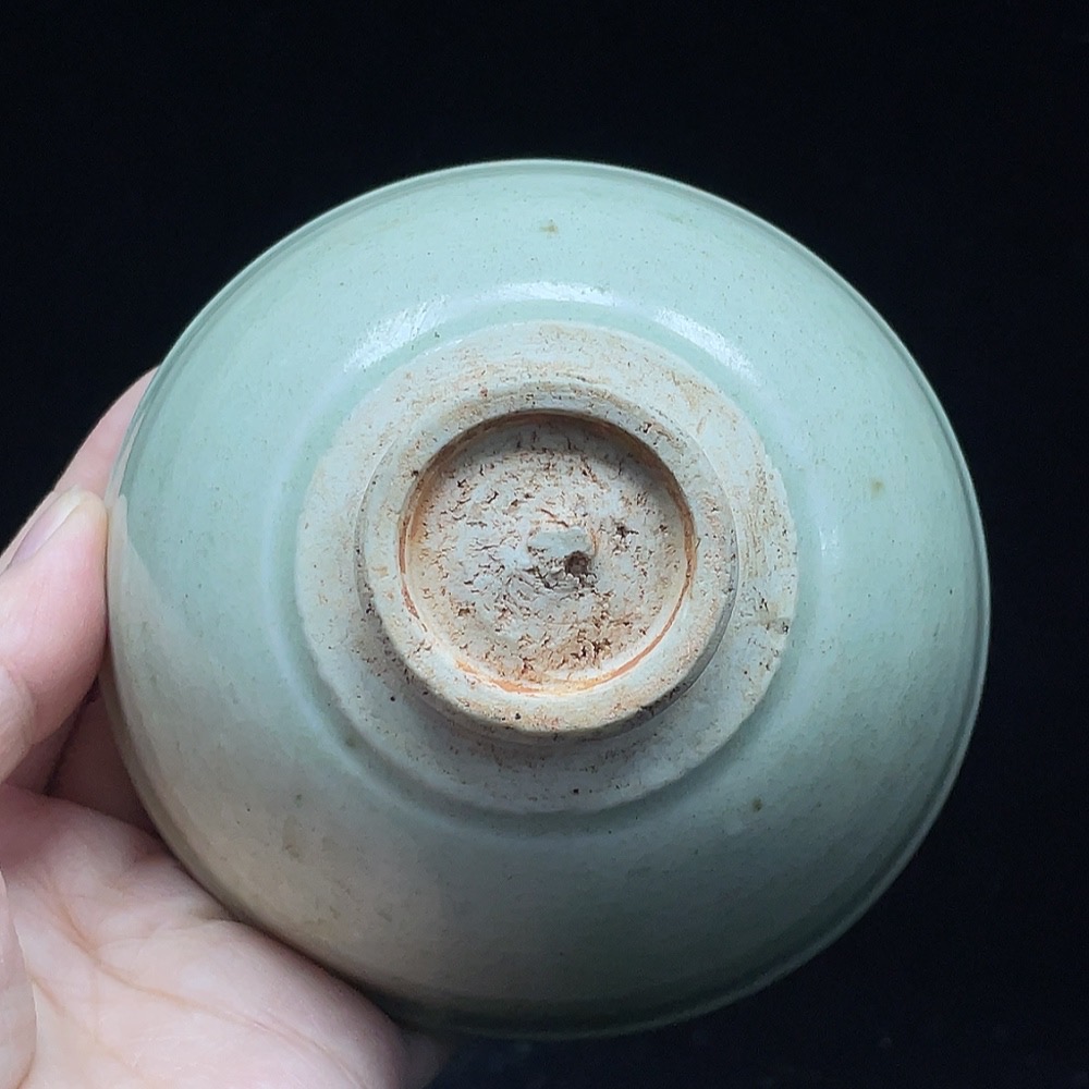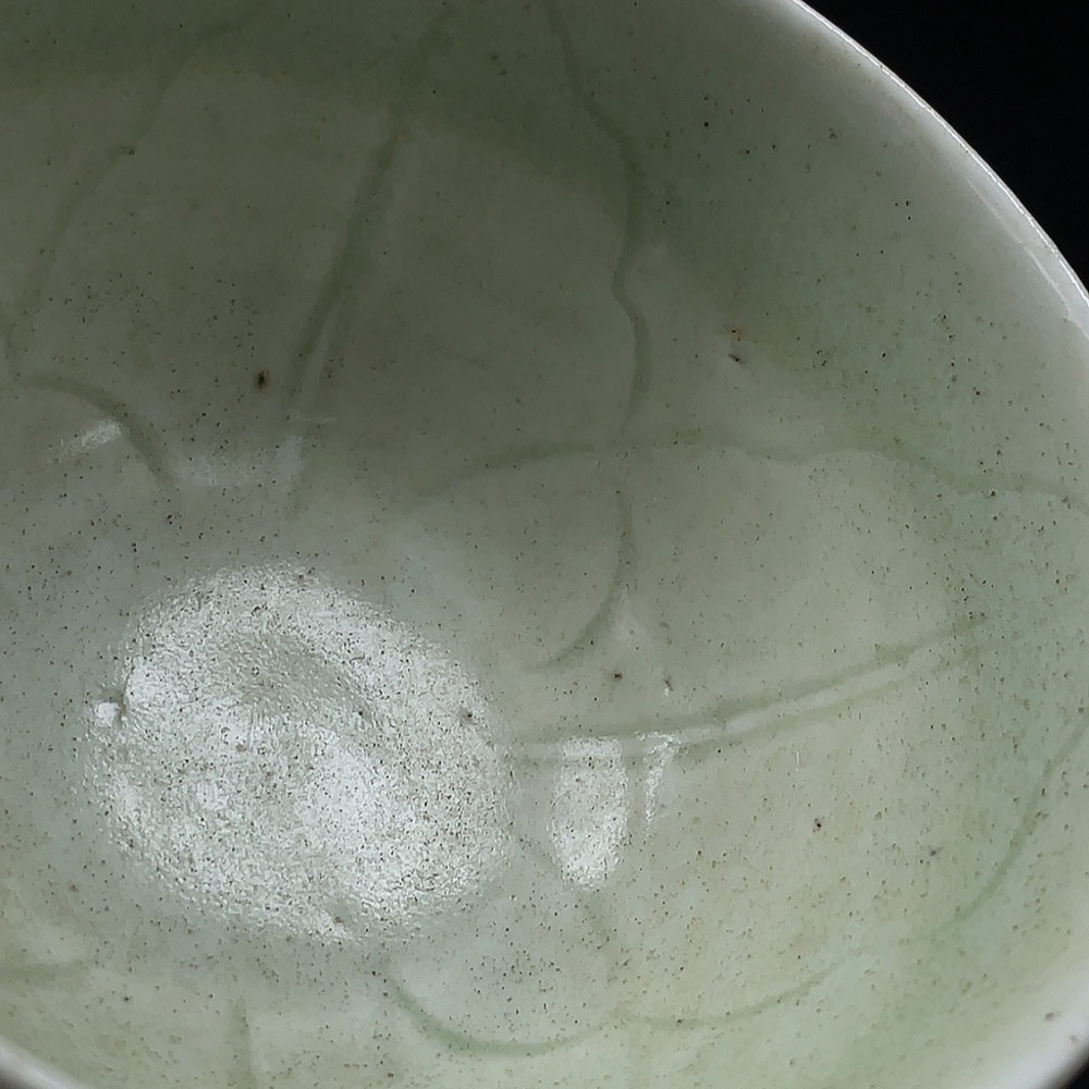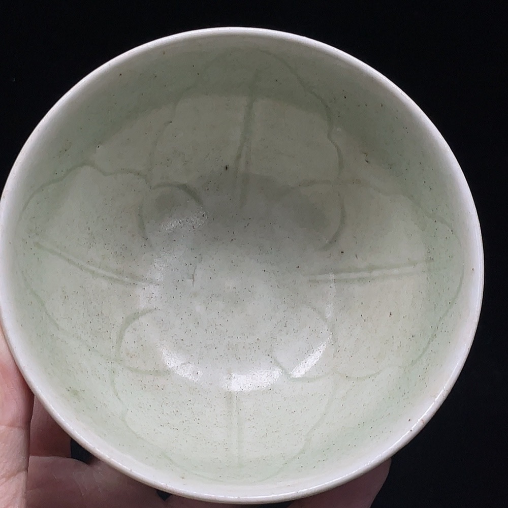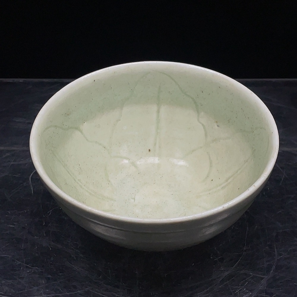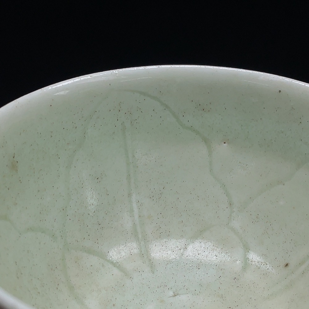 Porcelain, intact, celadon carved floral bowl, length 93 width 93 height 47