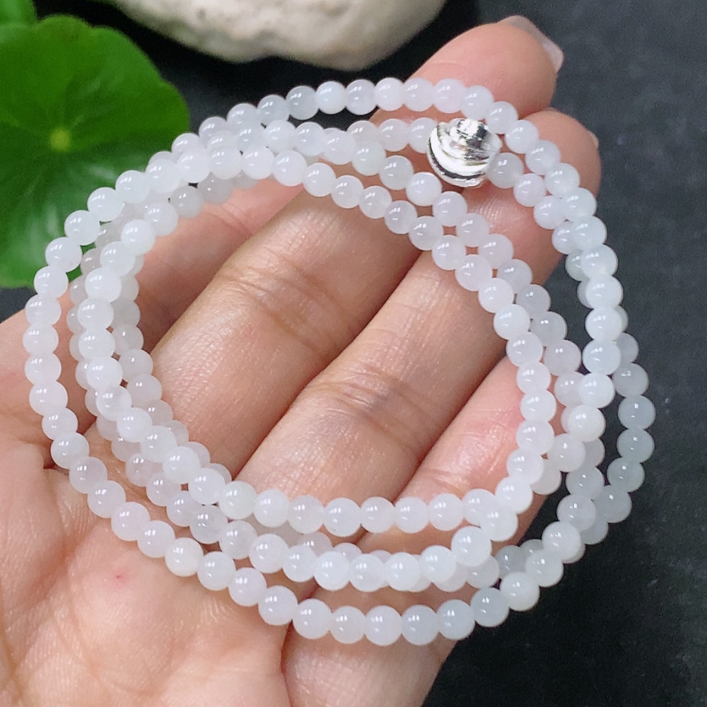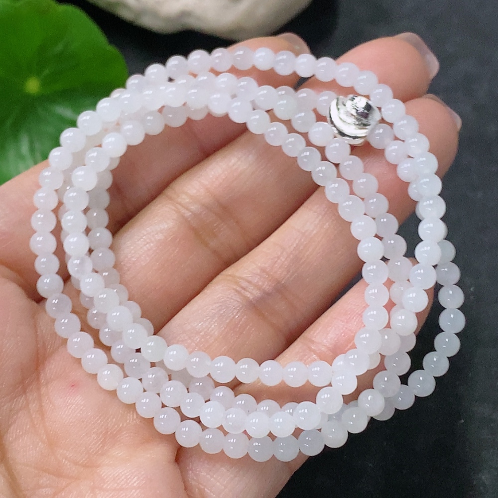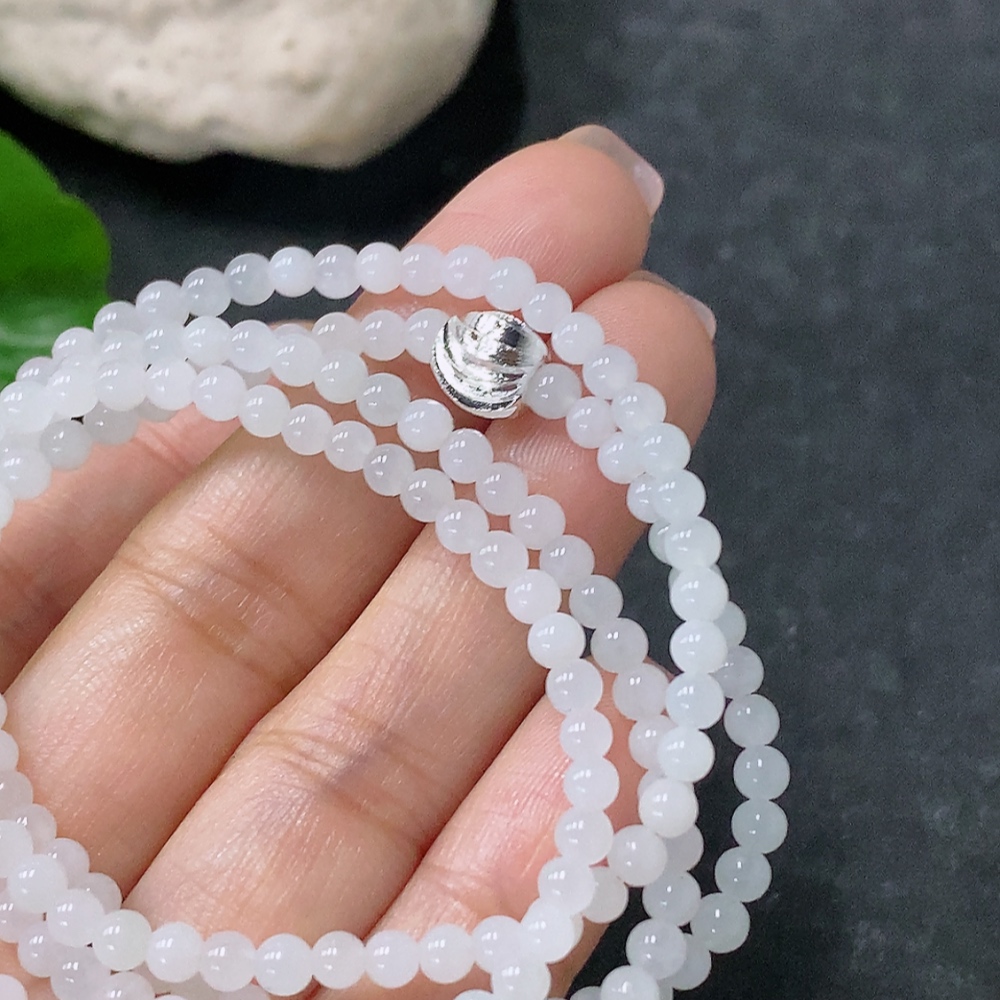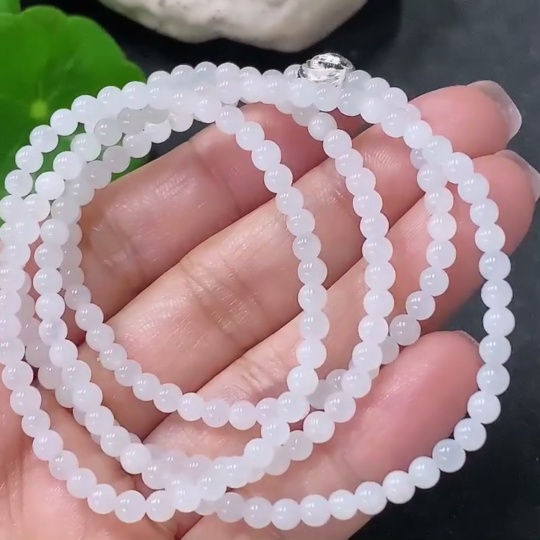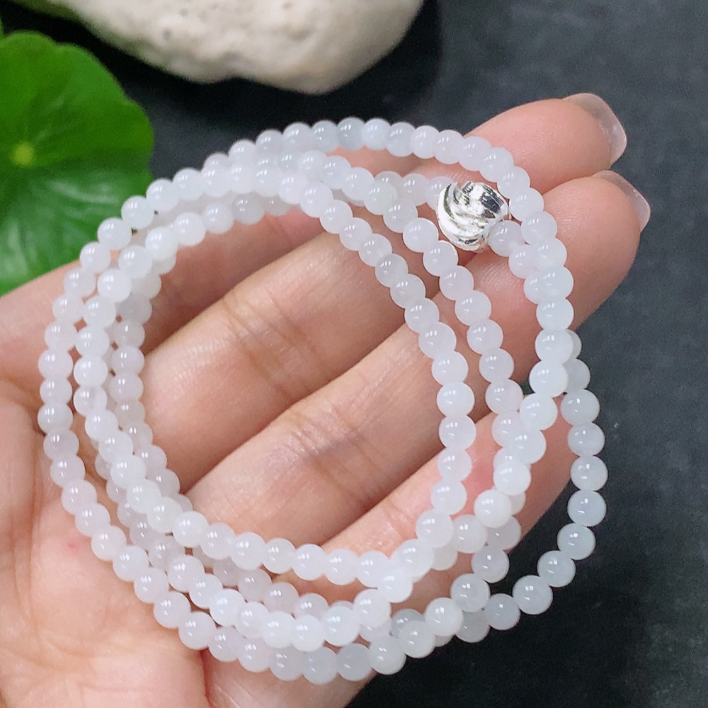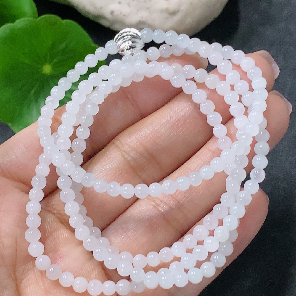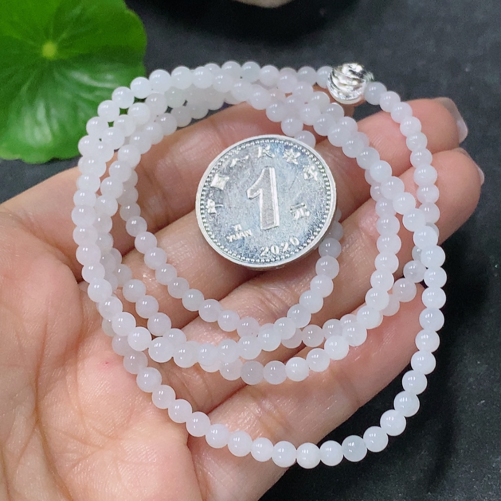 Jadeite Bead Necklace Approx. 3.5mm Non-Gold Total Weight Approx. 14.26g
