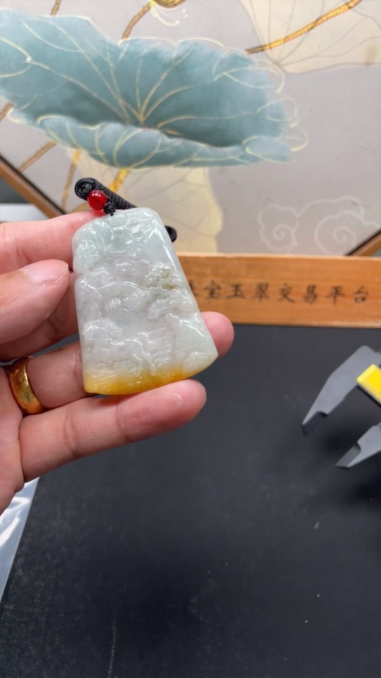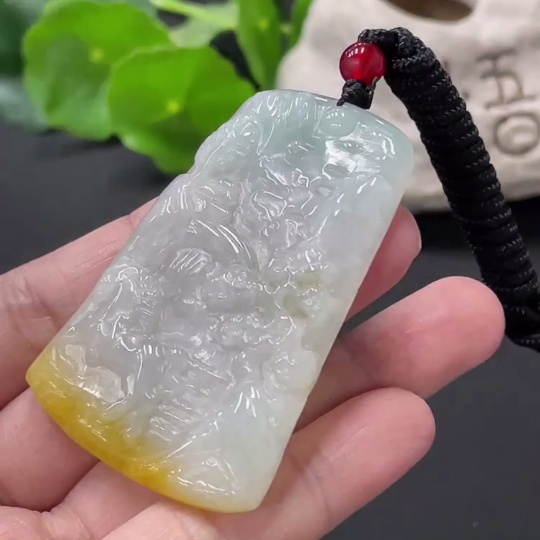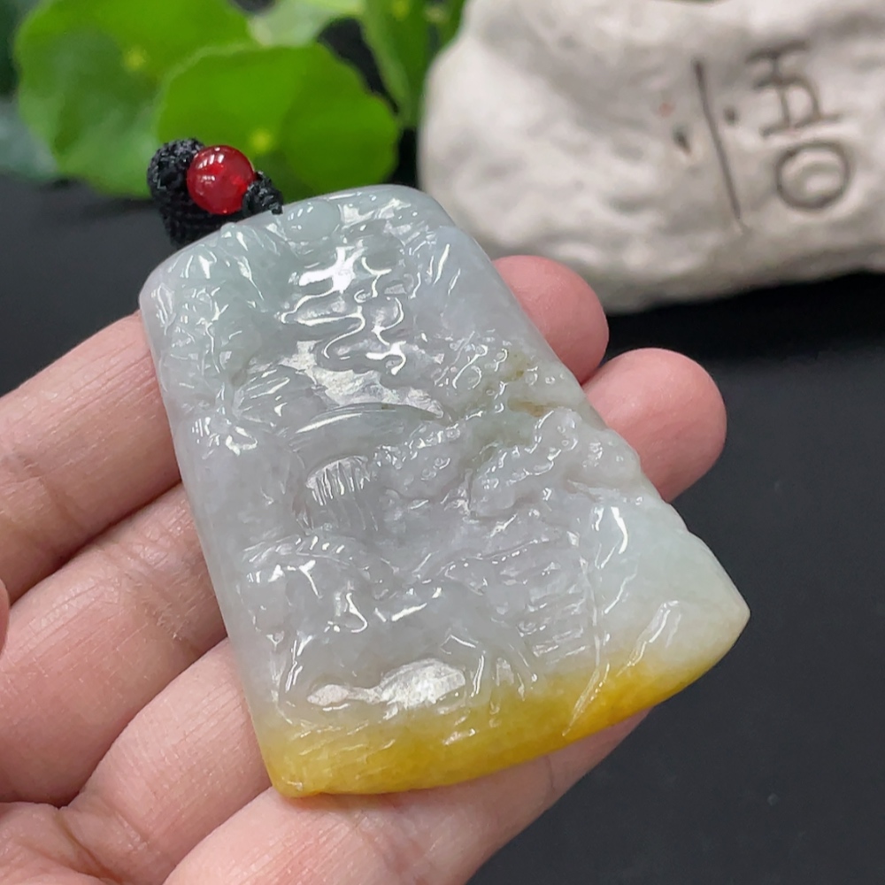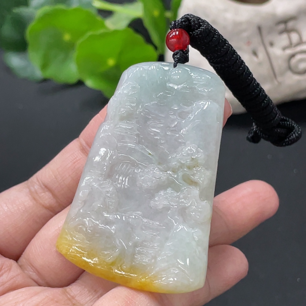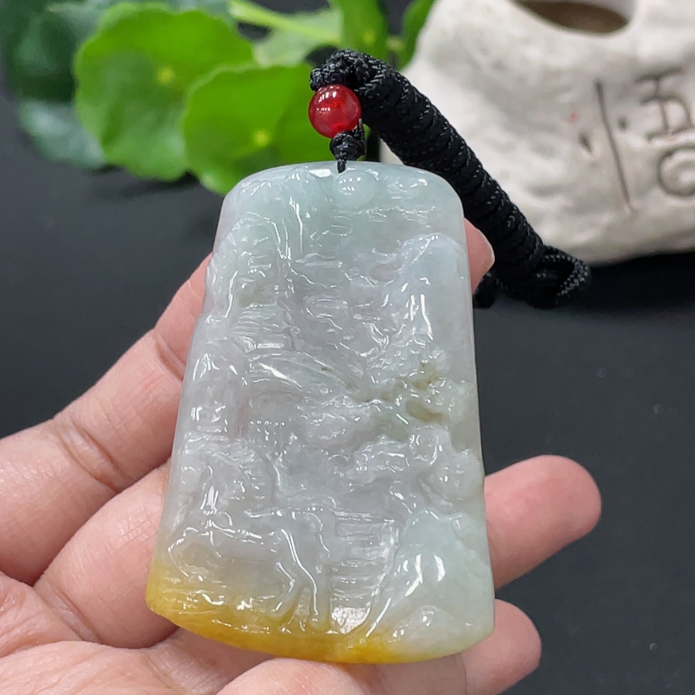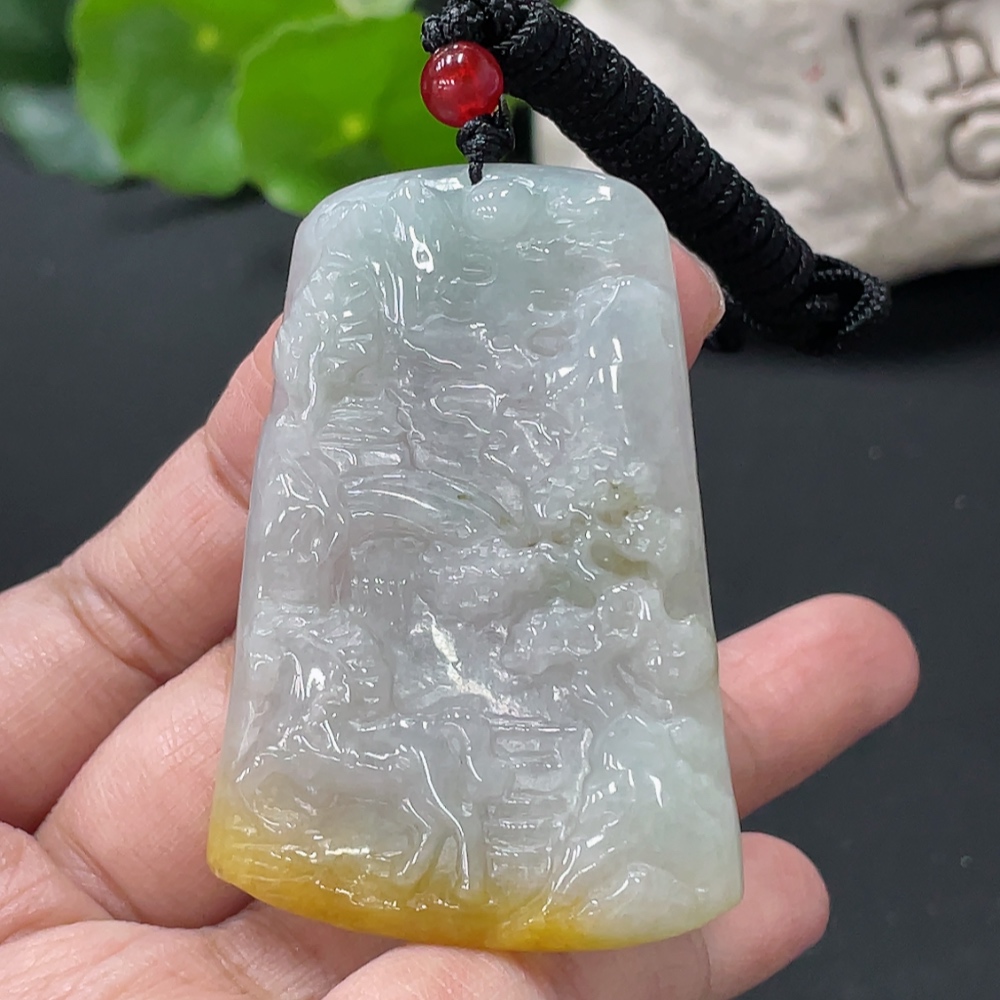 Jadeite Landscape Pendant, Total Weight Approximately 23.5g, Beads Not Grade A
