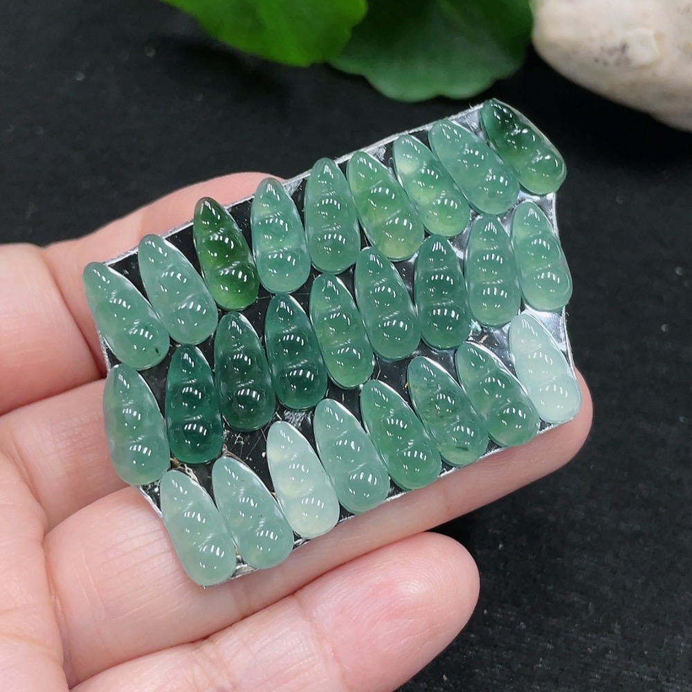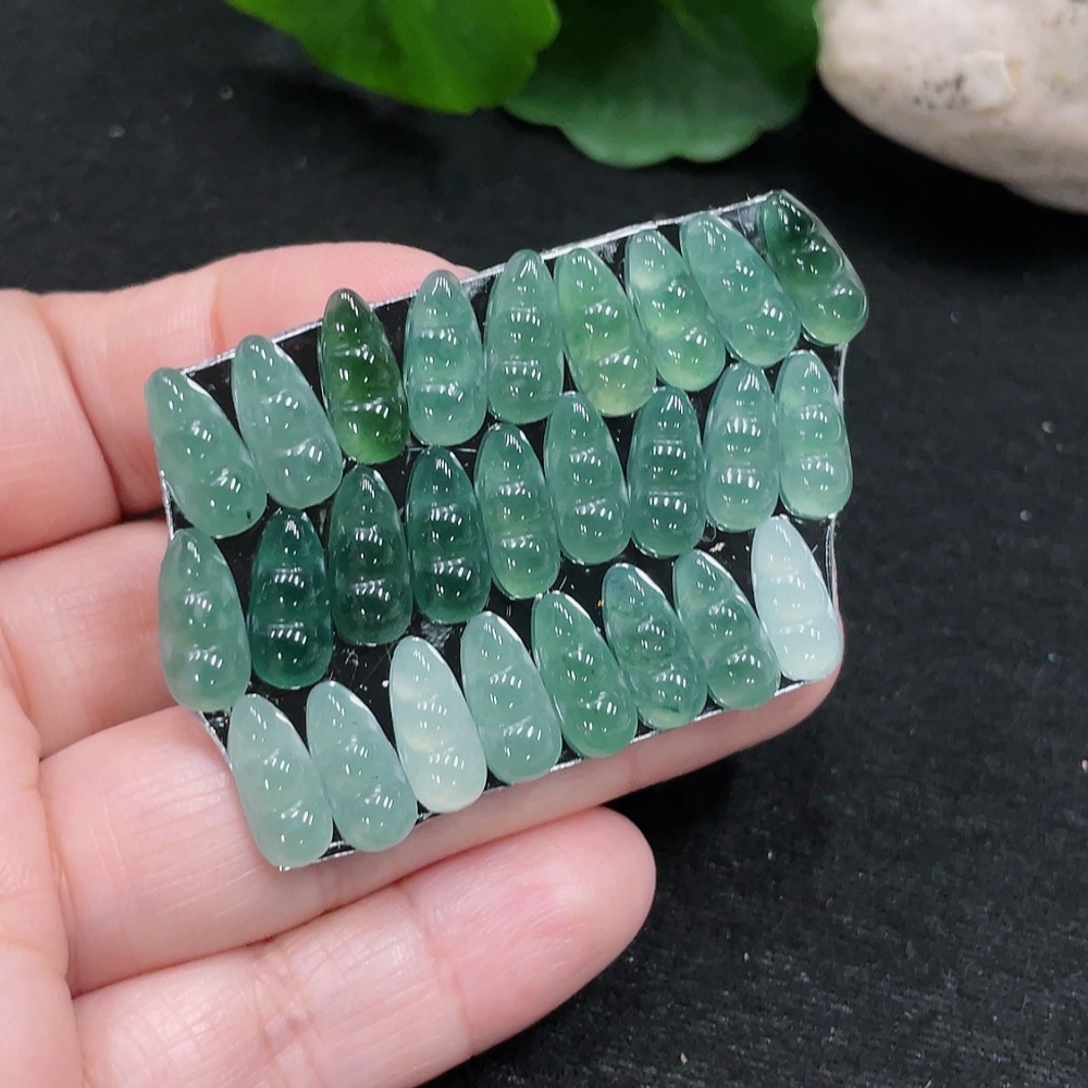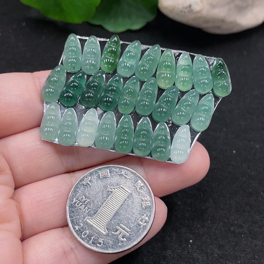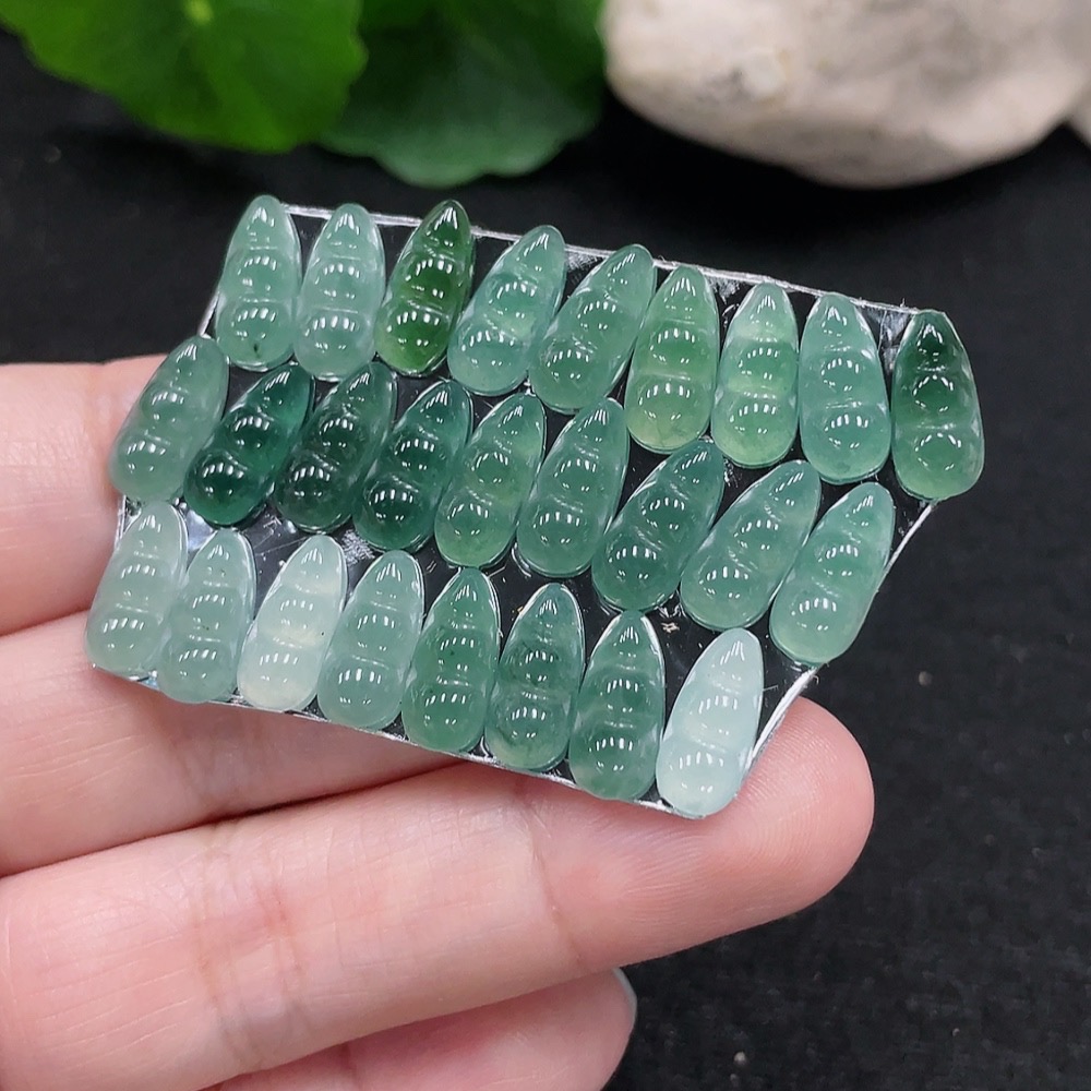 Jadeite Lucky Bean Inlaid Pieces Sell as a Lot