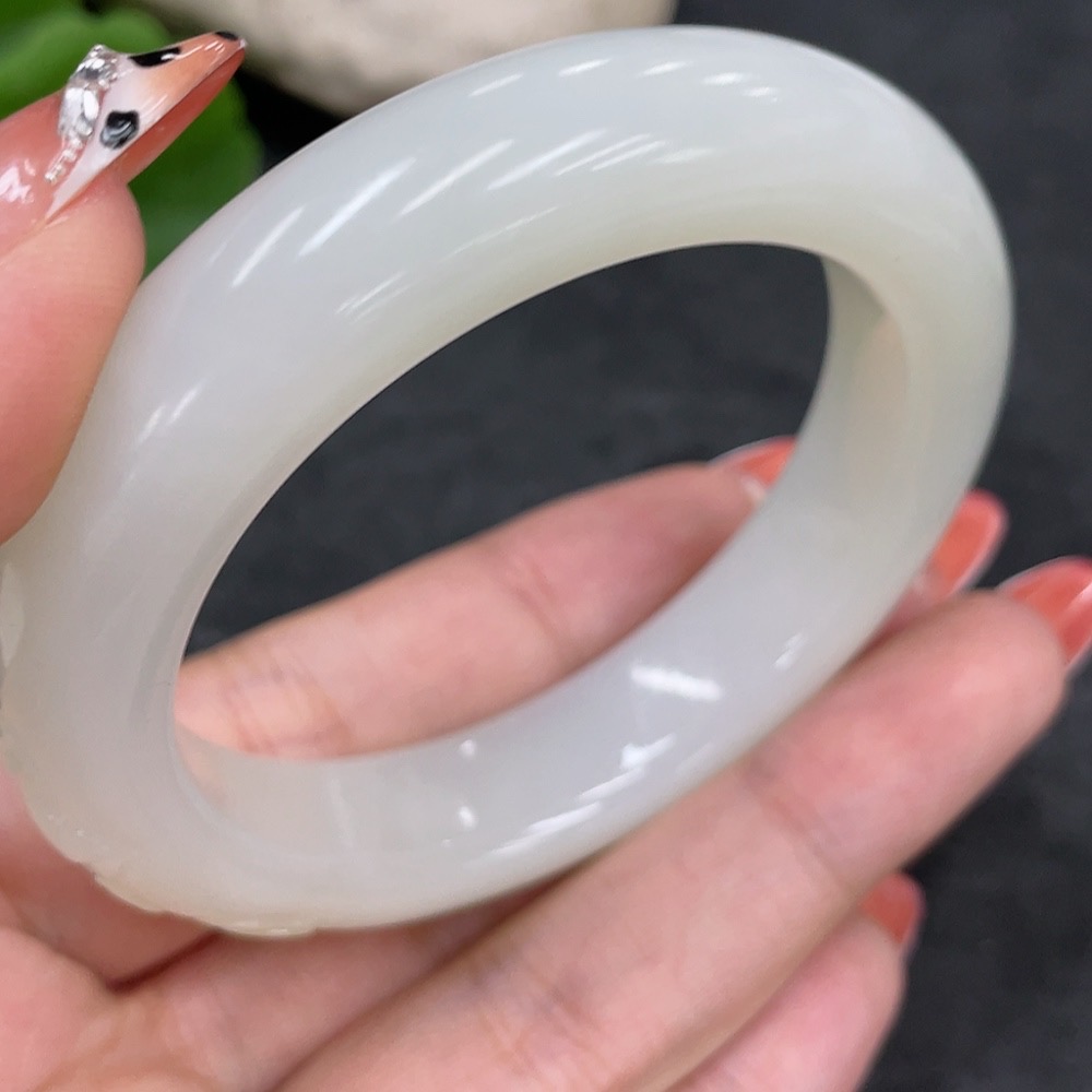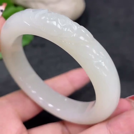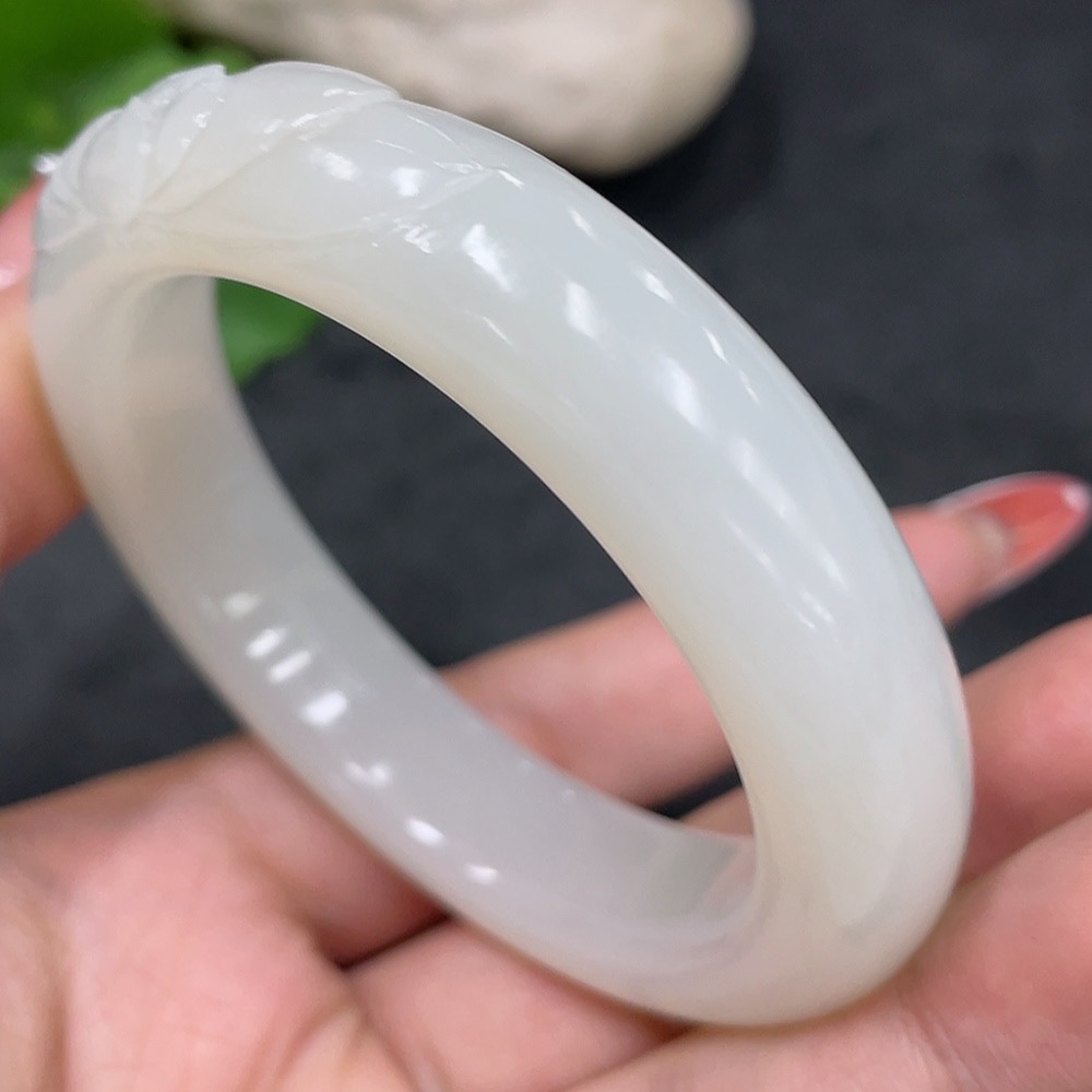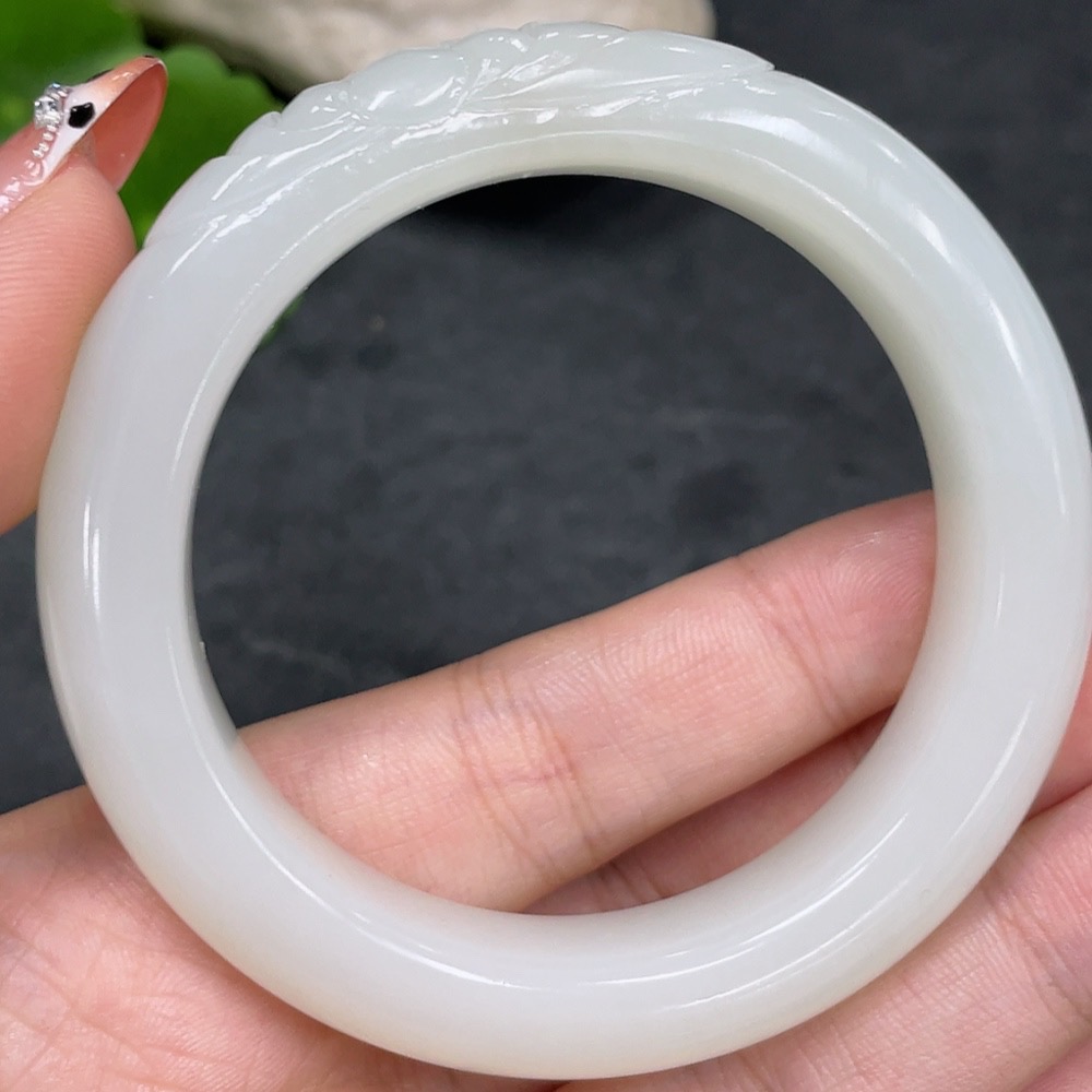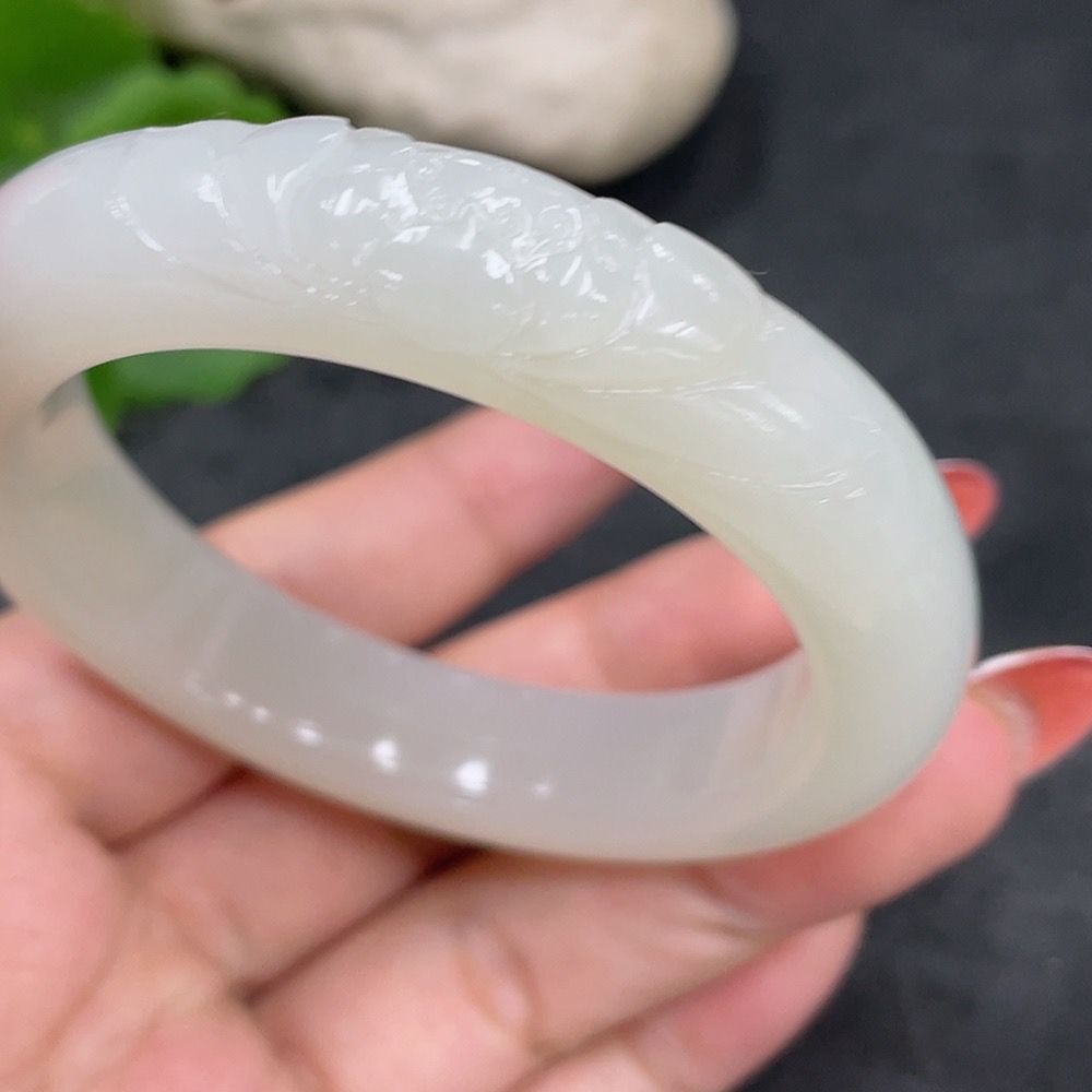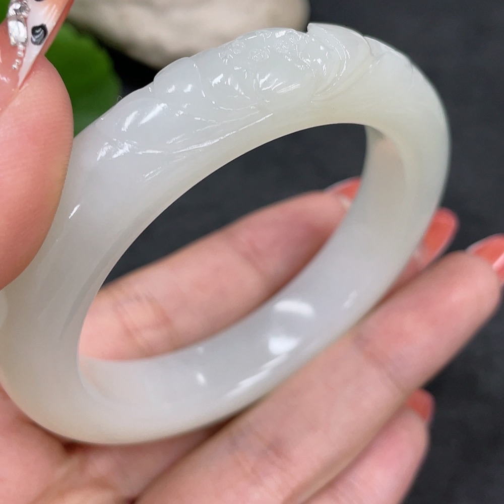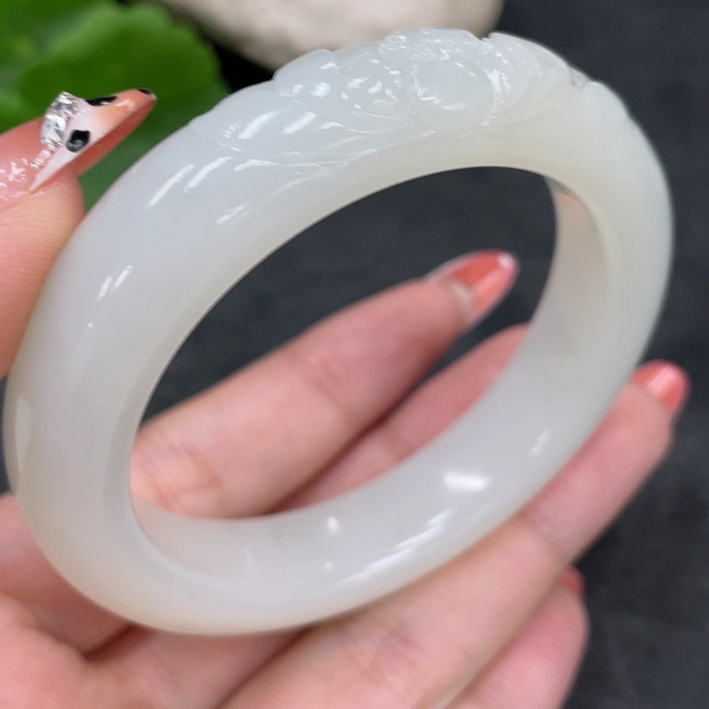 Hetian Jade Carved Flower Bracelet Size 51.3 Total Weight Approximately 54.8g