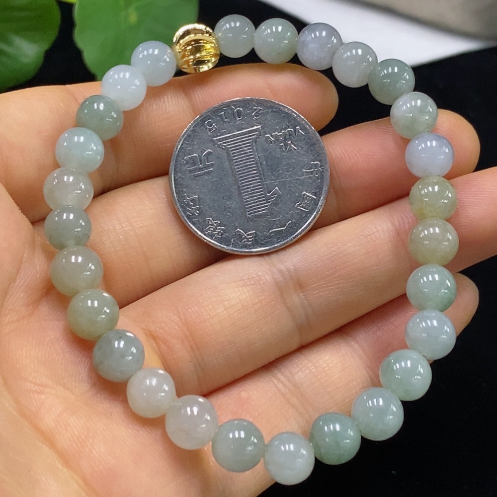 Jadeite Bracelet Approximately 6.8mm Non-Gold Total Weight About 17.69g