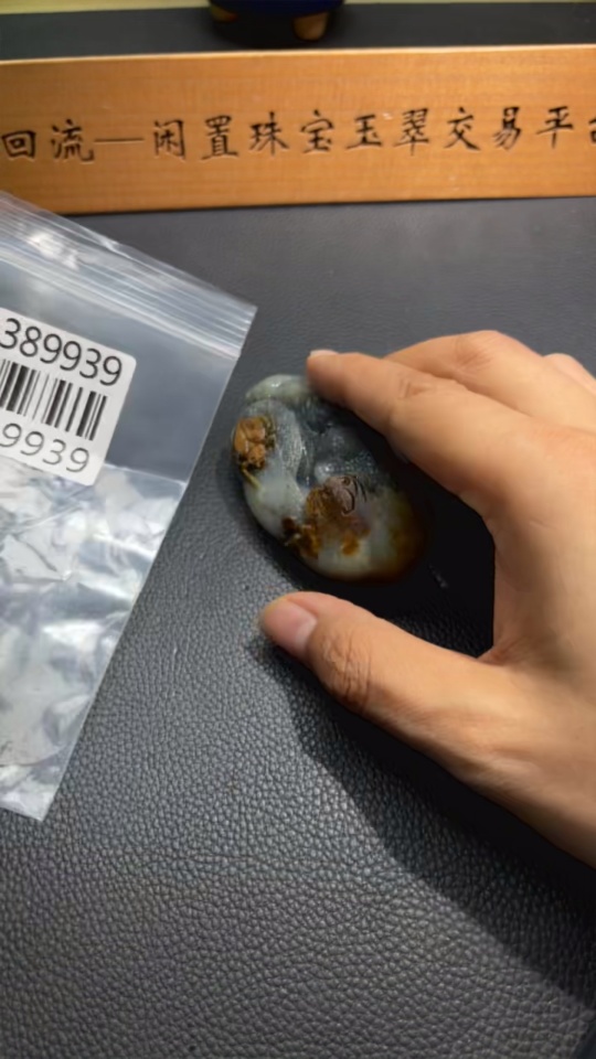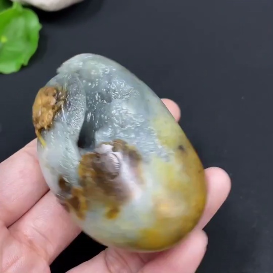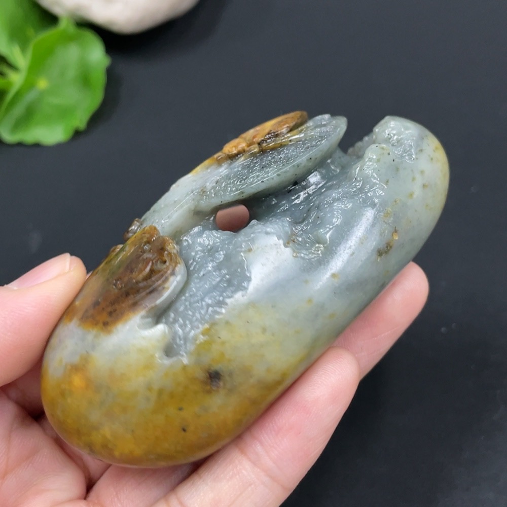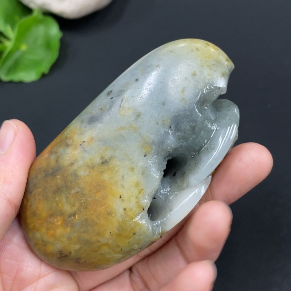 Hetian Jade Handheld Carving "Wealth Abounds" of undetermined skin color origin, containing other mineral components, total weight approximately 116.2g