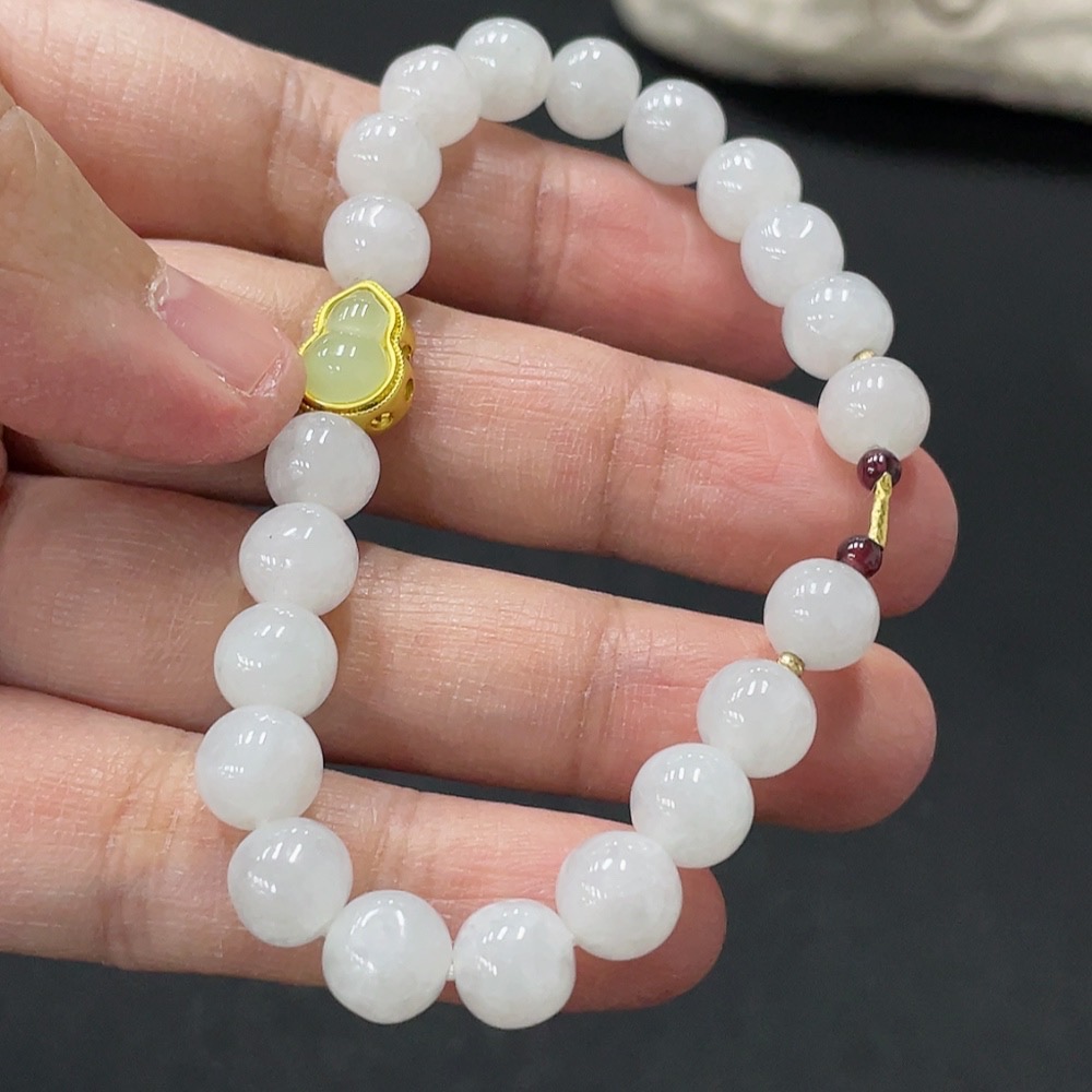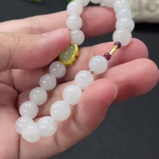 Jadeite bead necklace approx. 7.4mm (marked red parts non-gold, rest 18K gold) total weight approx. 16.2g (matching beads non-A)