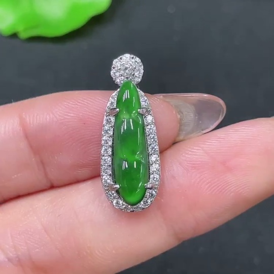 Jadeite Lucky Bean Pendant Non-Gold Inlay Total Weight Approx. 1.8g