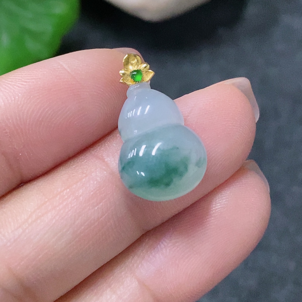 Jadeite Pendant Gourd 18k Total Weight Approx. 1.53g