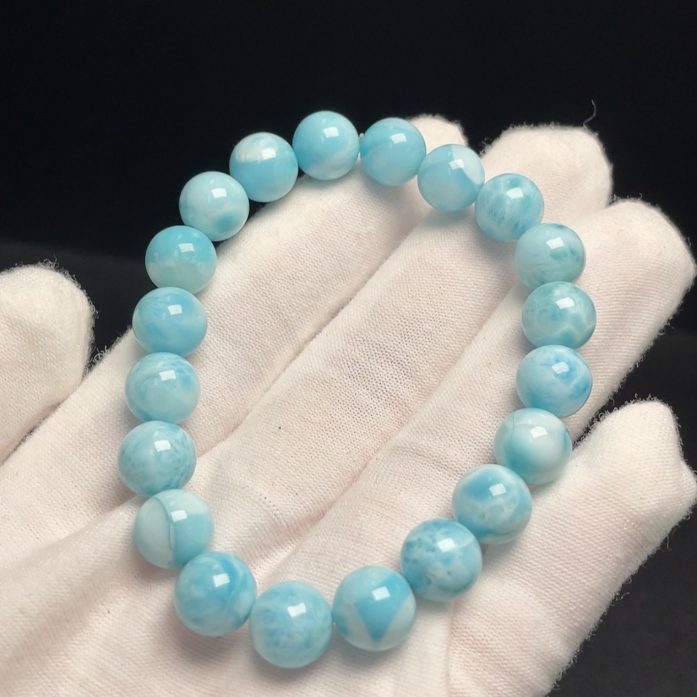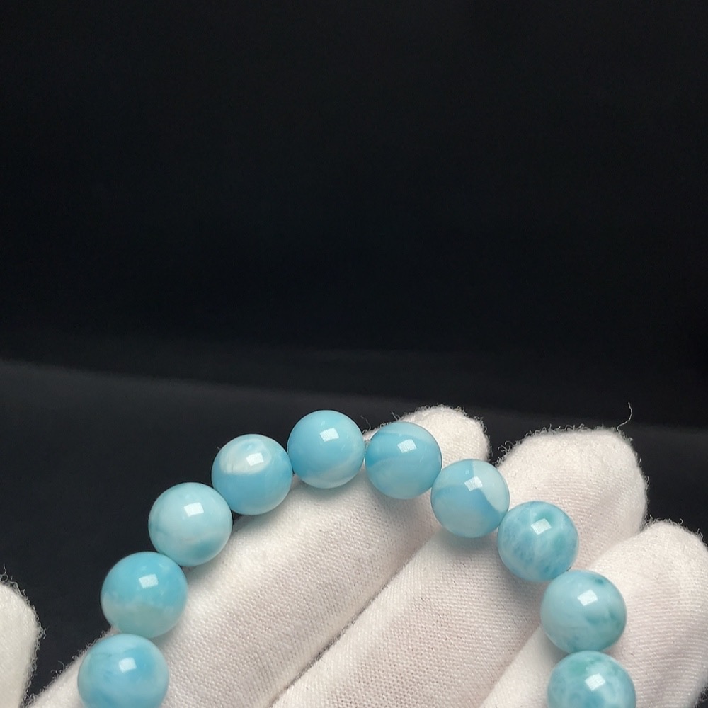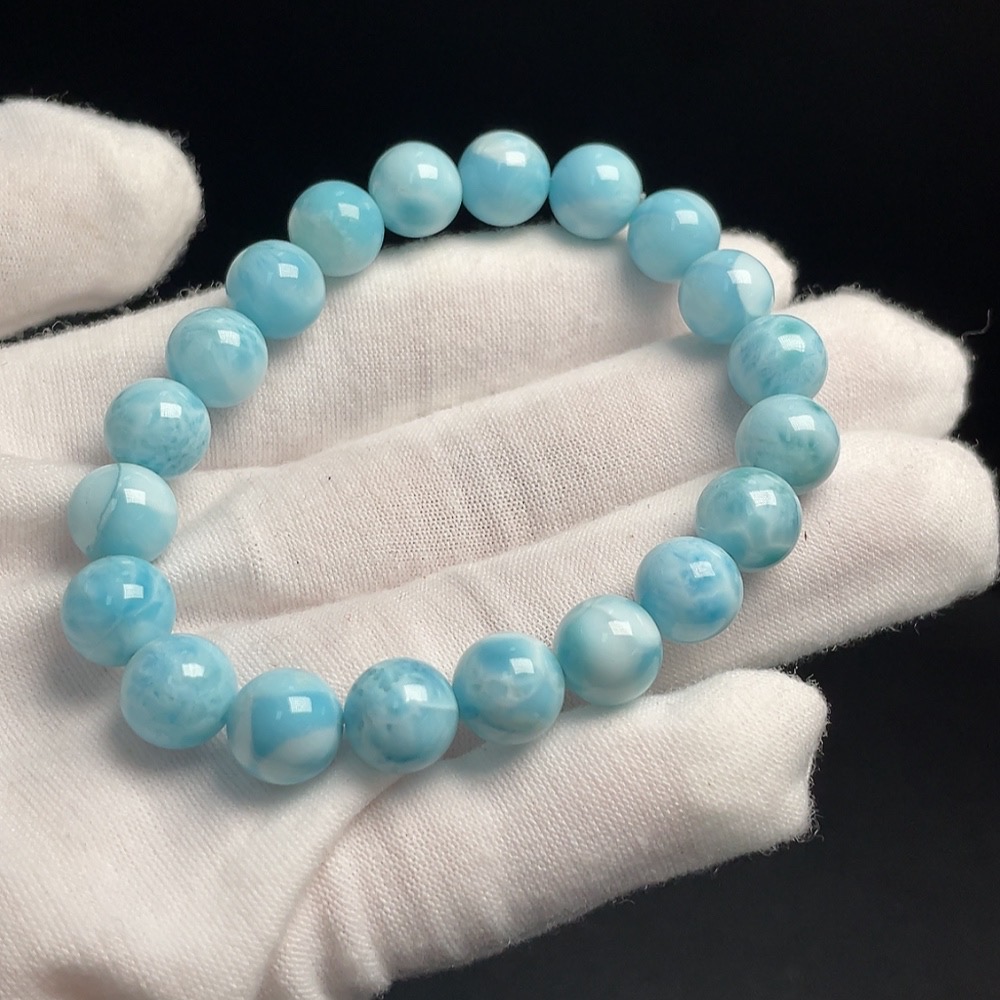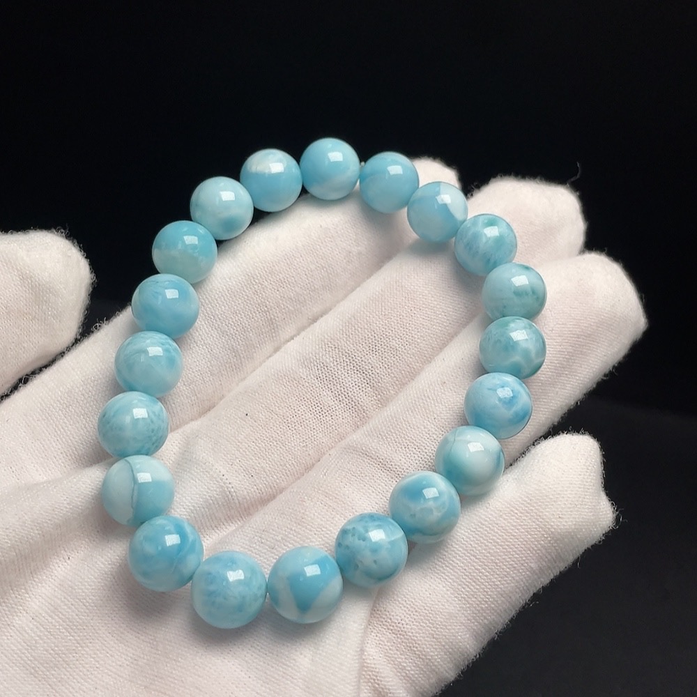 Larimar Bead Bracelet, Total Weight Approx. 21.79g, Bead Size 9mm