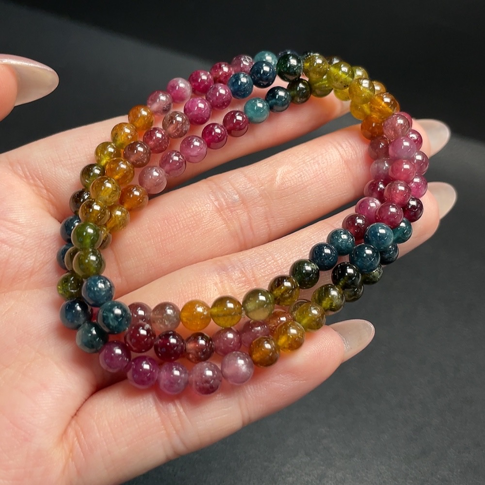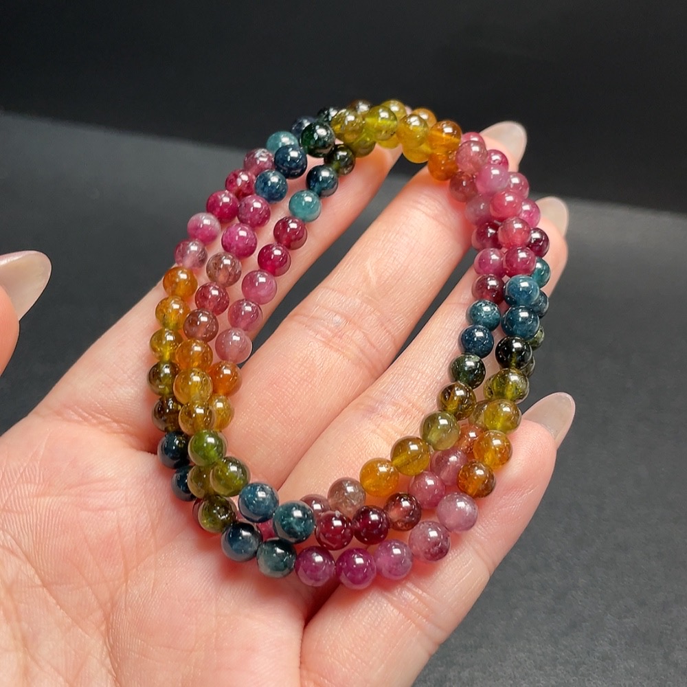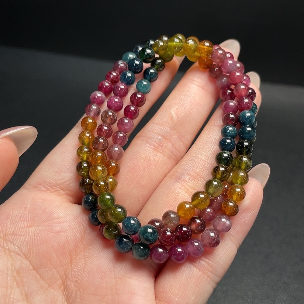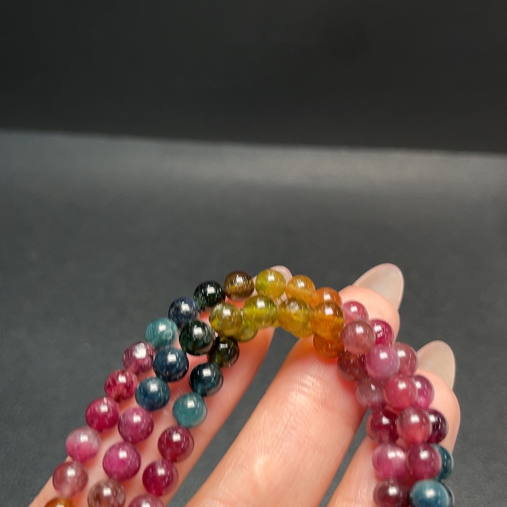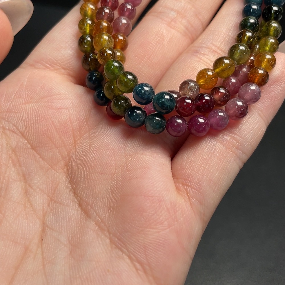 Tourmaline Bead Strand with Visible Organic Matter, Total Weight Approx. 23.03g, Size ~5.2mm