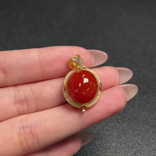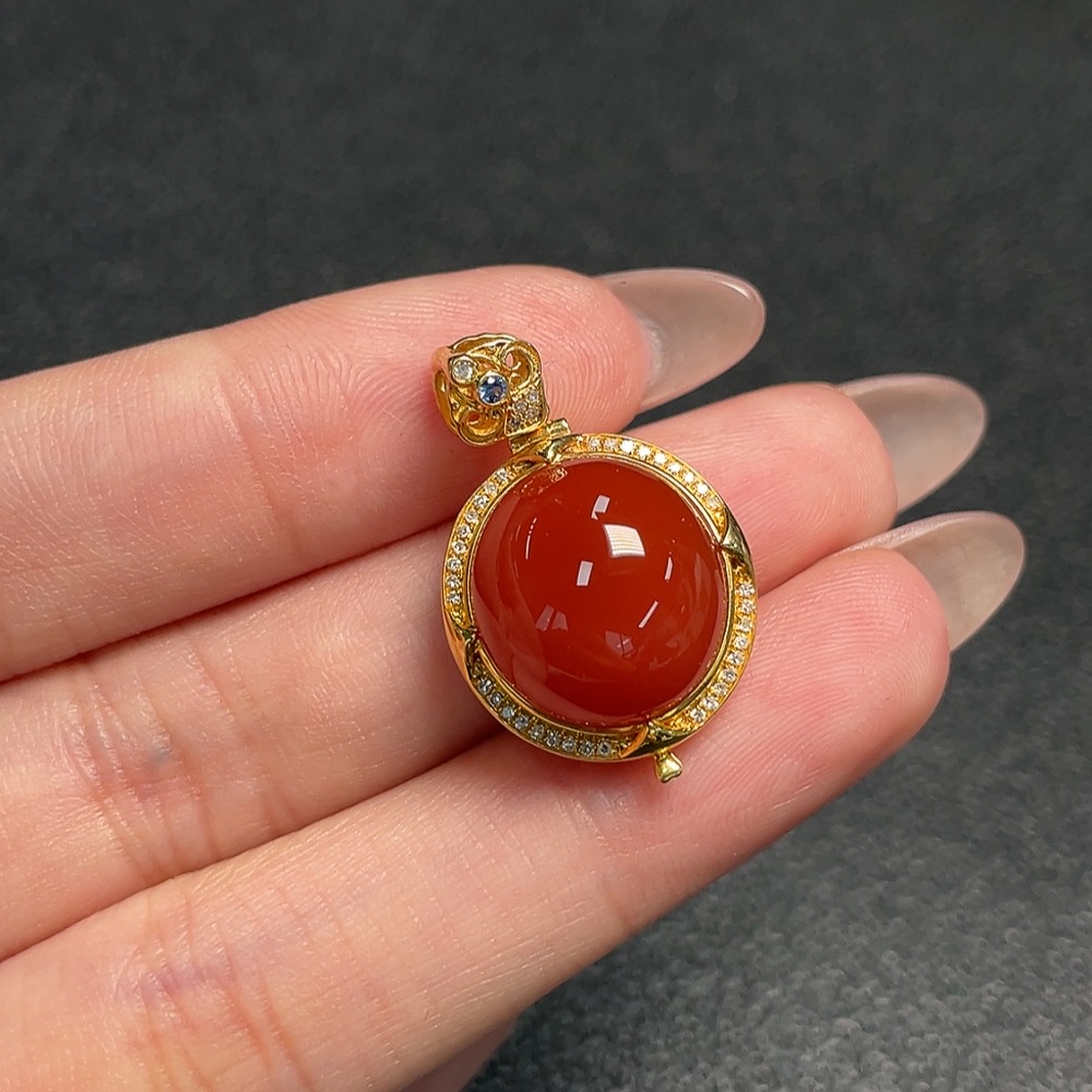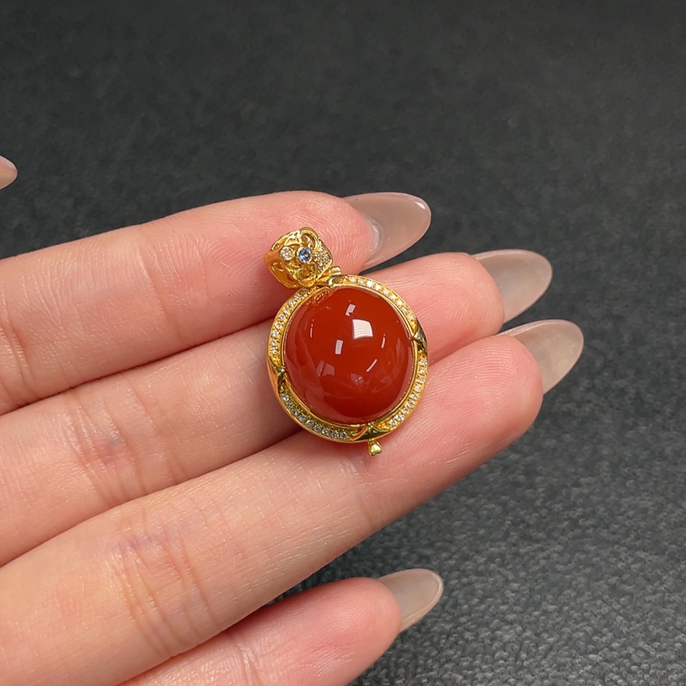 18K Red Agate Pendant with Diamond Accents, Colorless, Total Weight Approx. 6.03g, Size Approx. 14.3*13.2mm