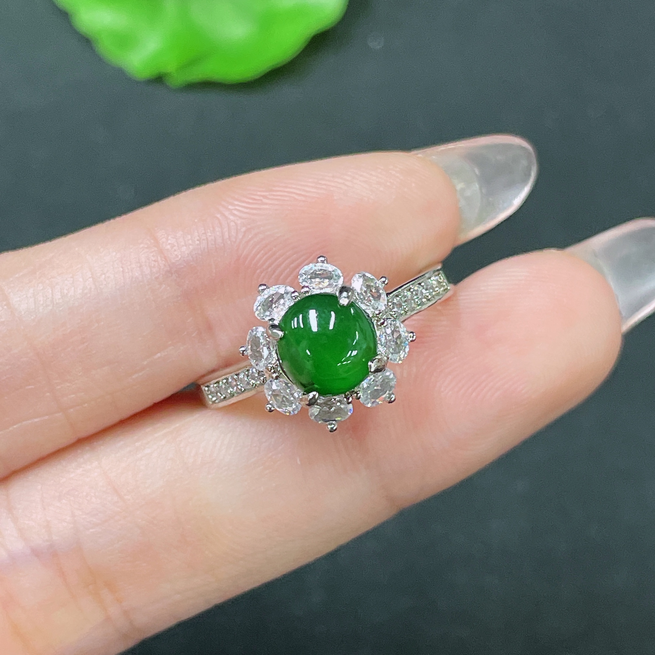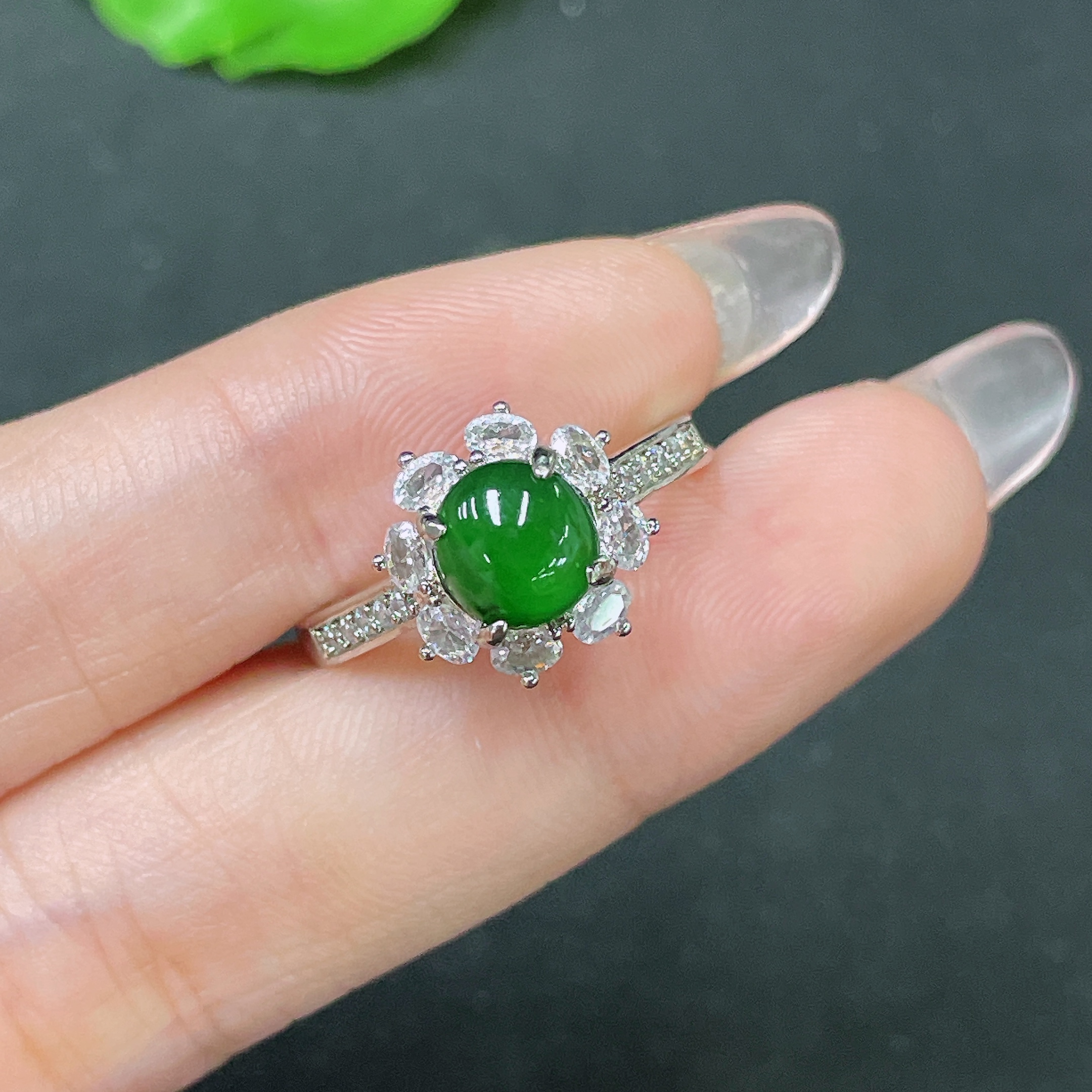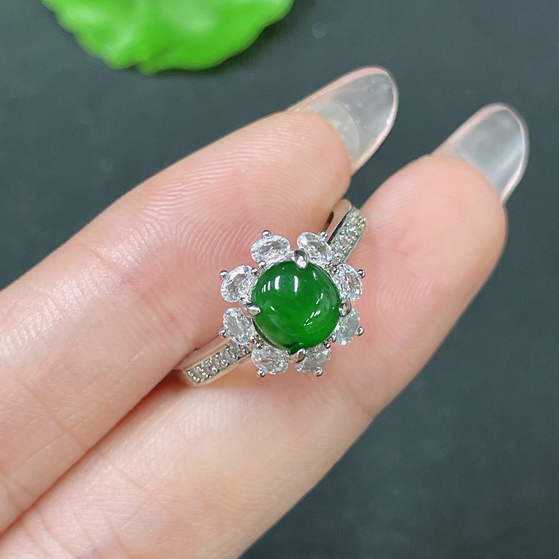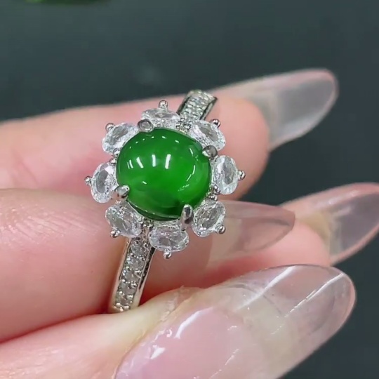 Jadeite Inlaid Piece Non-Gold Adjustable Total Weight Approx. 2.83g
