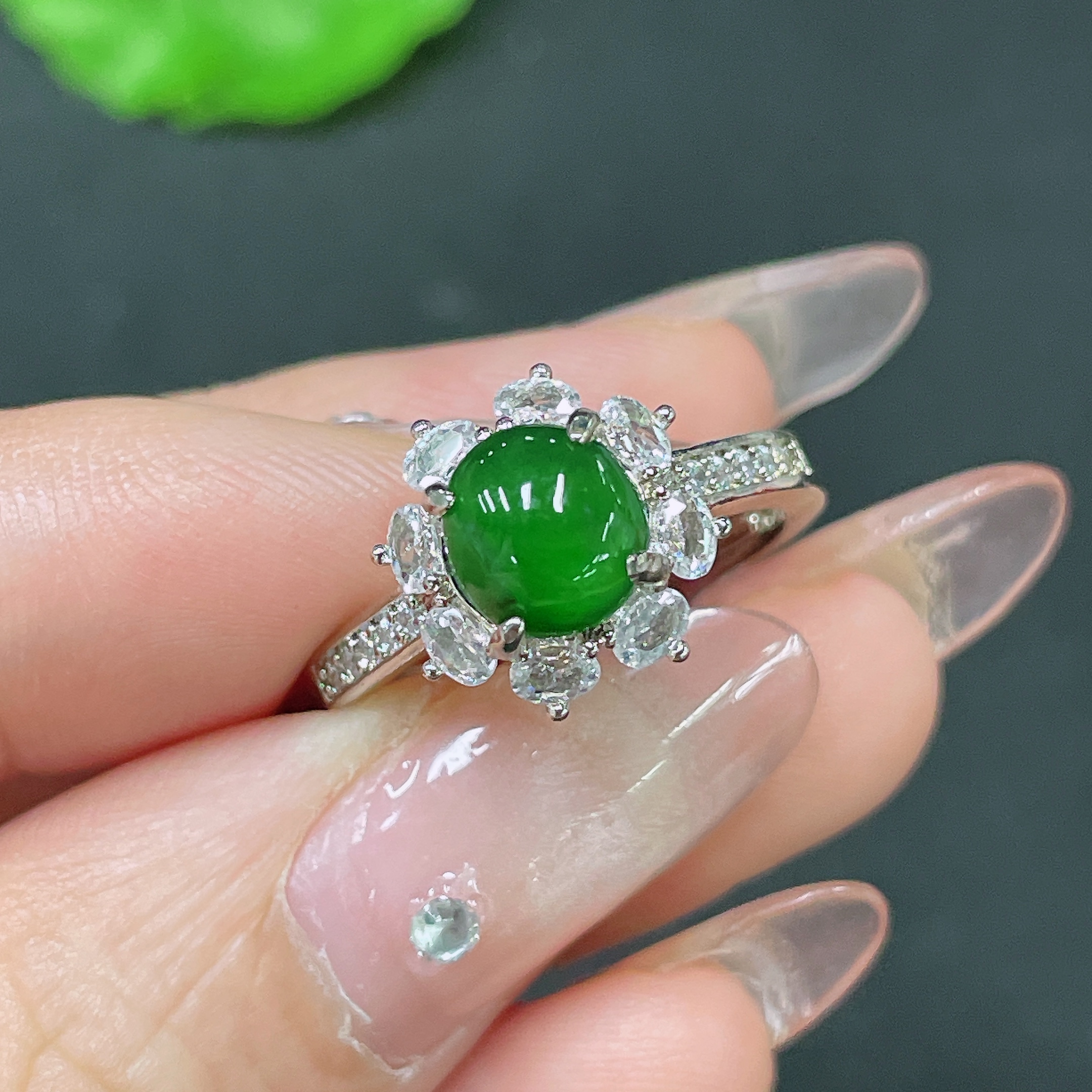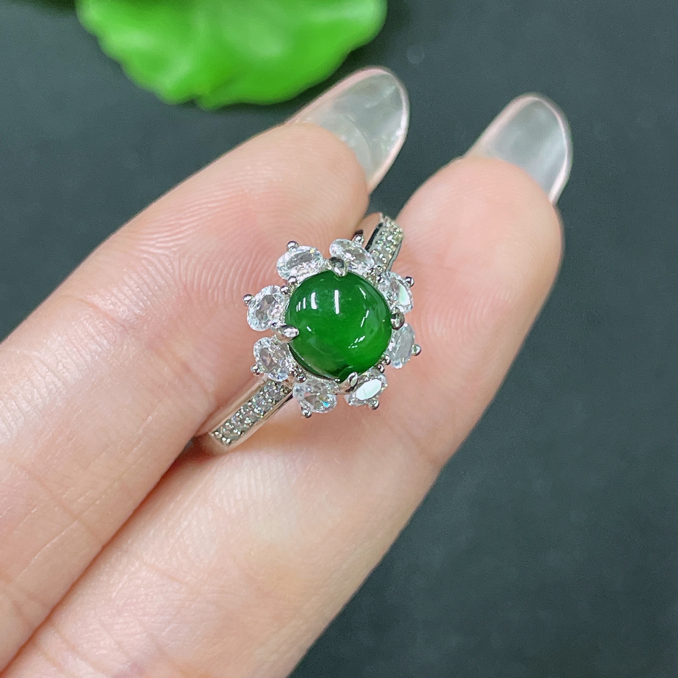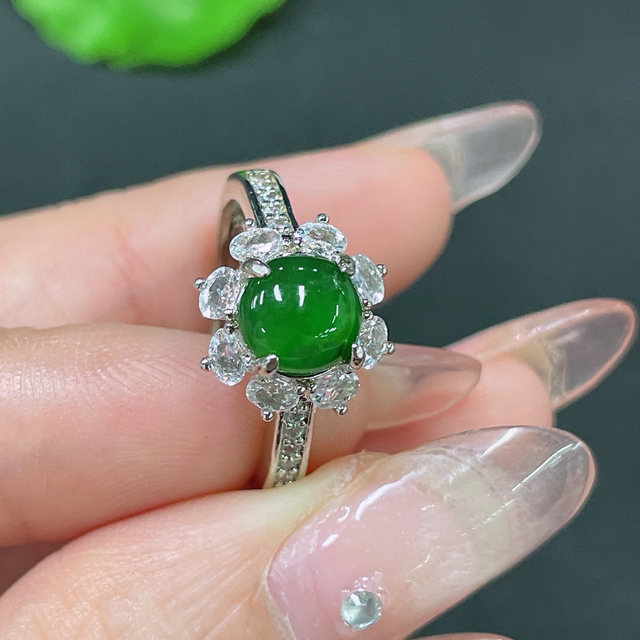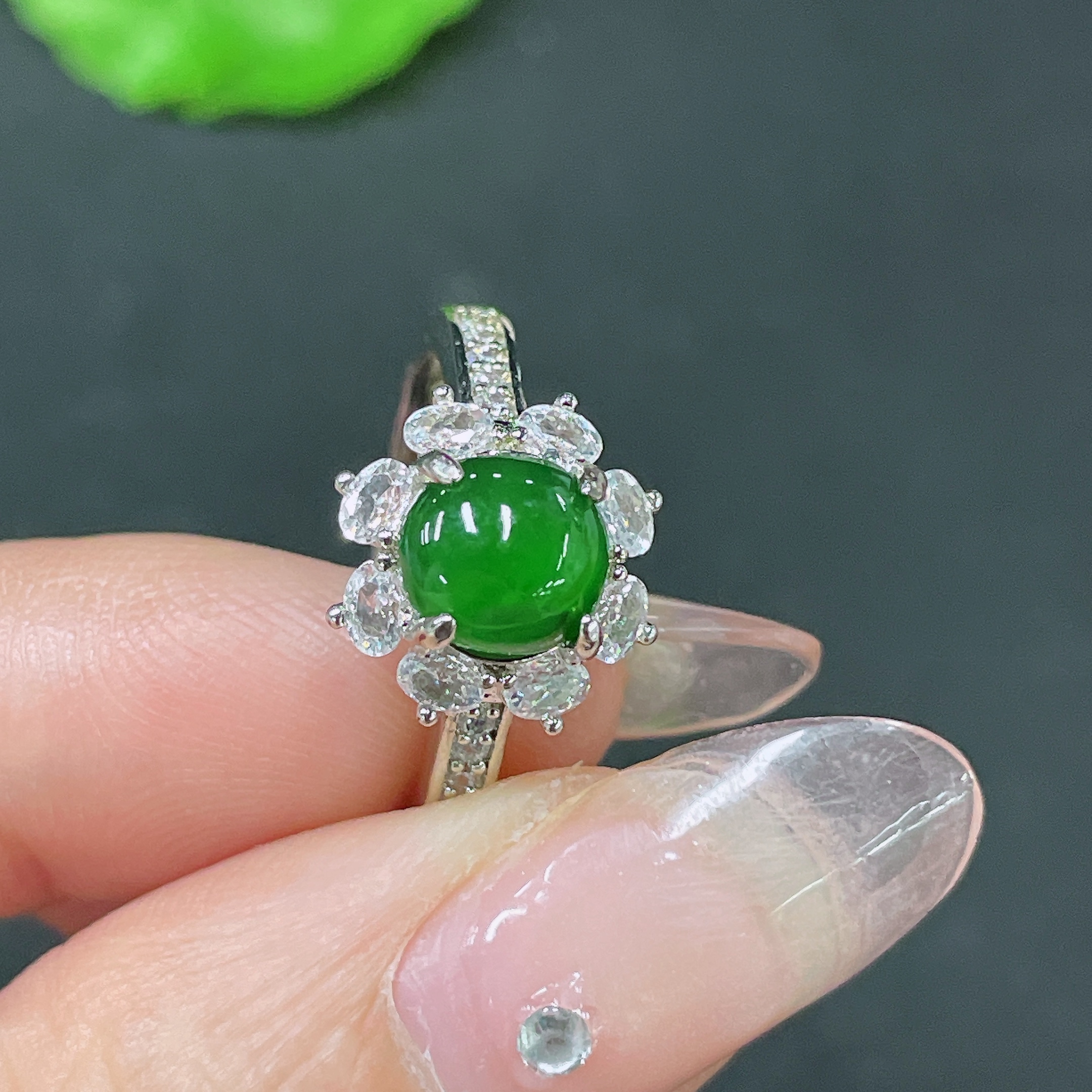 Jadeite Inlaid Piece Non-Gold Adjustable Total Weight Approx. 2.83g