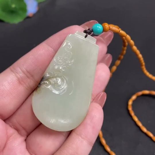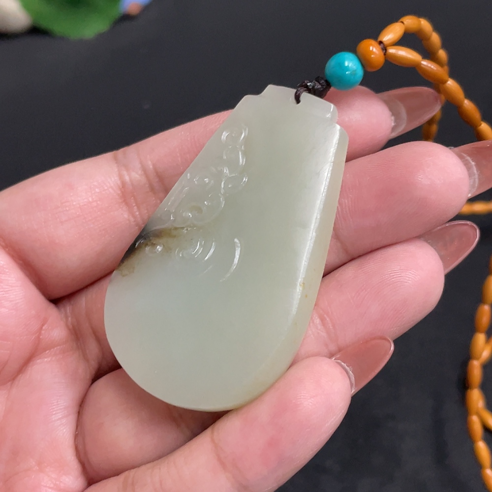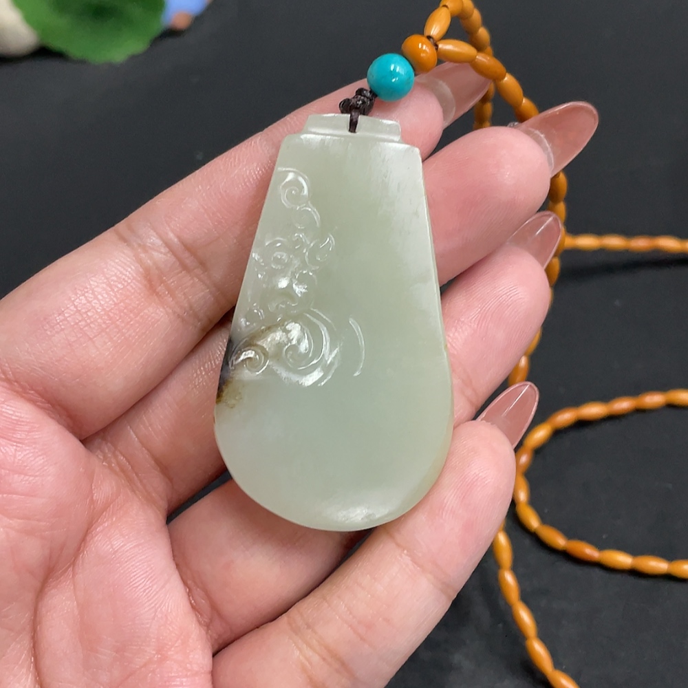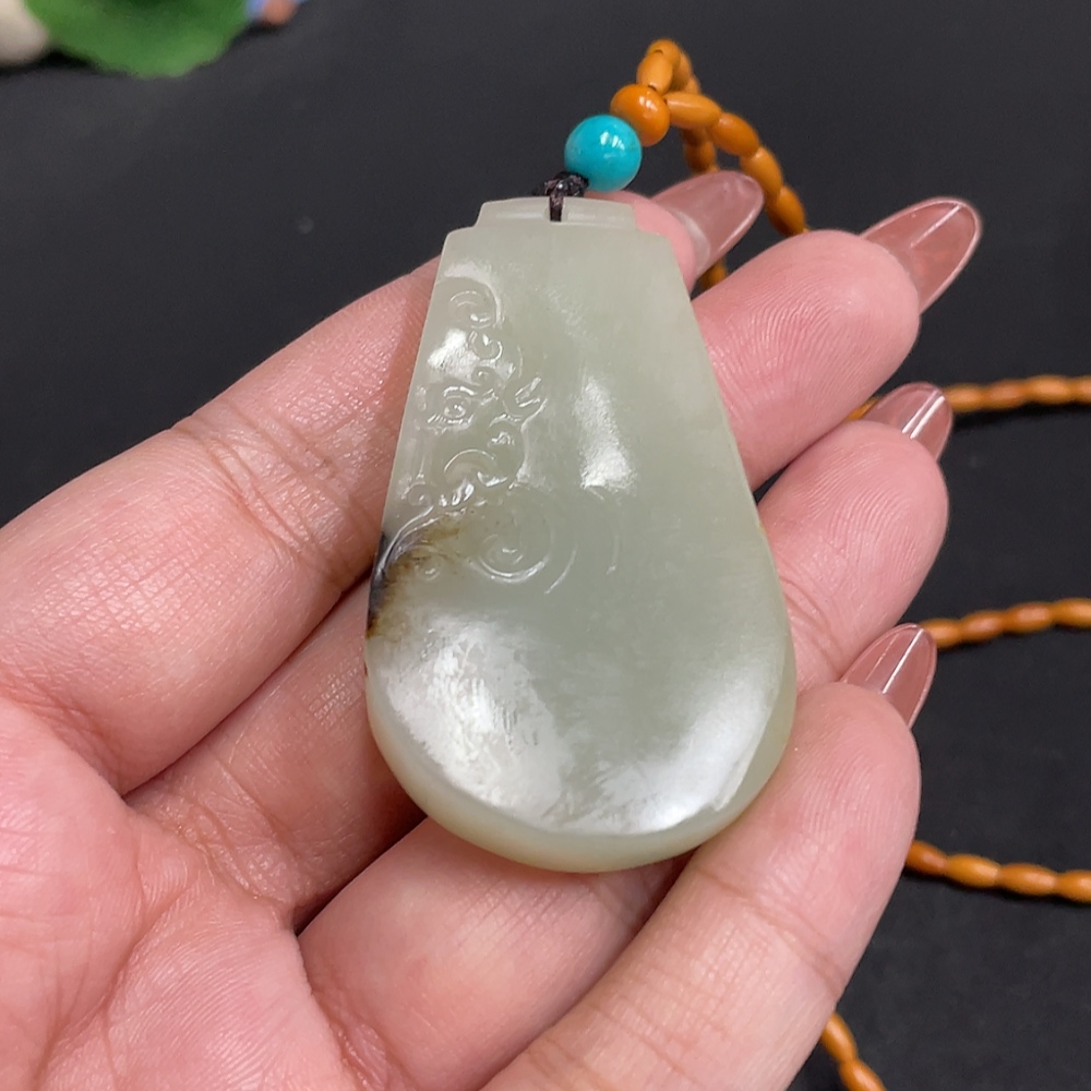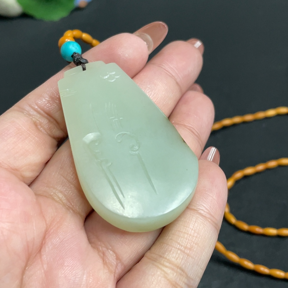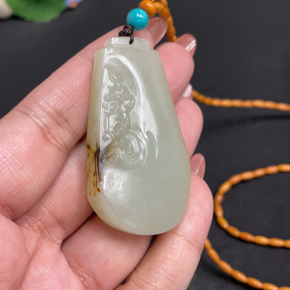 Hetian Jade Pendant, Antique Style, Total Weight Approx. [Including Chain] 34.1g, Undetermined Skin Color Origin